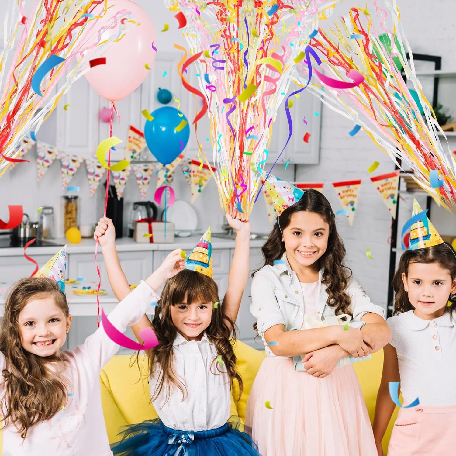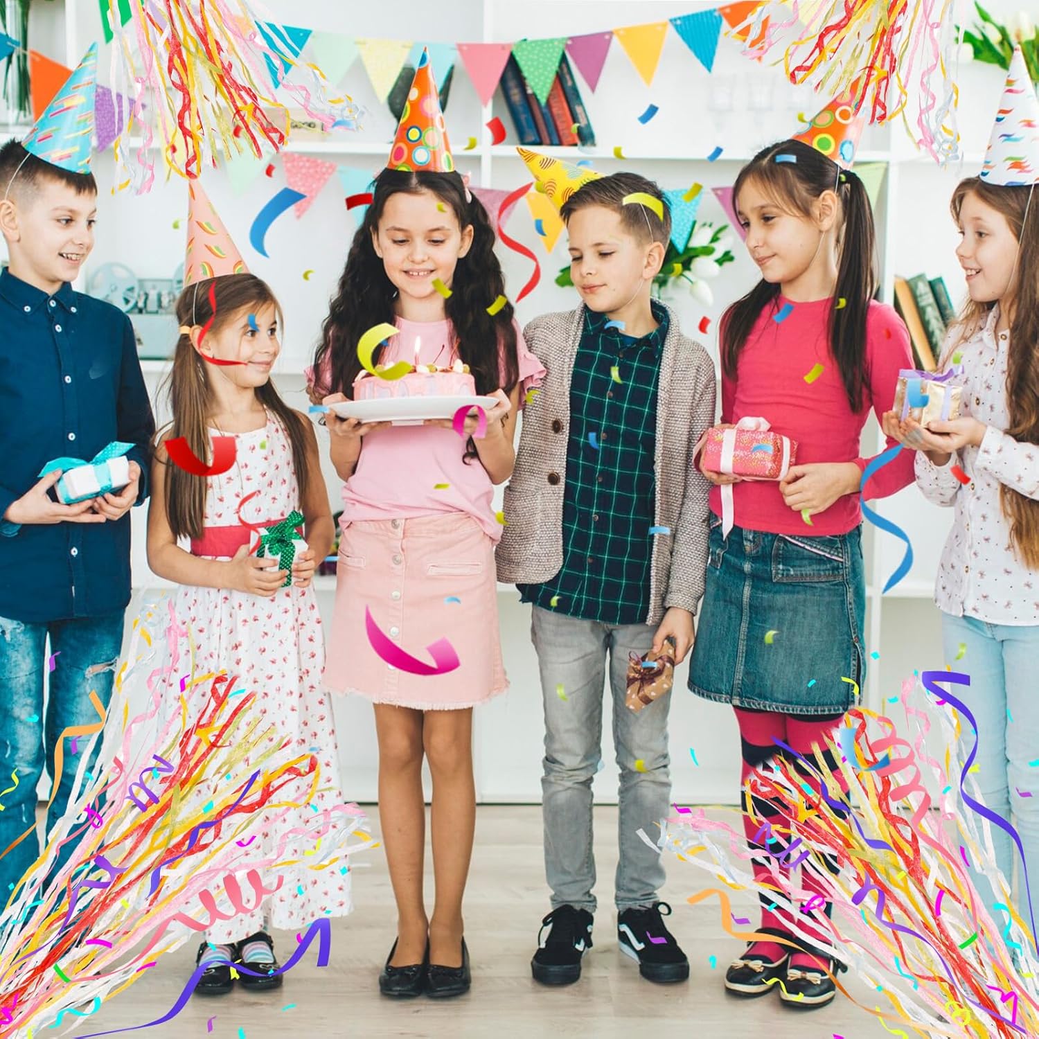 Set colorato per momenti indimenticabili: questo set è composto da 10 stelle filanti colorate, ciascuna delle quali misura 6 x 5,7 x 2,5 cm. Ogni streamer colorato contiene 30 strisce, ciascuna lunga 5 metri. I colori vivaci creano un'atmosfera allegra e festosa, ideale per qualsiasi festa o celebrazione. Materiale di alta qualità: le stelle filanti per matrimoni sono realizzate in carta colorata di alta qualità. Colorato e festoso, puoi tranquillamente utilizzare decorazioni colorate per le feste per creare un'atmosfera più allegra per la tua festa o celebrazione. Facile da usare per un grande divertimento: maneggiarlo è molto semplice: basta afferrare la maniglia dello streamer, strappare il fondo e lanciarlo in aria con un angolo di 45 gradi. L'effetto è spettacolare: stelle filanti verdi colorate volano nell'aria e creano un momento festivo che delizierà i tuoi ospiti. Facile pulizia dopo la celebrazione: a differenza dei coriandoli tradizionali, spesso difficili da pulire, i cannoni sparacoriandoli sono collegati tra loro. Ciò significa che dopo la festa, dovrai solo prendere un'estremità per raccogliere tutte le strisce in un solo passaggio. Ciò consente di risparmiare tempo e garantisce che la tua festa rimanga pulita senza troppi sforzi. Versatile per numerose occasioni: che si tratti di matrimonio, compleanno, laurea, carnevale o Natale, i cannoni coriandoli sono perfetti per ogni occasione. Danno al tuo evento un accento colorato e dinamico che ravviva l'atmosfera e garantisce momenti indimenticabili
