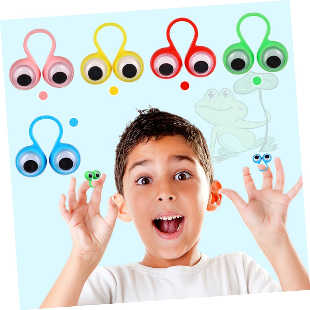 Marionette da dito: l'uso di questi anelli per attività con le dita può incoraggiare le persone a impegnarsi in giochi di ruolo e narrazioni, che possono aumentare la loro immaginazione e creatività. Burattino da dito bulbo oculare Giocattolo burattino da dito: realizzato in plastica, sicuro e leggero, superficie liscia che evita graffi, giocattolo da dito Giocattolo da dito: aiuta i bambini a usare la loro immaginazione per creare il proprio mondo interiore. È una buona scelta per amici e familiari. Anelli per bulbi oculari, marionette da dito: possono essere utilizzate senza rischio di lesioni, poiché tutti i bordi sono lisci e non c'è superficie ruvida, giocattoli regalo per feste