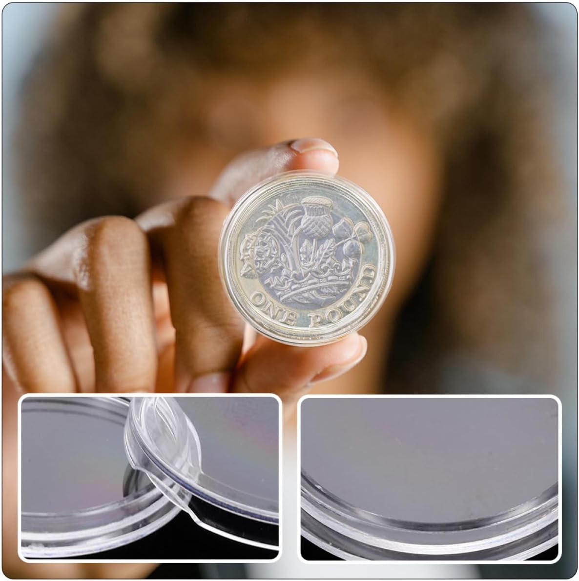 Scatole portamonete trasparenti: possono essere utilizzate come portacapsule per monete, per aziende, mostre, come regalo pratico per collezionisti di monete e come portacapsule per monete senza bordo Portamonete trasparente: la copertura è liscia e non danneggia le dita. Portamonete in plastica Custodie protettive trasparenti per monete - Il design trasparente rende questa scatola portamonete più attraente e ti offre l'angolo di visione perfetto della tua collezione, porta capsule per monete Capsule per monete sicure - realizzate in plastica di alta qualità, sicure, ben sigillate e resistenti all'ossidazione, capsule portamonete portatili Pratici portamonete - realizzati in plastica per un uso sicuro, puoi conservare e proteggere le tue monete commemorative e le custodie per la raccolta di monete