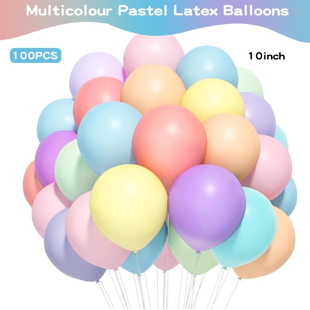 【Materiale di alta qualità】 Questi palloncini arcobaleno sono realizzati in lattice di alta qualità, atossico e innocuo, estremamente elastico, durevole, non facile da deformare, rompere o perdere, riutilizzabile, colorato e luminoso, leggero e portatile. 【Buon tempo fai-da-te】 Puoi legare questi palloncini colorati di compleanno ovunque tu voglia decorare, oppure puoi legarli insieme e goderti il tuo tempo. Perfetto per i compleanni dei bambini e altri eventi destinati a portare gioia e felicità. 【Facile da usare】 Questi palloncini macaron pastello sono facili da gonfiare, facili da montare e riutilizzabili. Riempibili con aria o elio, possono decorare stanze, pareti, rami, ambienti interni ed esterni. 【Ampia applicazione】 Questi palloncini arcobaleno sono un ottimo regalo per compleanni, proposte di matrimonio, fidanzamenti, matrimoni, San Valentino, baby shower, feste di matrimonio, feste di anniversario, feste di Capodanno, San Valentino, feste di Natale e vacanze all'aperto o al chiuso. 【Set di palloncini colorati】 Questo palloncino in lattice naturale dai colori pastello contiene 100 palloncini macaron da 10 pollici in 10 colori. Il ricco set di palloncini può soddisfare le tue esigenze di decorazione della festa e creare una festa fantastica e bellissima per te.