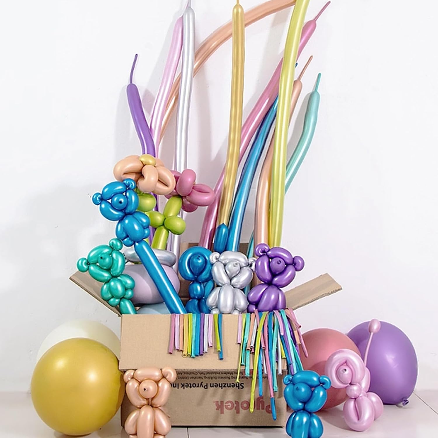 【Materiale di alta qualità】 Palloncini lunghi classici realizzati in lattice di alta qualità e con buona duttilità. Sicuro, inodore, forte e durevole, molto flessibile. C'è del borotalco per evitare che i palloncini si attacchino tra loro. Non sporco, Facile da usare: i palloncini modellabili colorati possono essere gonfiati rapidamente e facilmente con la pompa. Questo ti fa risparmiare tempo ed energia. Suggerimento caldo: per evitare che scoppino, non riempire eccessivamente i palloncini (meno dell'80%). pompa. Puoi mescolare e scegliere il tuo colore preferito come preferisci. I palloncini colorati creano una varietà di forme e ti offrono un'esperienza visiva diversa. 【Occasioni di applicazione】 Palloncini colorati lunghi Adatti per la maggior parte delle occasioni come feste e celebrazioni. Sorprendi con i palloncini modellabili a feste, celebrazioni, eventi oppure usali per compleanni, fidanzamenti, matrimoni, feste