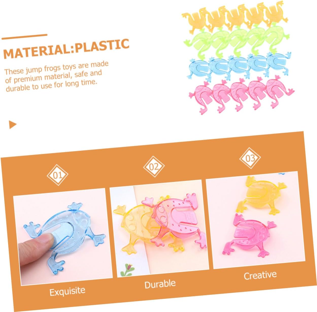 Piccole rane di plastica: sorprendile mettendole in regali e usandole come premi per mini giochi ecc., rane giocattolo per bambini per: semplici forme di gioco e bellissime forme di rane possono attirare l'attenzione dei bambini, i tuoi sicuramente le adoreranno moltissimo, rane giocattolo in grandi quantità Rane rimbalzanti: adatte per attività ricreative indoor e outdoor e possono renderti felice quando interagisci con i tuoi nuovi giocattoli animali, divertenti giocattoli a forma di rana, giocattoli da bagno a forma di rana: mettili nello scrigno del tesoro della classe, organizza una gara di salto delle rane e festeggia con i tuoi studenti, condividi molta più felicità, rane giocattolo di plastica interattive per: queste rane pressate sono molto adatte per soggiorno, camera da letto, scuola materna, lezioni di prima educazione e altro ancora, giocattoli per saltare le rane