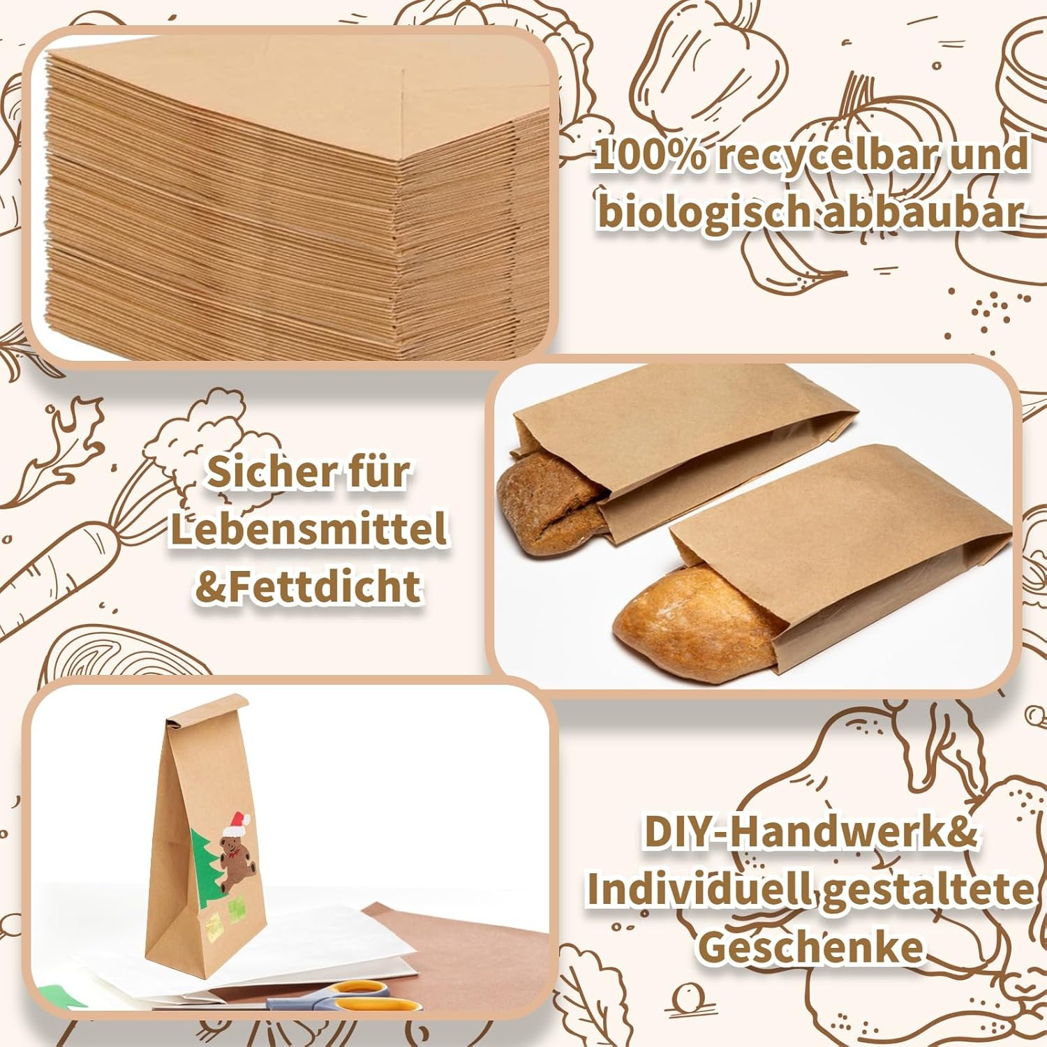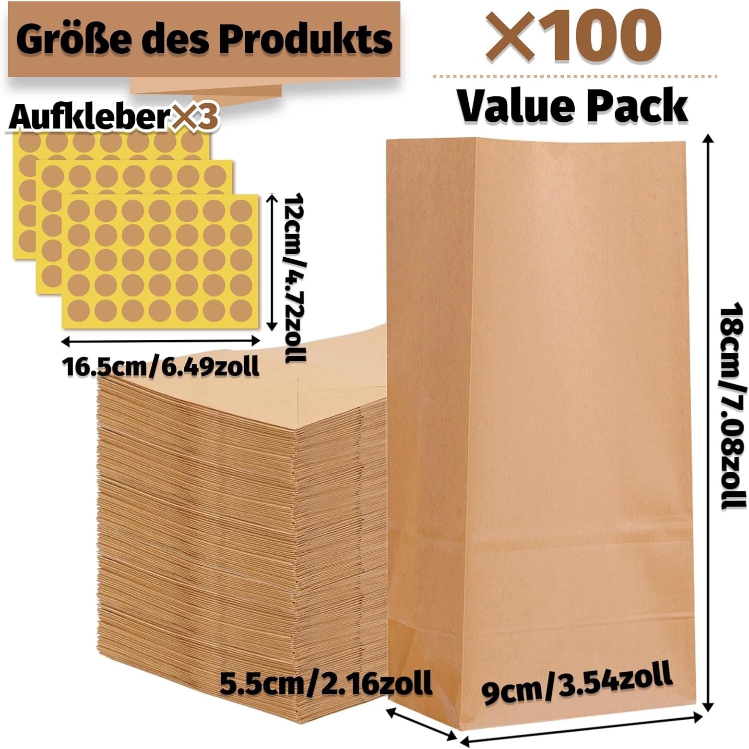 SACCHETTI REGALO VERSATILI - Questi piccoli sacchetti regalo in carta kraft (9 x 18 cm) sono ideali per calendari dell'Avvento, compleanni di bambini, regali di Pasqua, compleanni, matrimoni e altre occasioni. Perfetti come sacchetti per feste, sacchetti per caramelle, sacchetti per feste o come sacchetti da riempire CARTA KRAFT DI ALTA QUALITÀ - I nostri sacchetti di carta marrone sono realizzati in carta kraft robusta ed ecologica, durevole, resistente agli strappi e sicura per il contatto diretto con gli alimenti, ideali come sacchetti per il pane, sacchetti per panini o come piccoli sacchetti regalo per i compleanni dei bambini FACILI DA PERSONALIZZARE - I piccoli sacchetti di carta hanno una superficie liscia che è ideale per essere dipinta, incollata o stampata. Crea design personalizzati per il tuo calendario dell'Avvento, sacchetti regalo per i compleanni dei bambini o sacchetti per feste di compleanno per bambini. IMBALLAGGIO SOSTENIBILE: scegli una soluzione rispettosa dell'ambiente. I nostri sacchetti di carta kraft sono riutilizzabili e rappresentano un'alternativa ecologica ai sacchetti di plastica, ideali come sacchetti per il calendario dell'Avvento o come sacchetti per l'imballaggio. FACILI DA USARE - Grazie al fondo piatto, i sacchetti con fondo quadro sono stabili e possono essere facilmente piegati e riposti. Perfetto per il trasporto e lo stoccaggio sicuro di sacchetti per il pane, sacchetti di carta, sacchetti per feste o sacchetti per calendari