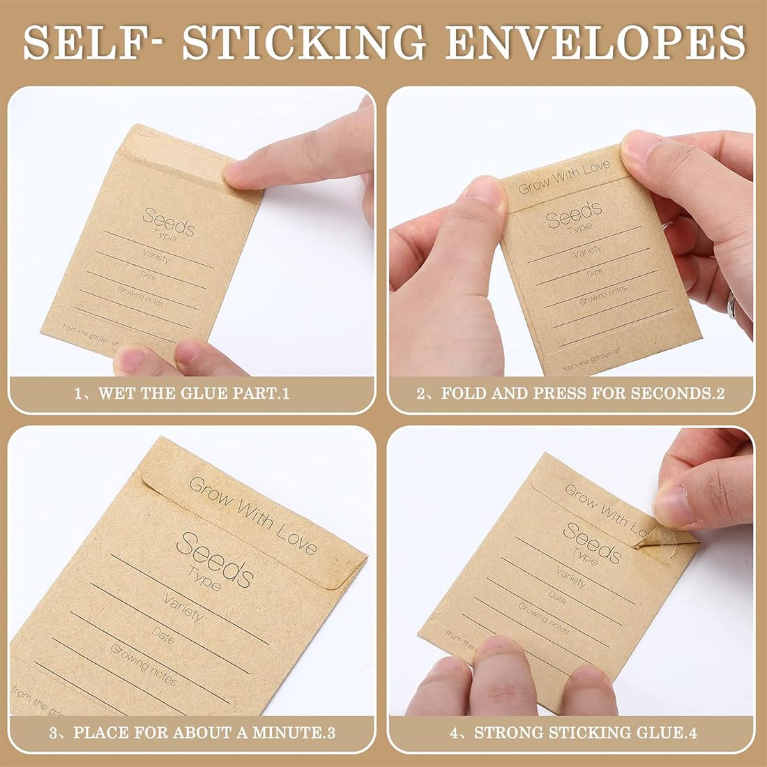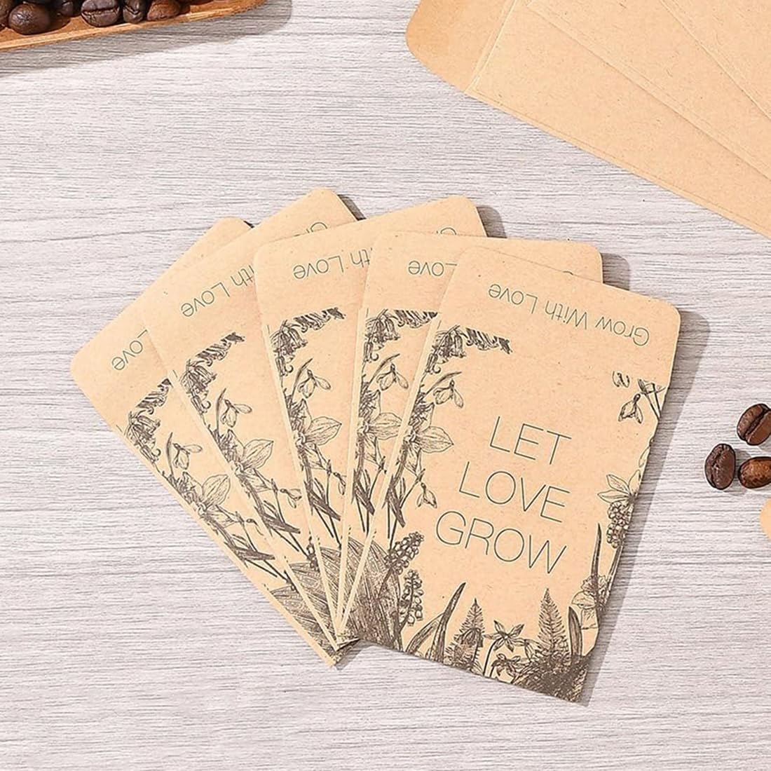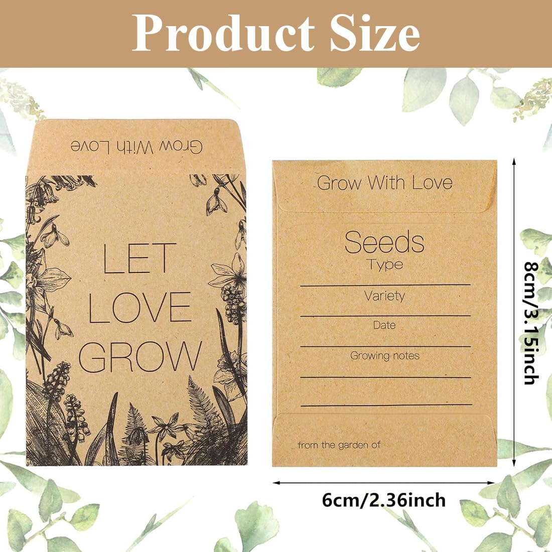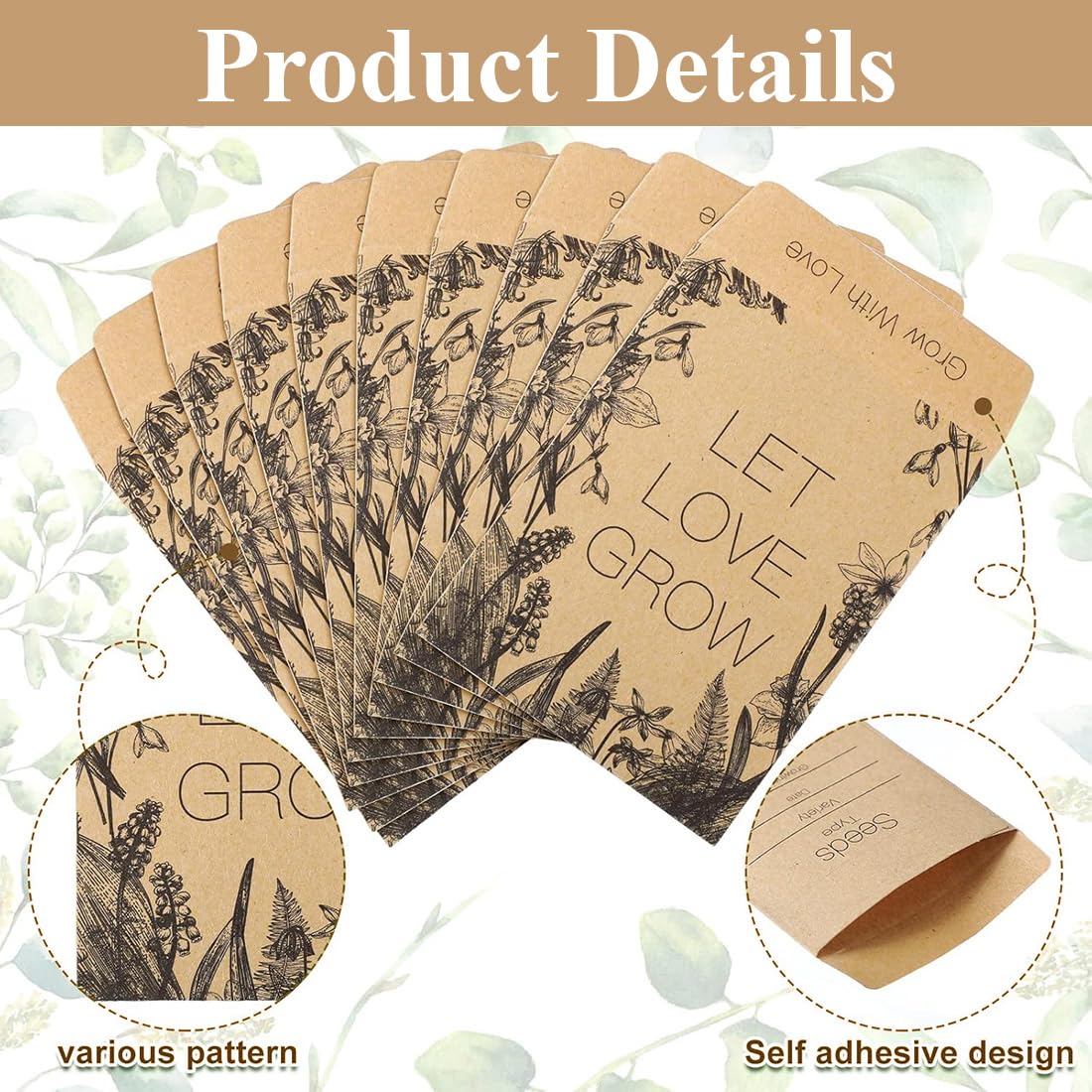 Materiale in carta kraft vintage, ecologico e durevole: realizzato in carta kraft di alta qualità, biodegradabile ed ecologico, resistente e pieghevole, può conservare i semi a lungo, adatto alle esigenze di conservazione del giardinaggio. Area di autoinformazione, classificazione chiara: la parte posteriore è con "tipo di seme", "varietà", "data", "istruzioni per la semina" e altri campi da compilare, informazioni sui semi facili da contrassegnare, gestione del giardino più efficiente. Design autoadesivo, facile da incapsulare: non sono necessari colla o strumenti aggiuntivi, basta bagnare la superficie adesiva, piegare e premere, è possibile sigillare rapidamente, conservare facilmente i semi, risparmiare tempo operativo. Delicata illustrazione botanica, valore e praticità: "Let Love Grow" e illustrazione botanica stampate sul davanti, letterarie e retrò, adatte per la conservazione dei semi o confezioni regalo per il giardinaggio. Dimensioni compatte e facili da trasportare: dimensioni di circa 6 cm x 8 cm, compatte e leggere, non occupano spazio, possono facilmente entrare nella cassetta degli attrezzi da giardinaggio, nel cassetto, raccogliere semi o riporre quotidianamente.