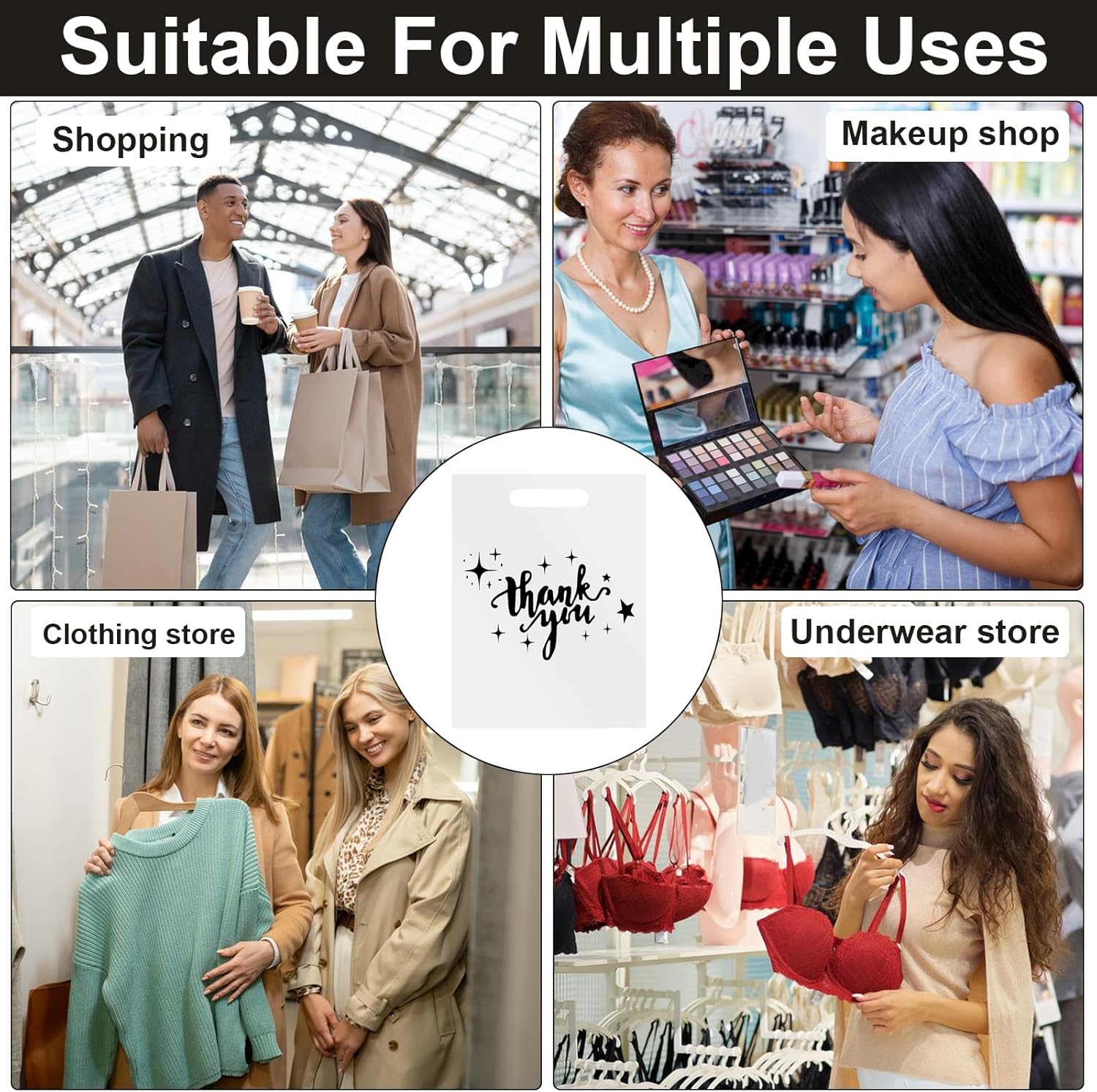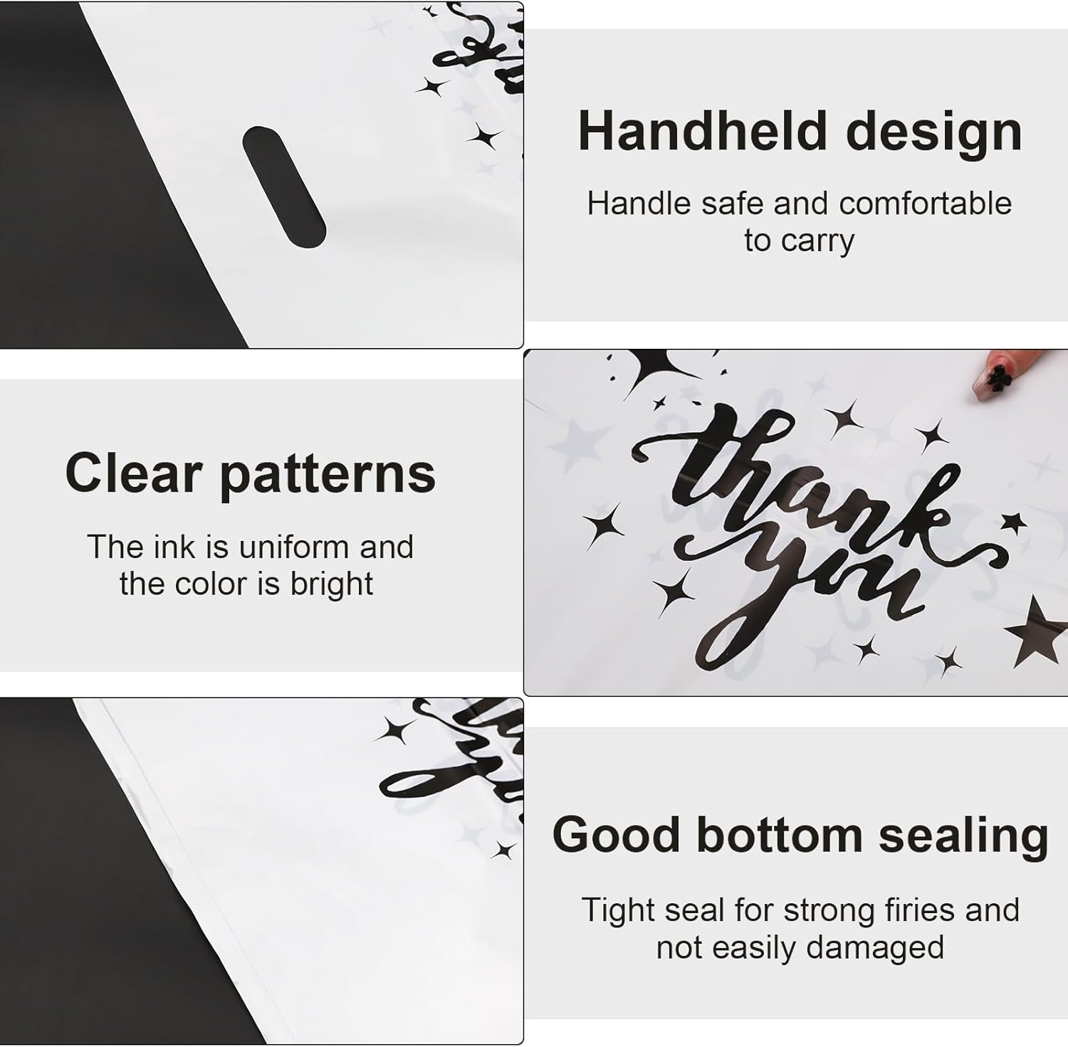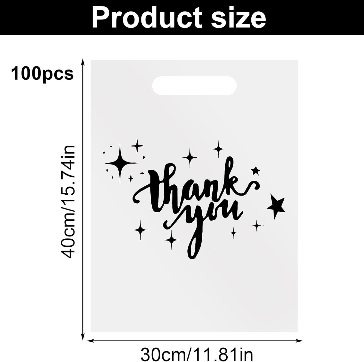 Confezione da 100 sacchetti regalo di ringraziamento - Sacchetti di plastica extra spessi da 2,36 mil 30x40 cm per piccole imprese, negozi e boutique - Sacchetti di plastica riutilizzabili con manico (Bianco)