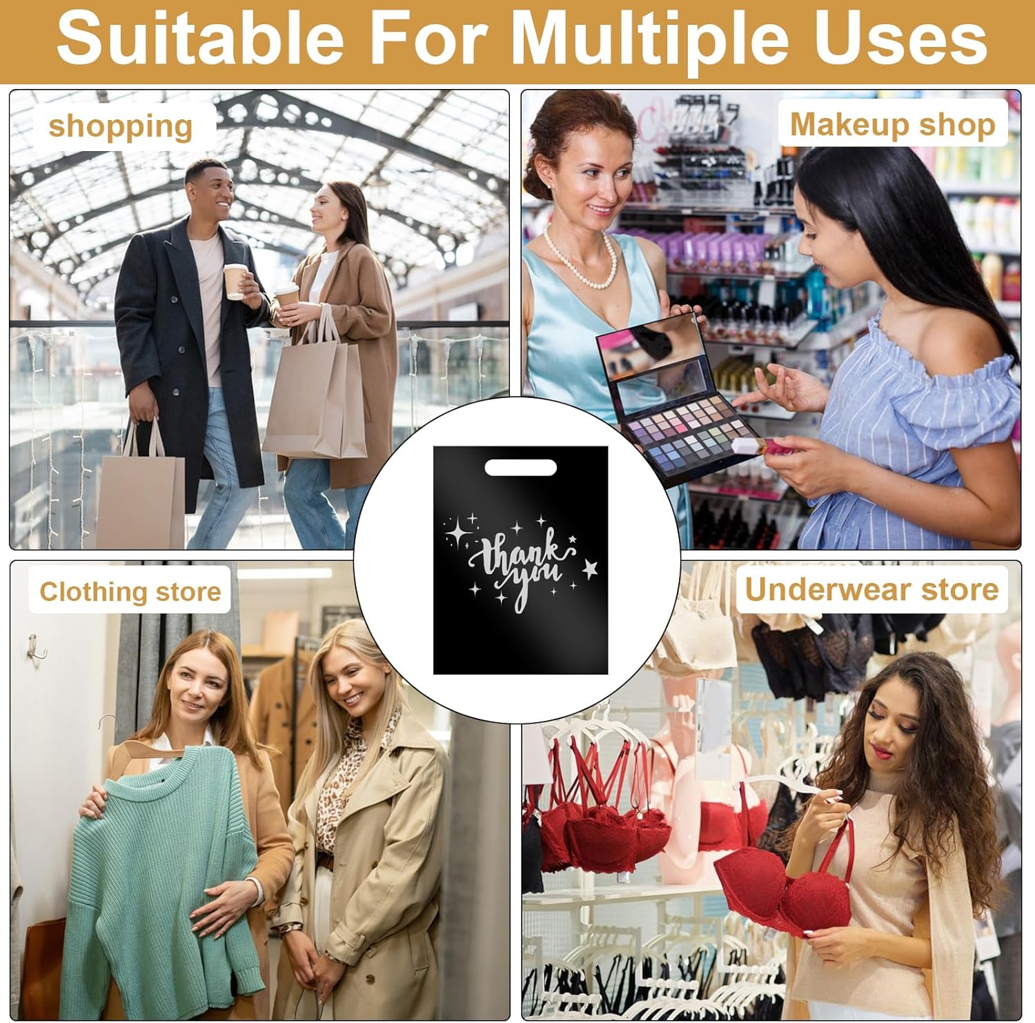 【Borse di ringraziamento di alta qualità】 Acquista 100 prodotti premium per i rivenditori, ideali come sacchetti di ringraziamento per regali, acquisti e imballaggi per le piccole imprese. Queste borse eleganti mostrano il tuo apprezzamento per clienti e amici. Robuste e durevoli: con una dimensione di 30 x 40 cm e uno spessore del materiale di plastica HDPE da 2,36 mil, queste borse sono extra spesse e stabili. Possono anche sopportare carichi maggiori senza il rischio di strapparsi o rompersi. 【Comodo da trasportare】 Le robuste maniglie fustellate garantiscono un trasporto facile e confortevole. Queste borse sono ideali per l'uso in piccole boutique e consentono una facile movimentazione. 【Uso versatile】Questi sacchetti di plastica sono perfetti per regali, cosmetici, regali promozionali, oggetti artigianali, borse per feste e molto altro. Sono una scelta pratica per confezionare i prodotti nella tua piccola impresa. 【Garanzia di soddisfazione】 Con la nostra promessa di soddisfazione al 100%, i tuoi sacchetti di ringraziamento non solo saranno una grande aggiunta alla tua attività, ma forniranno anche un supporto rassicurante in caso di domande o dubbi.