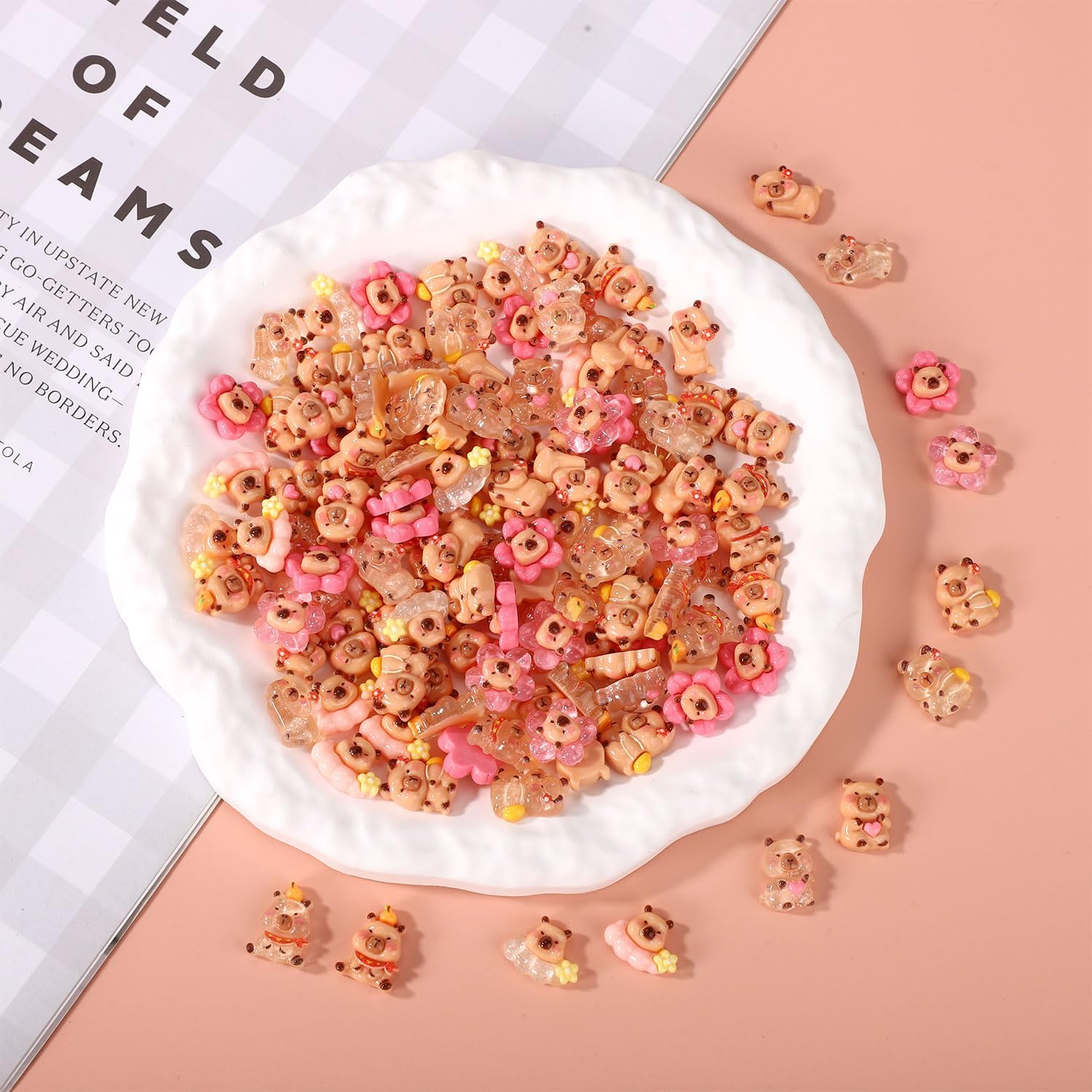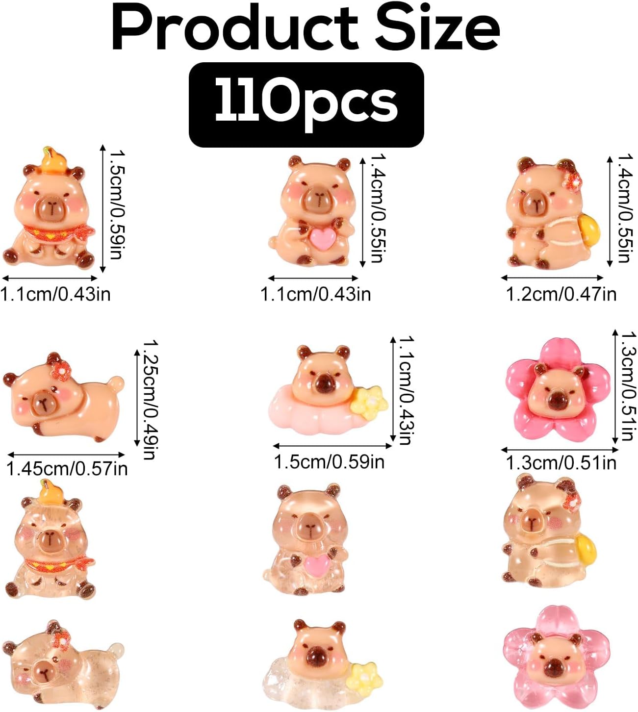 Contenuto della confezione: Riceverai 110 mini capibara in resina in 6 stili carini con affascinanti temi floreali in diverse pose e tonalità di colore vivaci. Quantità sufficiente per soddisfare le diverse esigenze di decorazione. Materiale premium: queste mini figure di capibara realizzate in resina durevole e di buona qualità sono impermeabili, resistenti allo sbiadimento e di lunga durata per garantire colori vivaci e trame dettagliate per anni di decorazione. Design carino: queste mini figure di capibara in resina hanno trame chiare, colori vivaci e occhi carini, che li rendono realistici e adorabili. Decorazione versatile: ideale per micro giardini, paesaggi in miniatura, case delle bambole, bonsai, vasi da fiori, terrari e progetti artigianali fai-da-te. Scelta di regali creativi: questi graziosi mini capibara floreali sono ottimi bomboniere, imbottiture per calze, premi in classe o regali creativi per amanti dell'artigianato, bambini o collezionisti.