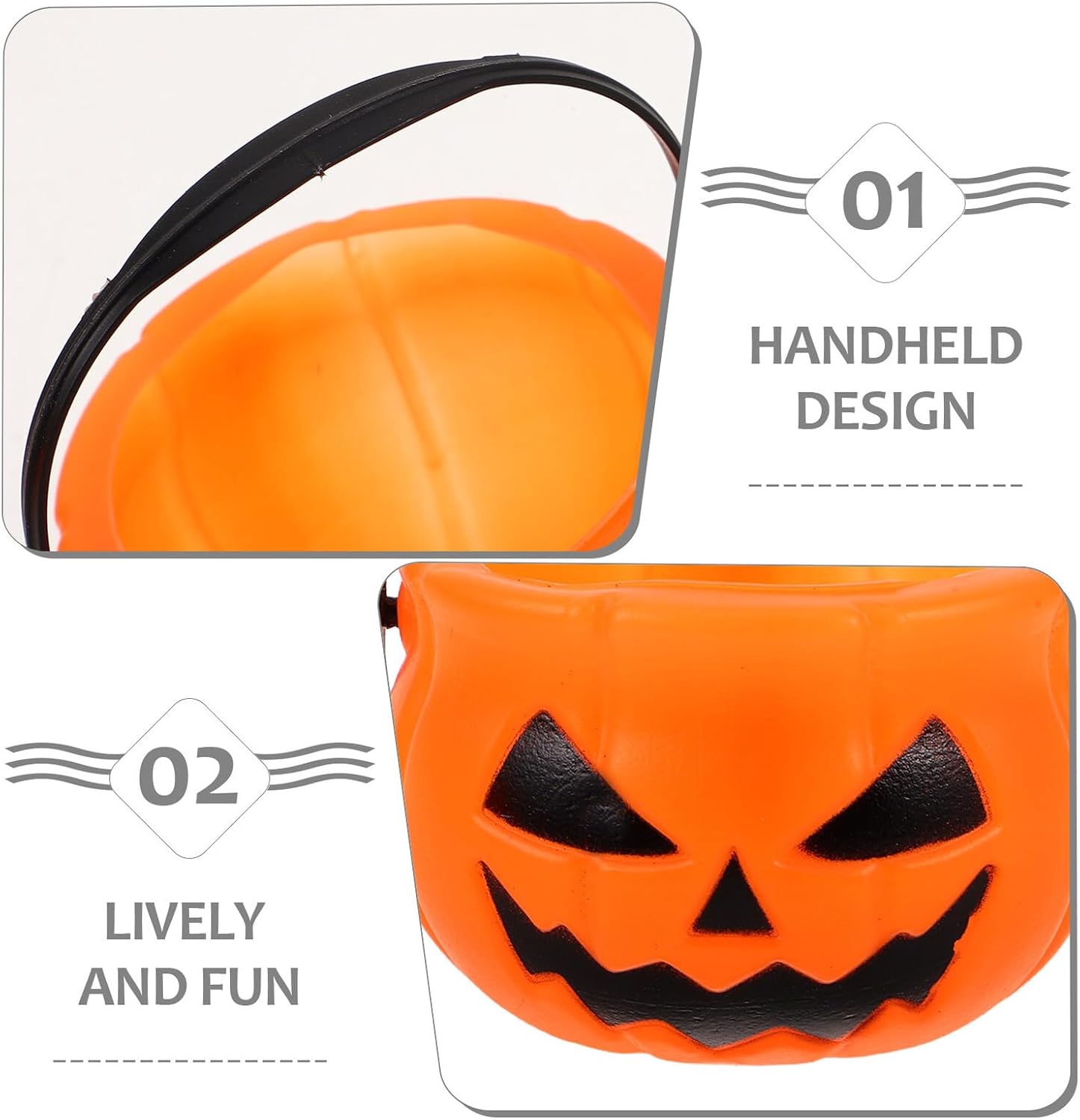 OTTIMO E SICURO: realizzato in plastica sicura per i bambini e progettato per molteplici usi; Secchiello per caramelle di Halloween, contenitore per caramelle di Halloween Secchiello di Halloween: progettato a forma di zucca, si adatta perfettamente alle decorazioni e alle celebrazioni di Halloween; Secchiello per caramelle in plastica a forma di zucca, ideale per dolcetto o scherzetto - Comodo da portare con te: il design leggero e portatile facilita il trasporto dei tuoi dolcetti - mini secchiello per zucca, secchiello per caramelle per feste Design accattivante: il design divertente e colorato incoraggia la partecipazione alle attività di Halloween, secchiello per zucca in plastica, secchiello per zucca di Halloween Secchiello per zucca di Halloween: dotato di una maniglia robusta per poterlo trasportare facilmente durante le attività all'aperto e gli eventi di Halloween; Ideale come porta caramelle per le feste di Halloween