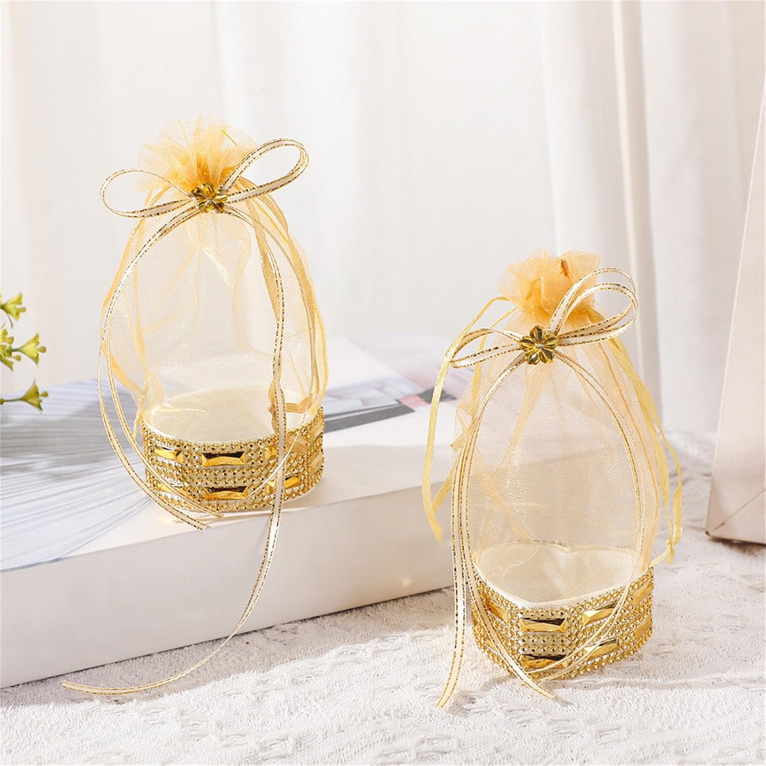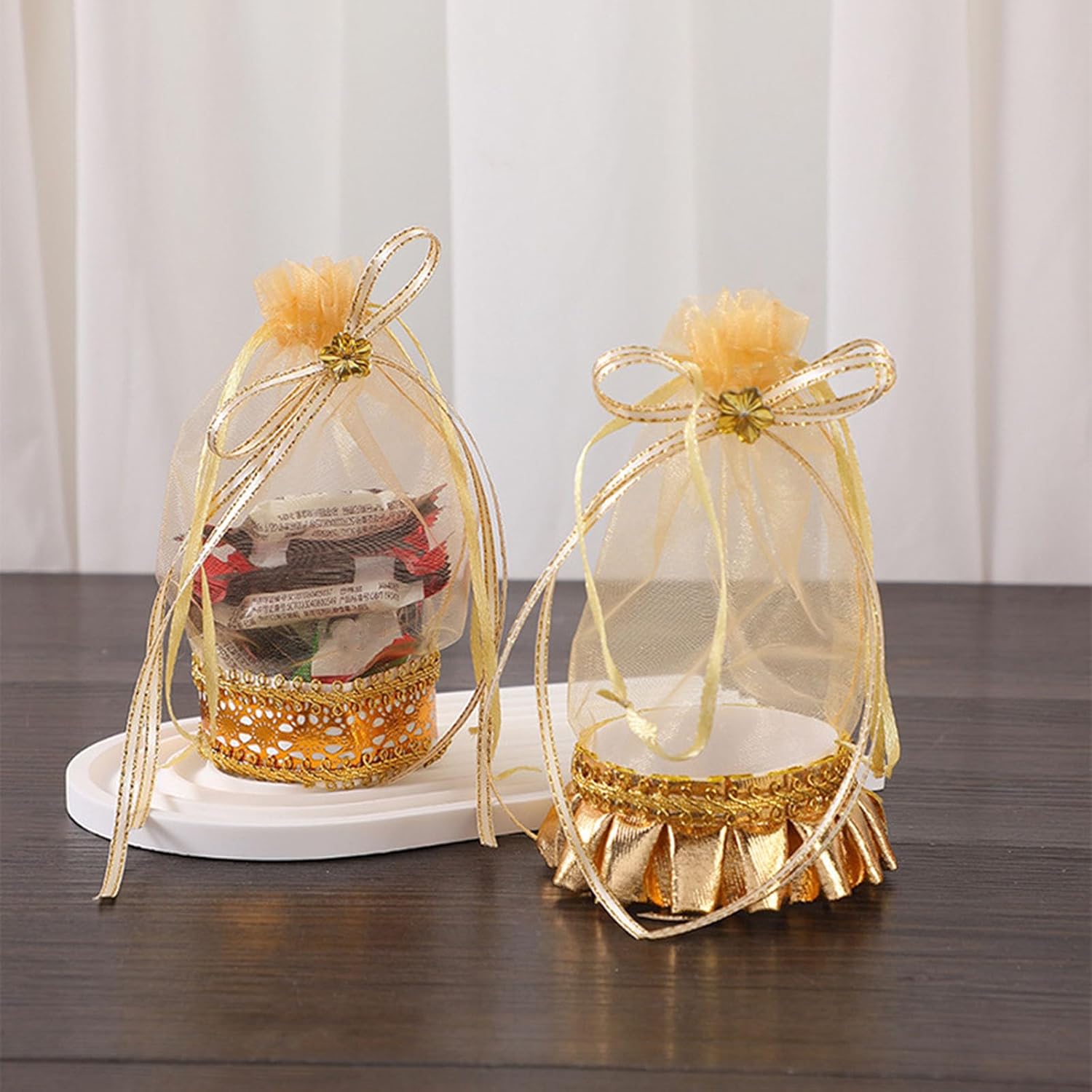 Ogni sacchetto con finitura a mano fornisce un contenitore sicuro per alimenti per cioccolatini o ricordi, resistendo e all'usura per un uso duraturo Migliora l'occasione speciale dalle feste per bambini al giorno di San Valentino con queste borse che fondono funzionalità con fascino decorativo per eventi interni o esterni Per coppie, organizzatori di eventi e appassionati di artigianato alla ricerca di una confezione elegante per matrimoni, compleanni o feste Dispone di una chiusura a coulisse e una base rotonda, questi sacchetti regalo tengono saldamente oggetti come candele, gioielli o saponi artigianali, garantendo un facile accesso e una presentazione elegante Realizzati con eleganti organze, questi sacchetti per caramelle da sposa offrono una sofisticata soluzione di archiviazione per regali per feste, snack e piccoli regali riducendo gli impatti ambientali