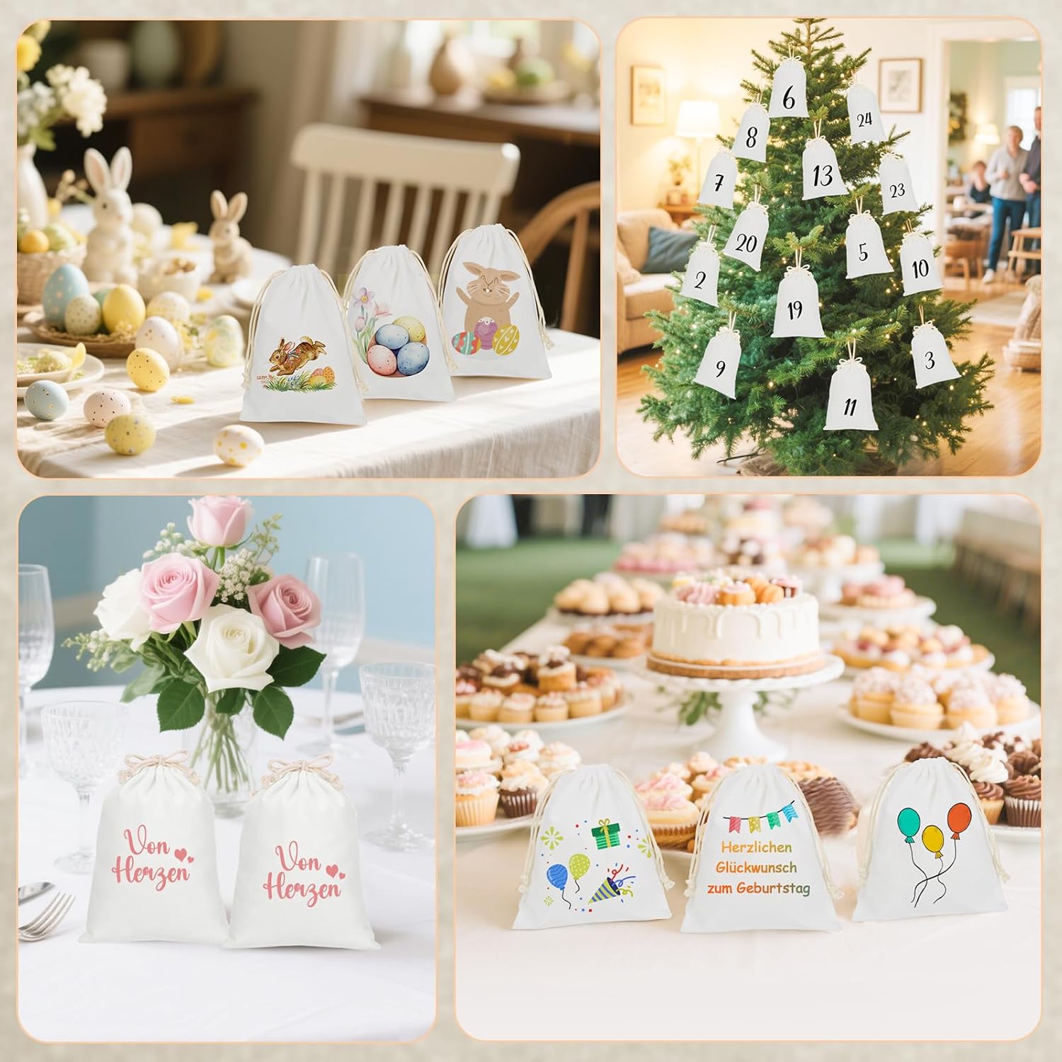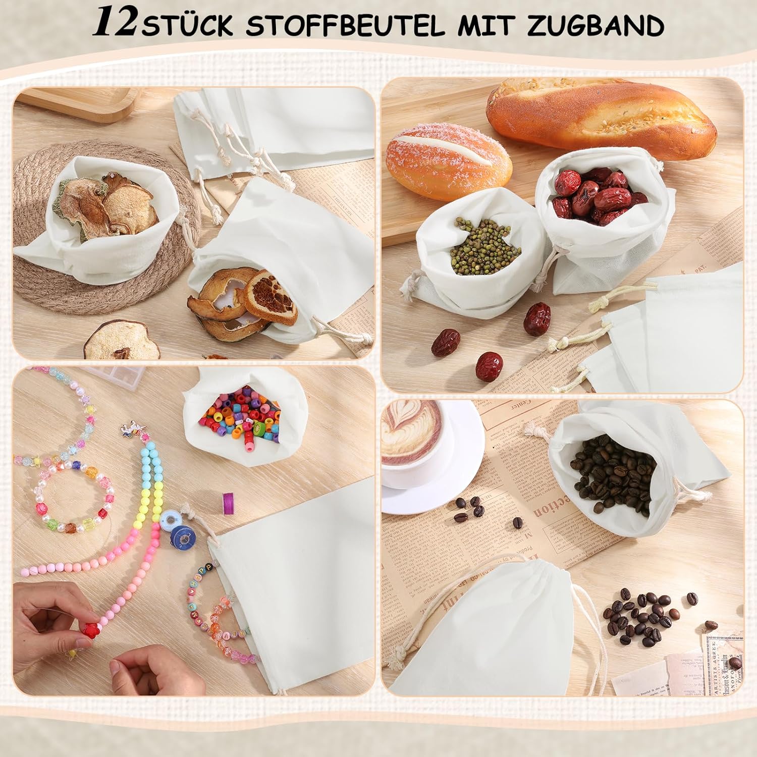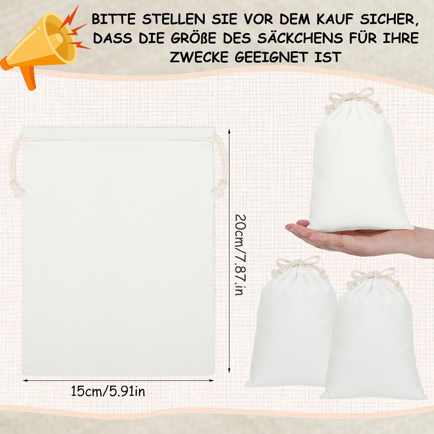 DIMENSIONE - La dimensione della borsa di stoffa è 15 x 20 cm, che offre molto spazio per dolci, piccoli regali, ecc. È adatta solo per riporre piccoli oggetti, assicurati al momento dell'acquisto se la dimensione della borsa è adatta al tuo scopo. AMBITO DI CONSEGNA - 12 piccoli sacchetti di stoffa, utilizzabili come confezione regalo, sacchetti profumati, sacchetti per gioielli, calendari dell'avvento. COTONE - La borsa in stoffa con coulisse è realizzata in cotone, morbido, confortevole al tatto, stabile e robusto, ben cucito e riutilizzabile. Realizzato in cotone, l'imballaggio sottovuoto può causare un leggero odore e può essere posizionato all'aperto per un giorno o due per la ventilazione. FACILE ACCESSO - La piccola borsa in tessuto ha un design a doppia coulisse che è facile da aprire e chiudere, facilitando l'inserimento di oggetti. ARTIGIANATO CREATIVO - I piccoli sacchetti di stoffa sono vuoti su entrambi i lati e sono ottimi anche per progetti fai-da-te e possono essere dipinti, stampati, ricamati e persino timbrati. Consigli per la cura: si sconsiglia il lavaggio in lavatrice, il lavaggio a mano a 30 gradi.