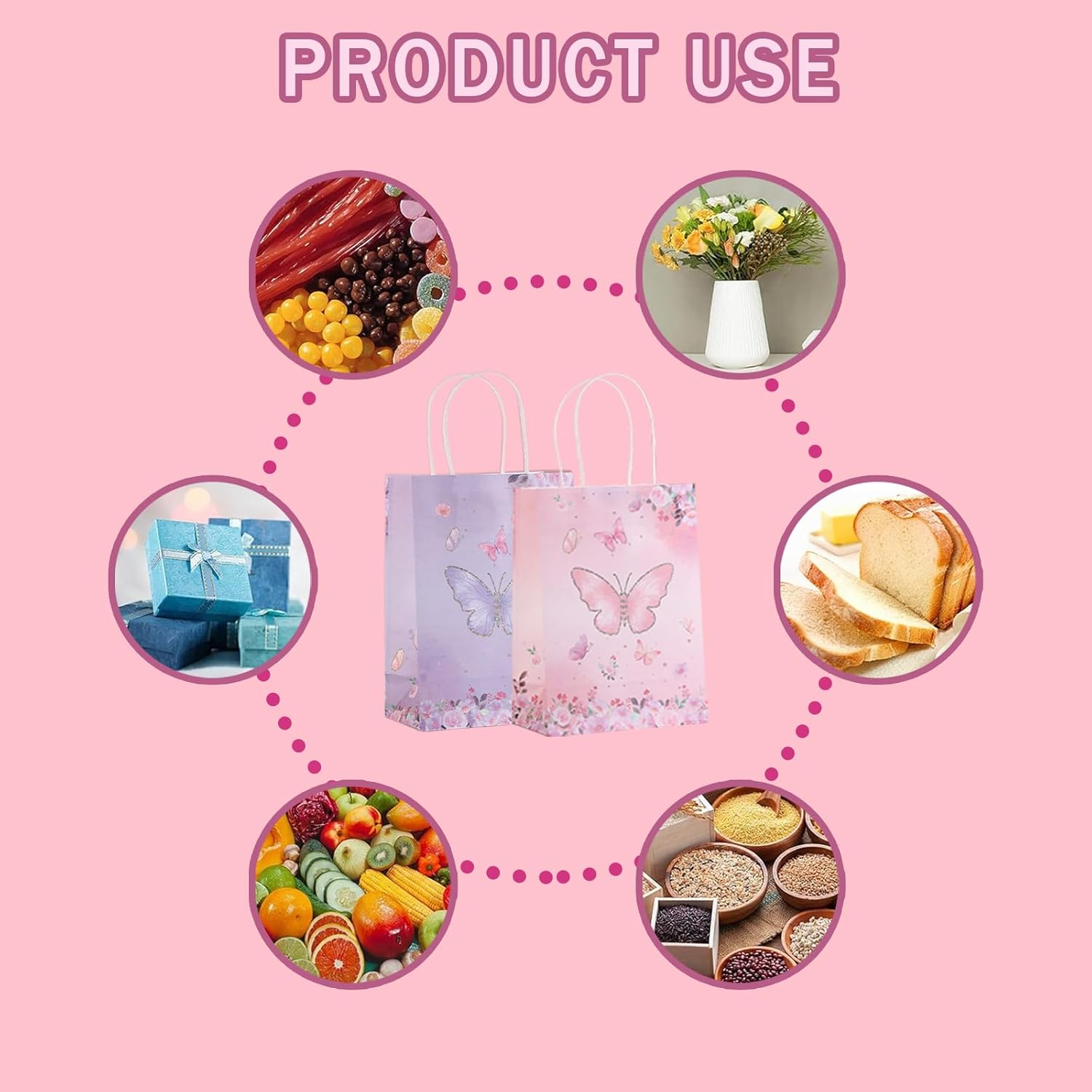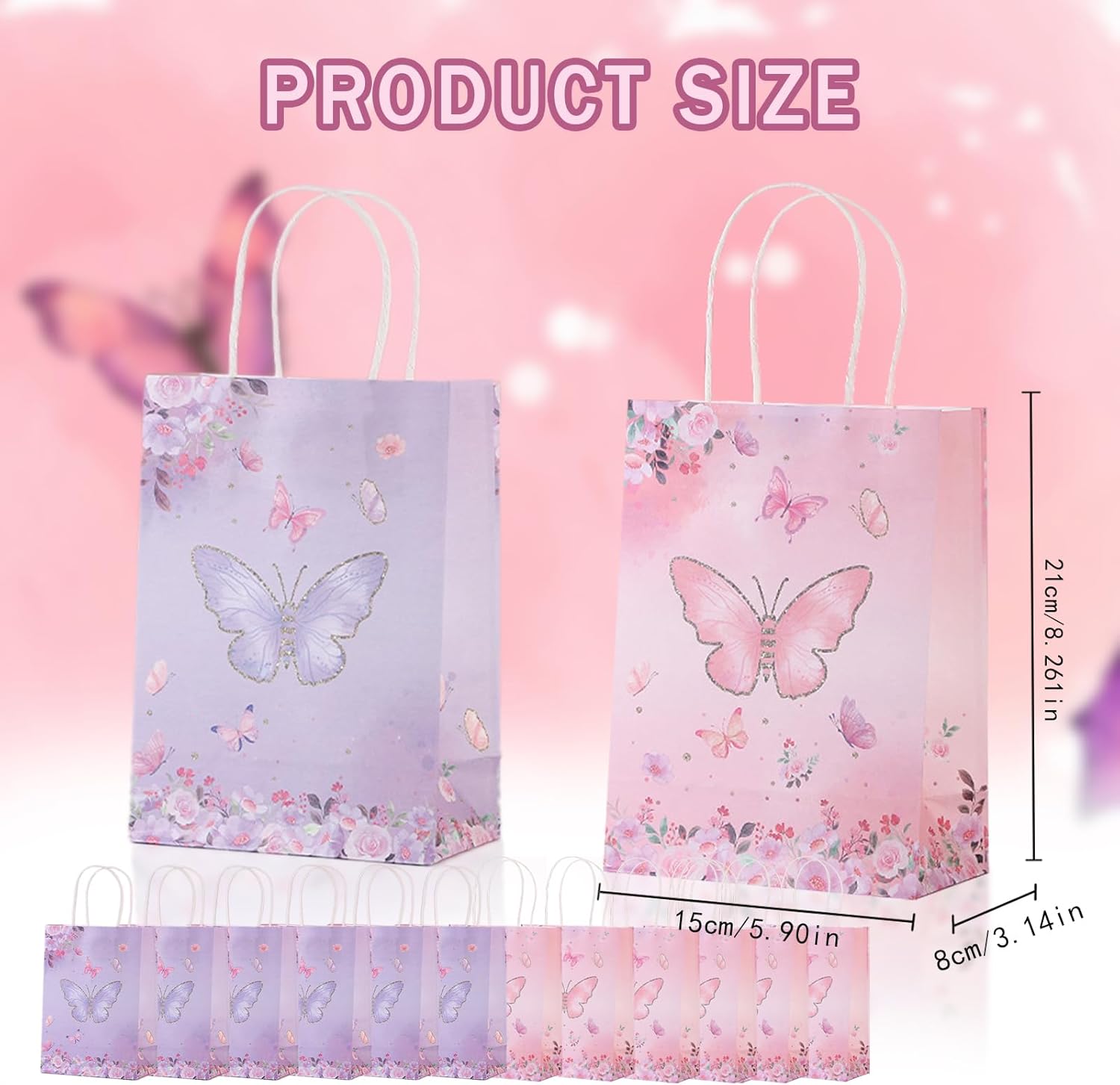 [Materiale di alta qualità] Lo squisito sacchetto di carta è realizzato in carta kraft bianca ecologica. È molto spesso, robusto e affidabile e non si rompe facilmente. Il fondo è rinforzato con colla secondaria e ha una forte capacità portante, prevenendo efficacemente rotture e perdite. [Squisito motivo a farfalla] La confezione da 12 sacchetti regalo a farfalla è stampata con farfalle viola e rosa, la stampa è chiara, i colori sono brillanti e i motivi sono bellissimi. Possono essere utilizzati a lungo e non si sbiadiscono facilmente per confezionare regali e piccoli regali. [Design pratico e pratico] La borsa regalo a farfalla è dotata di una maniglia attorcigliata, comoda da tenere, non facile da pizzicare, facile da trasportare e non facile da rompere. La borsa regalo è morbida e presenta linee di piegatura piatte. Può essere piegato quando non in uso, il che è comodo e salvaspazio. [Applicazione multifunzionale] Sacchetti regalo di alta qualità adatti alla maggior parte delle occasioni, perfetti per confezionare regali per feste, regali di compleanno, regali di Natale e conservare fiori, libri e altro ancora. I sacchetti di carta kraft a forma di farfalla sono la scelta migliore per regali per bambini, amici e familiari. [Contenuto della confezione] Riceverai 12 sacchetti regalo con farfalle, 6 per ogni colore, lunghi 21 cm, larghi 15 cm e alti 8 cm, con maniglie per un facile accesso, grande capacità e grande quantità, sufficienti per soddisfare le tue esigenze quotidiane di confezione regalo.