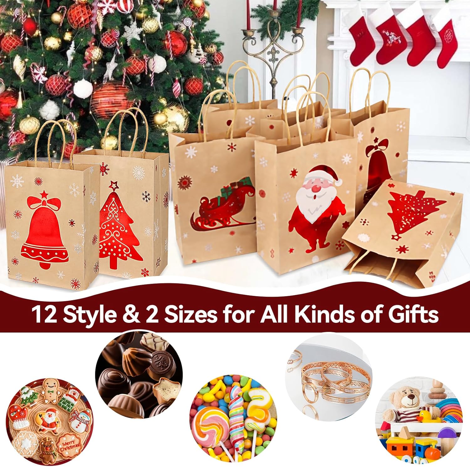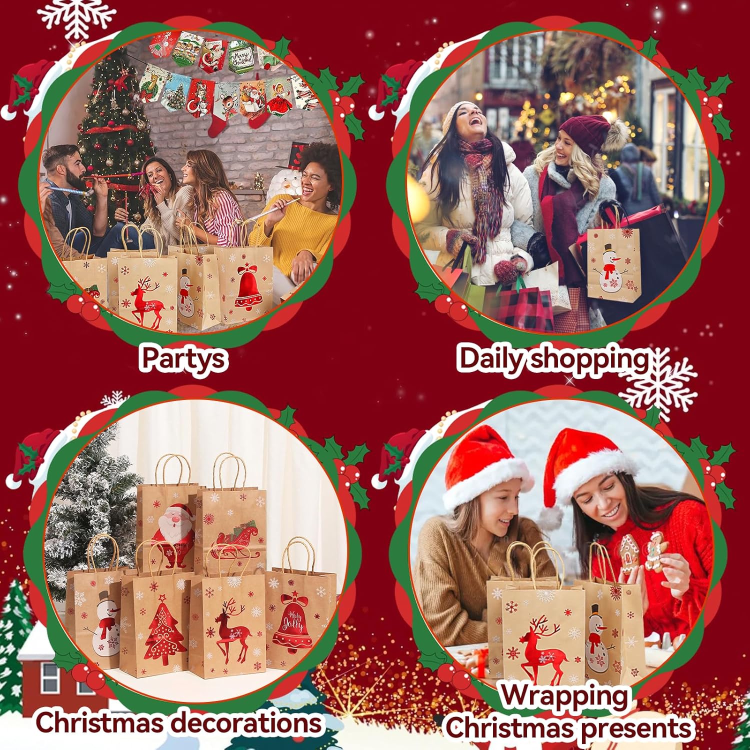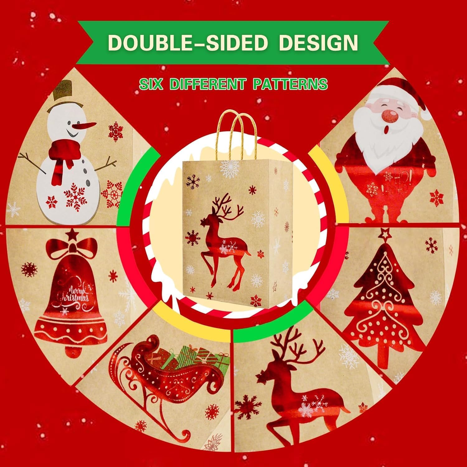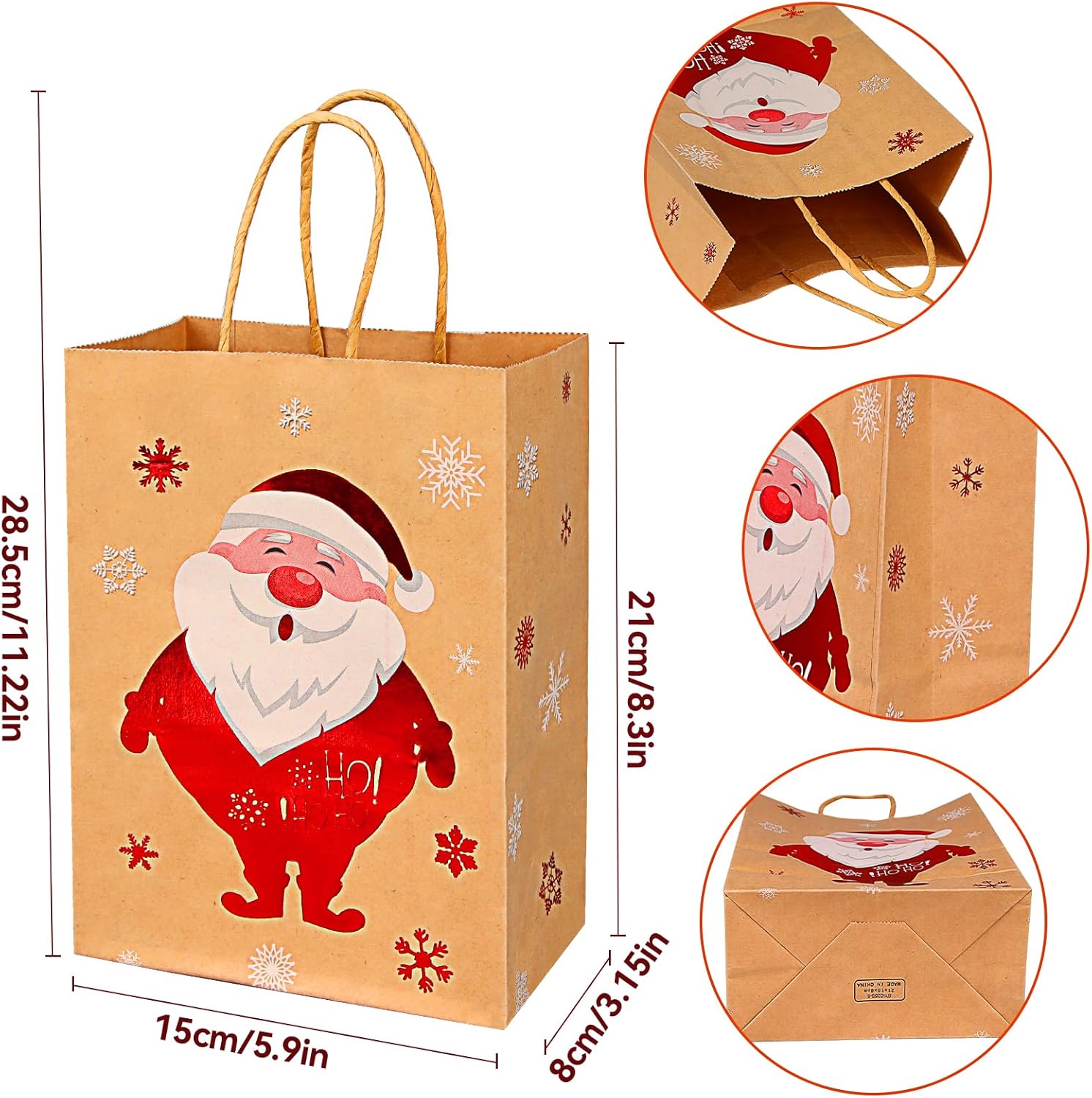 🎅【Materiale Premium】Questi sacchetti regalo sono realizzati in carta kraft di alta qualità, ecologica e riciclabile, resistente agli strappi e riutilizzabile. 🎅【Design natalizio】I sacchetti di carta natalizi sono disponibili in diversi modelli come fiocchi di neve, pupazzi di neve, renne, Babbo Natale e pinguini natalizi. 🎅【Dimensioni】Questo set contiene 12 sacchetti natalizi in carta kraft in diversi design classici natalizi. La borsa natalizia al momento della consegna misura 28,5 x 15 x 21 cm. 🎅 【Ideale per Natale】 Il sacchetto regalo di Babbo Natale può essere utilizzato per biscotti, snack, regali per feste, cioccolatini, biscotti, dolci e regali di Natale per bambini. 🎅 【Ampia applicazione】 Questi sacchetti di carta natalizi possono essere utilizzati come bellissime decorazioni per regali, festival e altro ancora. Adatto per Natale, feste, Ringraziamento o vita quotidiana.