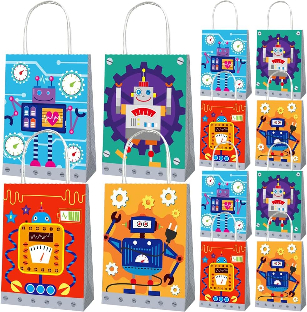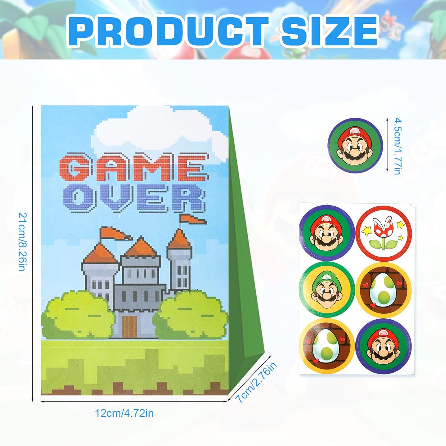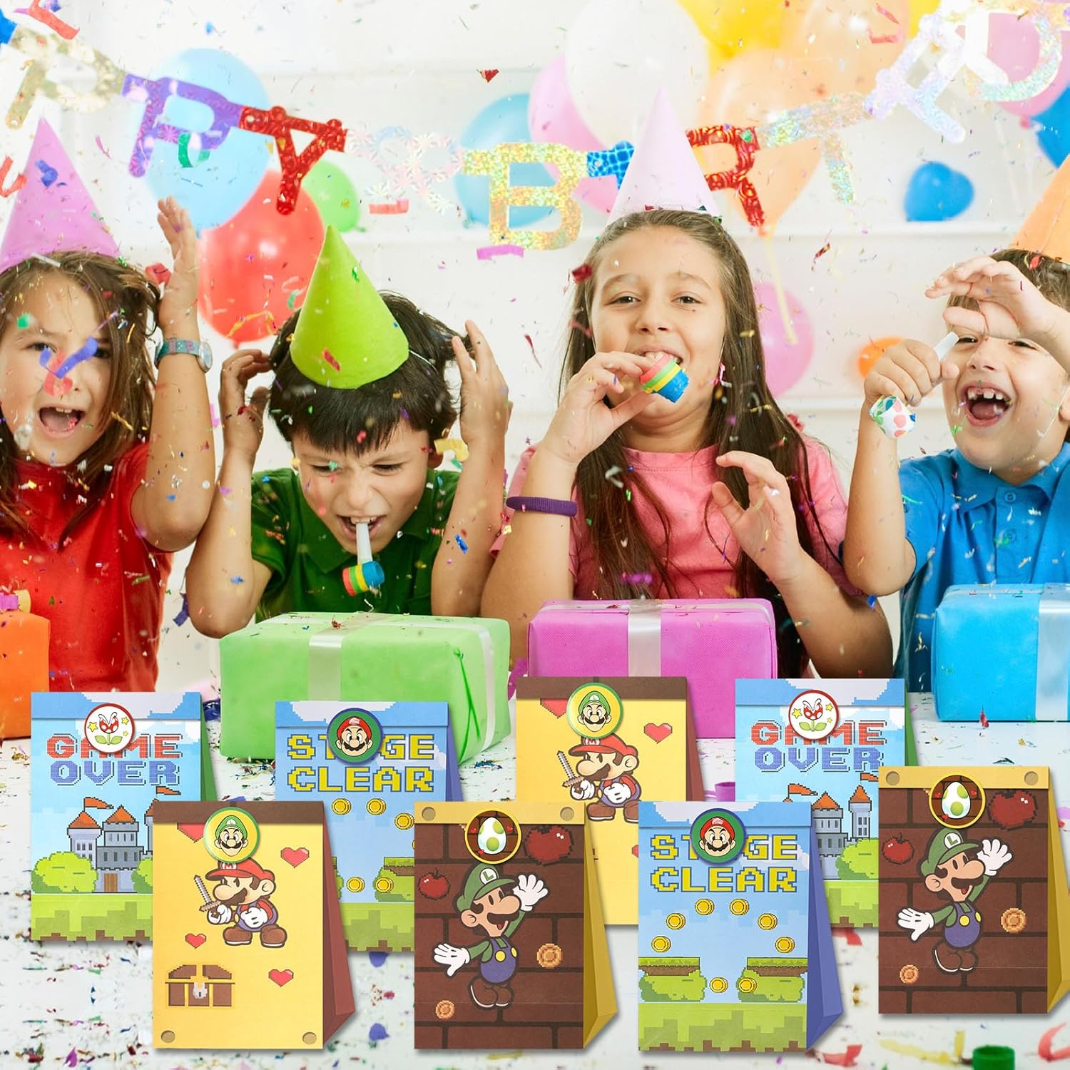 【Sacchetti regalo】Il set di sacchetti di carta kraft comprende 12 sacchetti di carta + 12 adesivi; I sacchetti di carta sono disponibili in 2 stili diversi, ciascuno con 2 modelli, ideali per confezionare dolci per feste, biscotti, articoli vari, ecc. I sacchetti di carta hanno una dimensione di 21 x 12 x 7 cm, sono leggeri, facili da trasportare e riutilizzabili più volte. 【Include 12 adesivi】 Gli adesivi aiutano a sigillare il sacchetto regalo in modo che le caramelle non cadano, facilitano il trasporto dei bambini e allo stesso tempo aggiungono più eccitazione quando si disimballano i regali, stimolando l'interesse dei bambini. 【Bellissimi motivi】 I sacchetti di carta sono stampati su entrambi i lati con diversi motivi di cartoni animati, colorati e stampati in alta risoluzione. Sono molto apprezzati dai bambini e sono ideali per decorare le feste di compleanno dei bambini. 【Ampi usi】 I sacchetti regalo di compleanno sono ottimi per conservare caramelle, biscotti, piccoli giocattoli, regali, ecc. Possono essere utilizzati anche per feste a tema, feste di compleanno, premi di classe, matrimoni, Natale e altre occasioni.