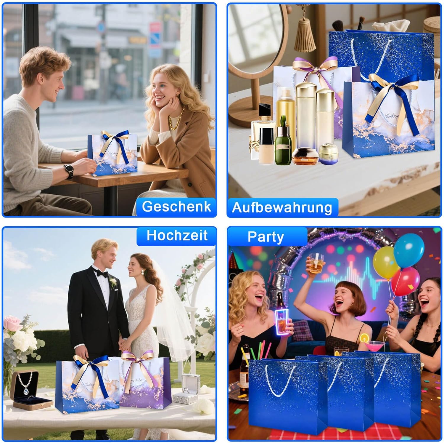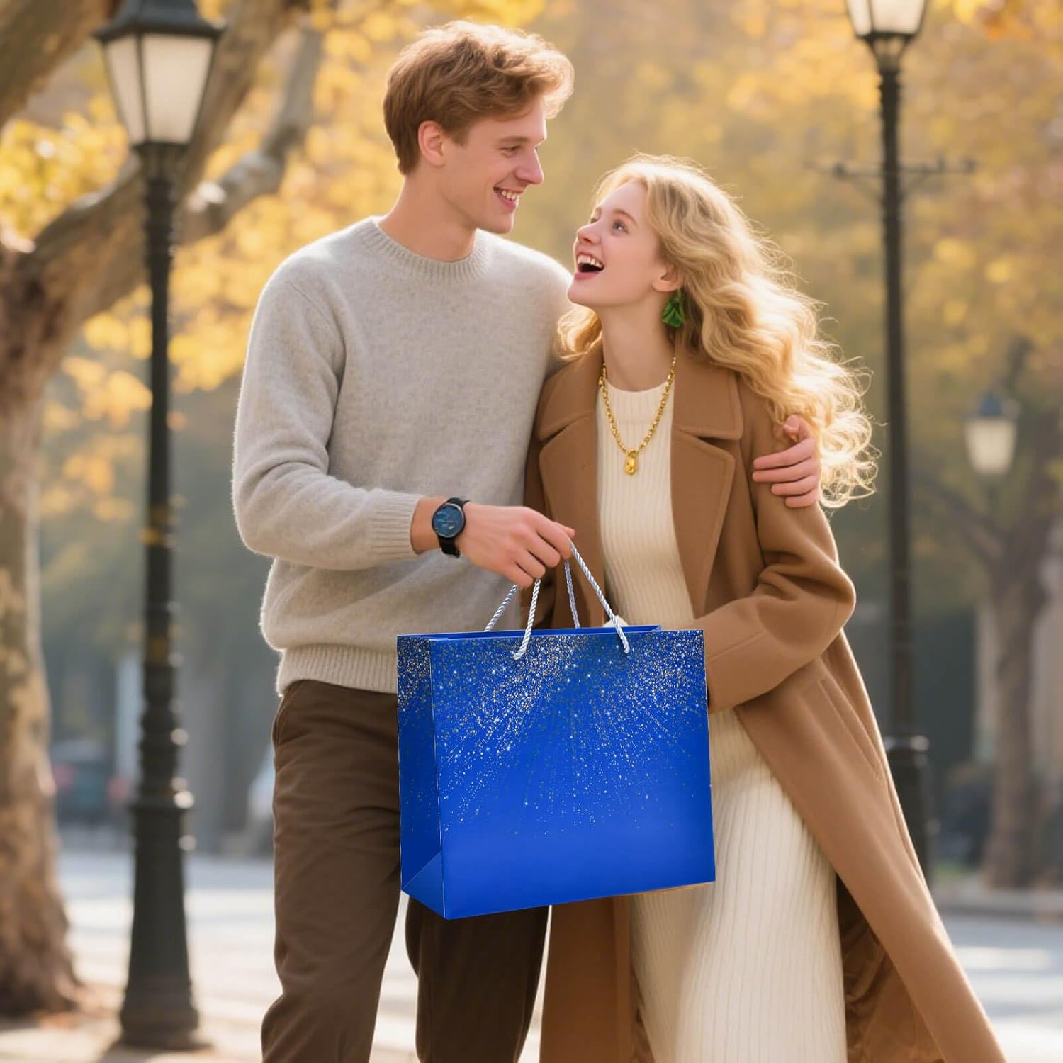 【Sacchetti di carta con manico】I sacchetti regalo sono di medie dimensioni (27,9 x 32,0 x 11,0 cm). Perfetto per feste di compleanno, regali di compleanno, anniversari di matrimonio, regali di compleanno per donne, ecc. Design blu stellato: il sacchetto regalo colpisce per il suo design unico e bellissimo. Non solo consente al destinatario di apprezzare la confezione squisita, ma aggiunge anche un'atmosfera festosa alla confezione regalo. Questi sacchetti regalo sono perfetti per varie festività, feste di compleanno, anniversari, anniversari di matrimonio, Natale, giorni festivi, festa del papà, festa della mamma, San Valentino, ecc. Multiuso: i sacchetti regalo sono perfetti per feste primaverili, matrimoni, baby shower, Ringraziamento, Natale, regali di compleanno per ragazze, anniversari, feste di Pasqua, eventi di beneficenza e altri eventi. Soddisfa le esigenze di ogni occasione speciale di vacanza. Regaleranno a te e al destinatario bellissimi ricordi e aggiungeranno eleganza, qualità e lusso. 【Sacchetti regalo ecologici】 I sacchetti regalo sono realizzati in cartone ecologico di alta qualità e possono essere riutilizzati come borse per la spesa. Sono abbastanza spessi da durare a lungo e non si rompono facilmente, rendendoli un'eccellente confezione regalo. 【Pacchetto incluso】12 sacchetti regalo con manici e servizio clienti 24 ore su 24. Il motivo blu stellato del sacchetto regalo mette in risalto il suo design raffinato e rende il tuo regalo ancora più squisito e lascia un'impressione duratura.