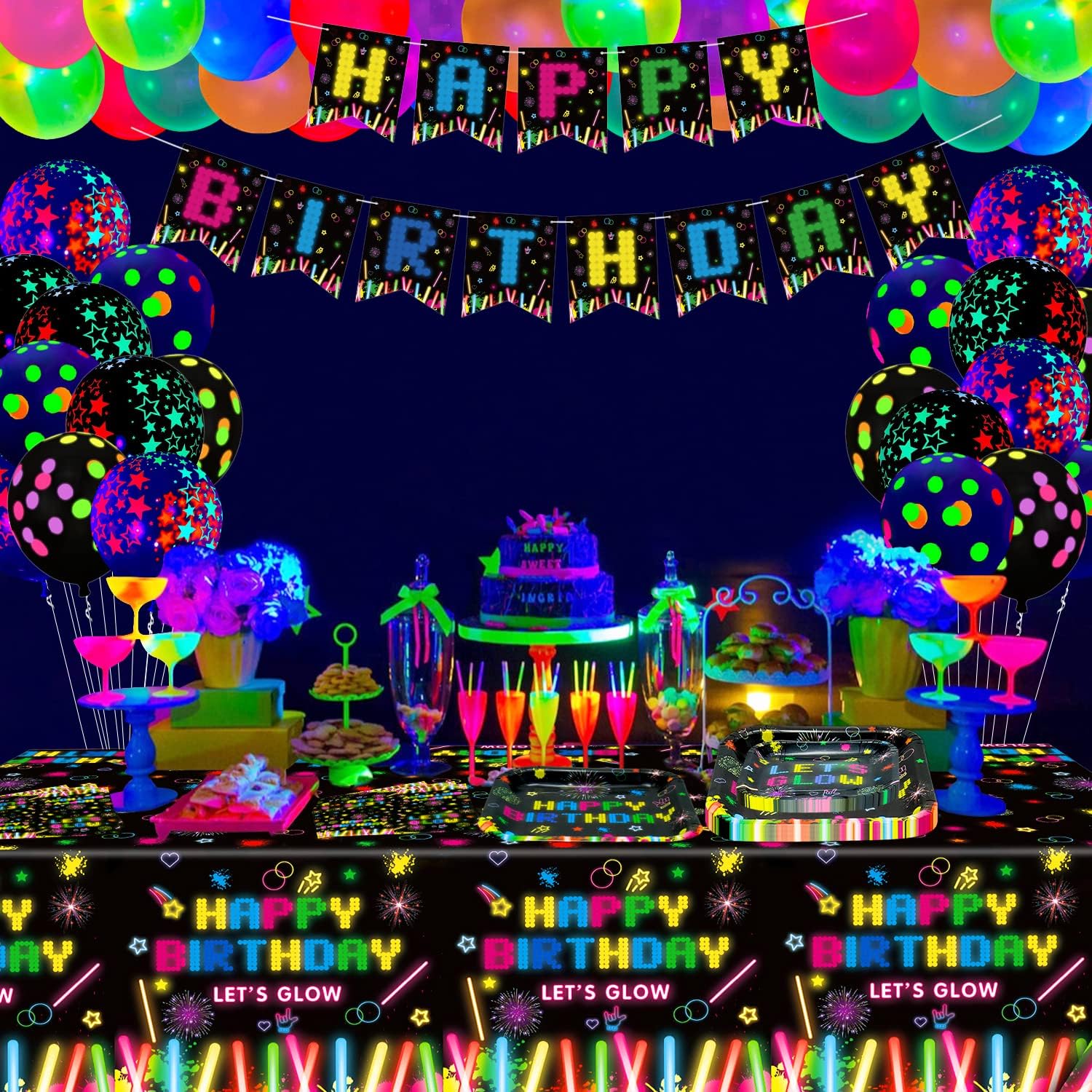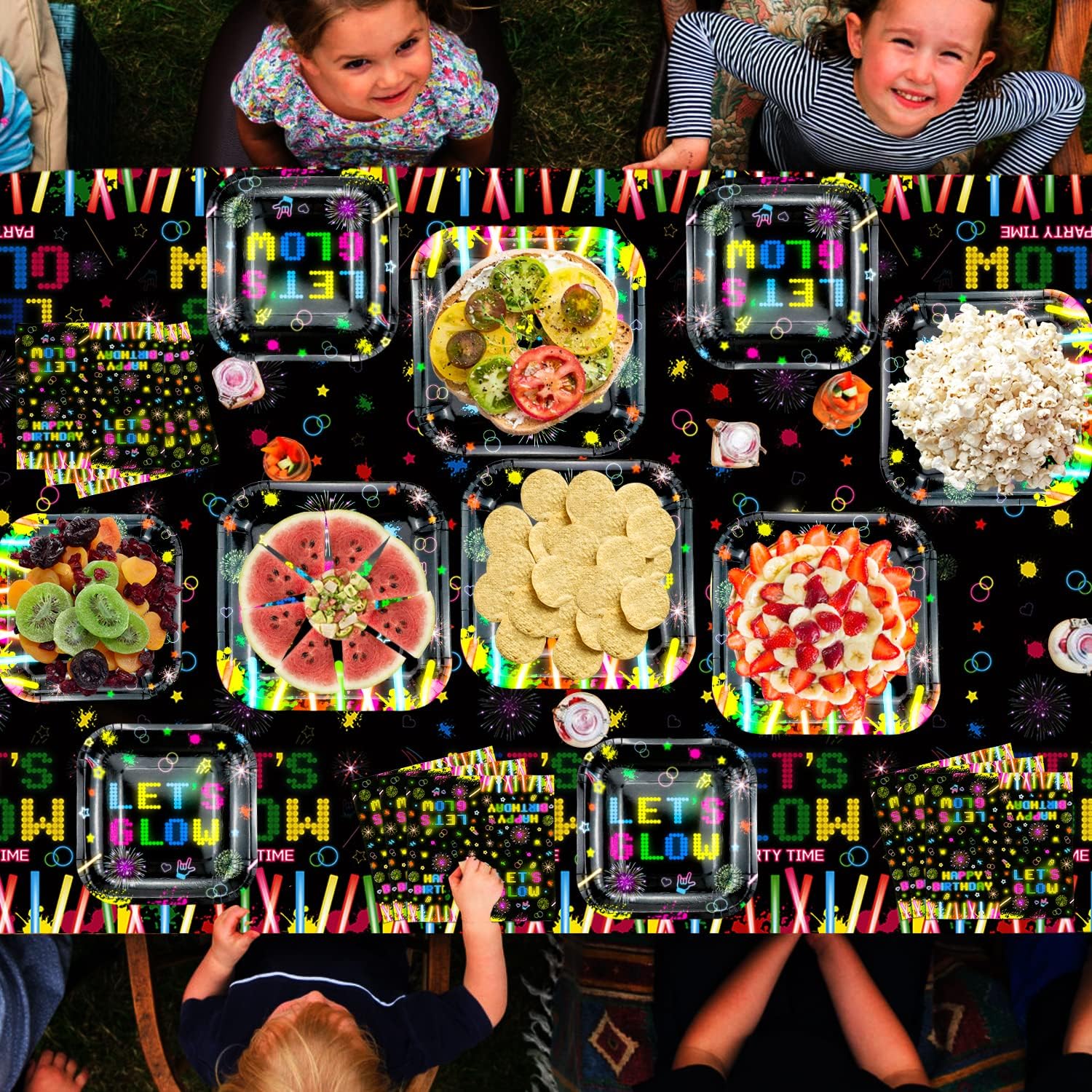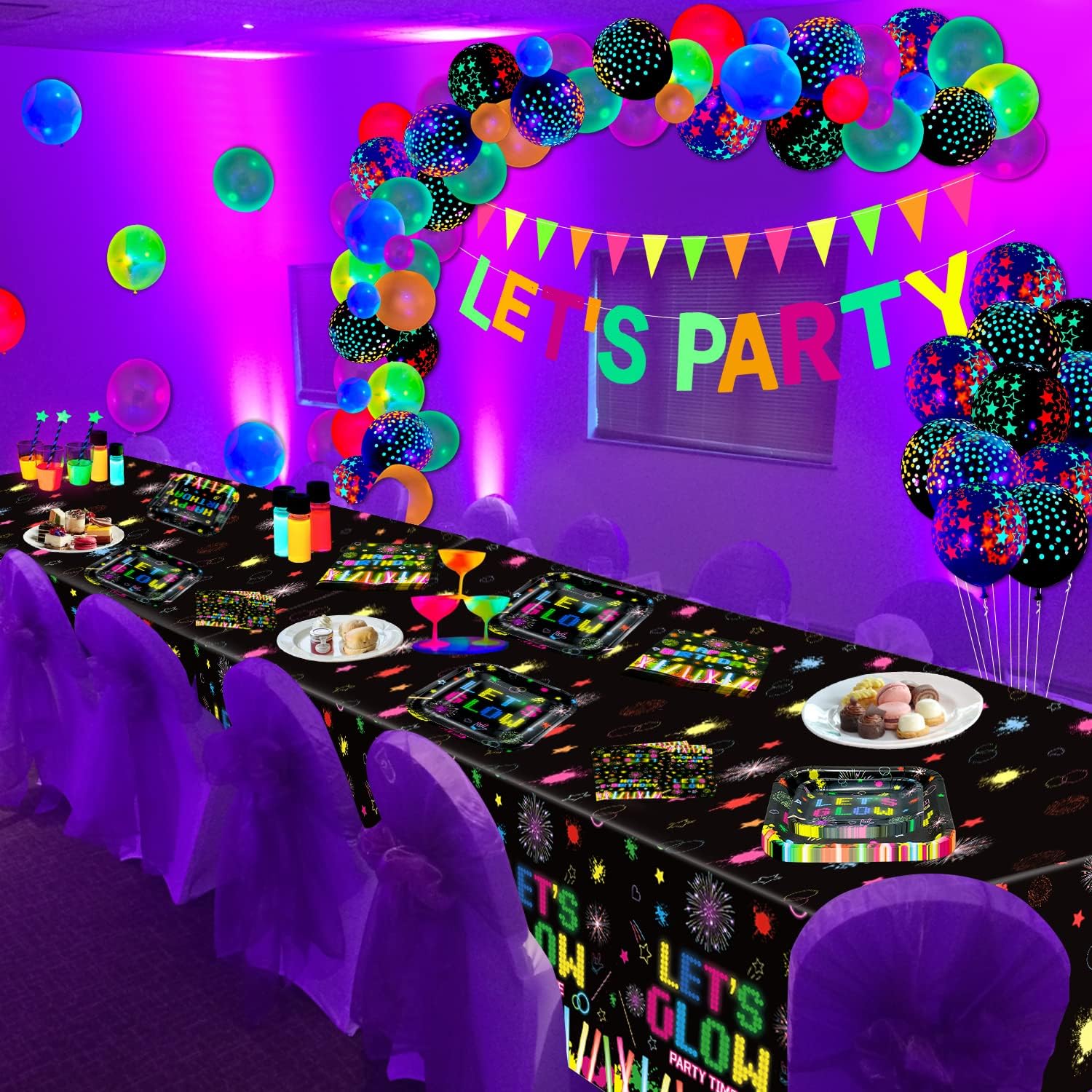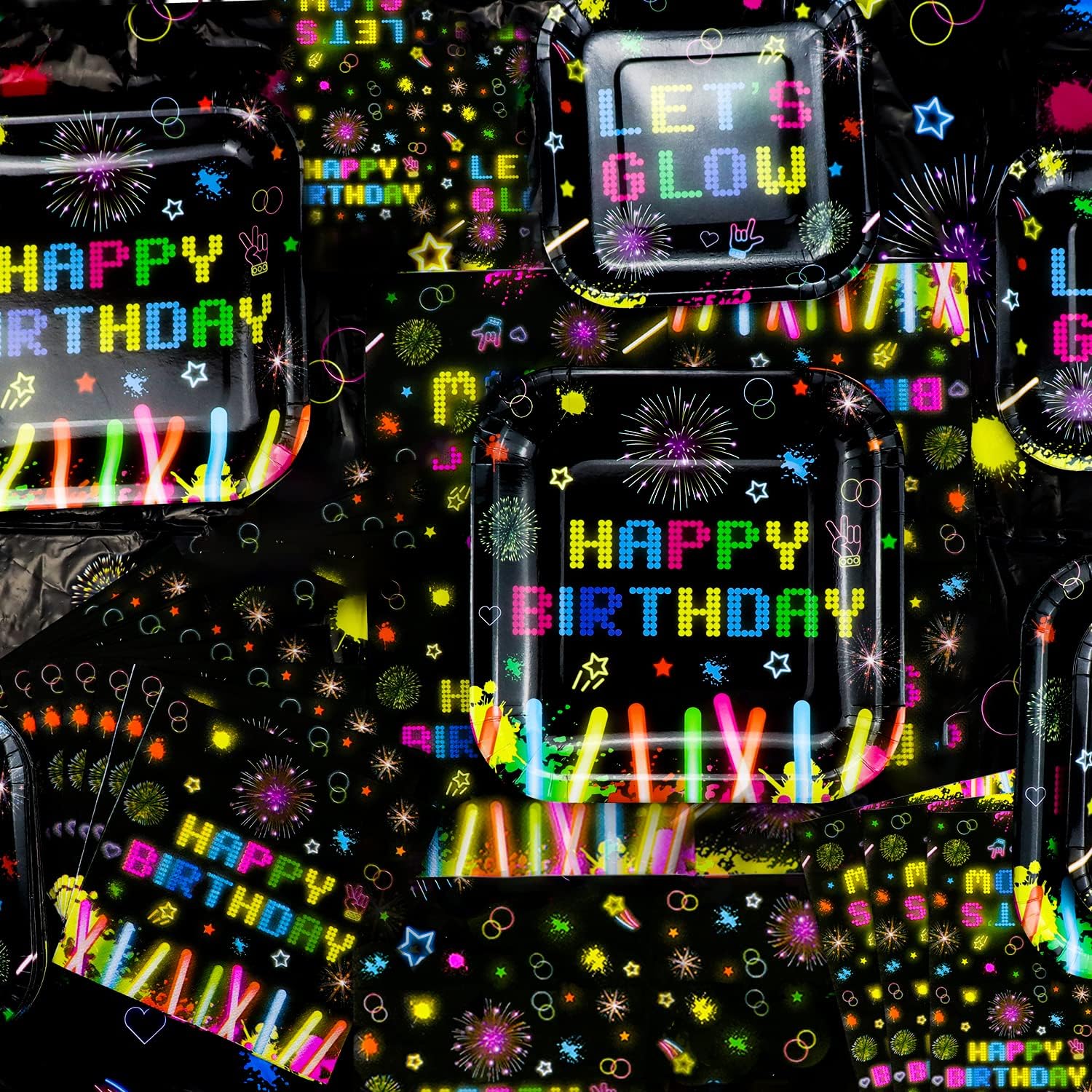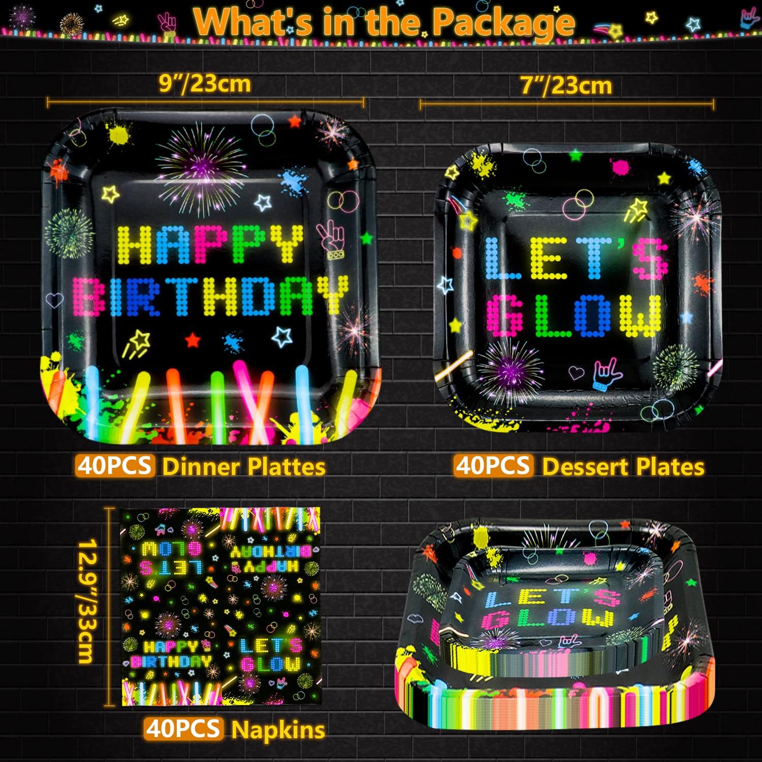 Forniture per feste a tema Let's Glow incluse: 40 piatti piani da 9 pollici, 40 piatti da dessert da 17,8 cm, 40 tovaglioli per 40 ospiti. Questo set di stoviglie per feste è sufficiente per la tua festa unica! Design accattivante: questi articoli per feste al neon presentano un motivo di luce al neon e elementi colorati di graffiti su uno sfondo nero, adatti per decorazioni per feste per bambini o adolescenti. I cerchi colorati al neon e gli anelli a stella su sfondo nero renderanno la tua festa di compleanno vibrante e brillante. Nota: le stoviglie per uso alimentare non si illuminano al buio o sotto la luce nera. Materiale di alta qualità: i piatti luminosi a tema neon sono realizzati in cartone per uso alimentare, spesso e robusto, atossico, nessun odore strano ed ecologico. Il motivo e il colore sono ben stampati e resistenti allo sbiadimento. Non sono facili da piegare, piegare o strappare e abbastanza forti da contenere un piatto pieno di cibo. Il set di stoviglie luminoso per feste sembra davvero carino ed elegante. Risparmia tempo per goderti la festa. Mantieni i tuoi tavoli puliti e privi di macchie causate da cibo versato, latte, succo di frutta o limonata; i tovaglioli sono altamente assorbenti e morbidi. Puoi buttare via i piatti di carta luminosi e i tovaglioli dopo la festa e il disordine può essere rapidamente riordinato, quindi non devi preoccuparti della pulizia! Hai semplicemente più tempo per goderti la festa con i tuoi amici e la tua famiglia! Occasioni adatte: perfetto per tutti gli eventi e le occasioni: matrimoni, compleanni, anniversari, fidanzamenti, baby shower, addio al nubilato, feste di compleanno per bambini, feste a tema fluorescente, feste estive rave, decorazioni per palcoscenici, concerti, feste di carnevale, feste di compleanno che si illuminano al buio, carnevale, feste da ballo o ovunque siano richiesti colori vivaci al neon.