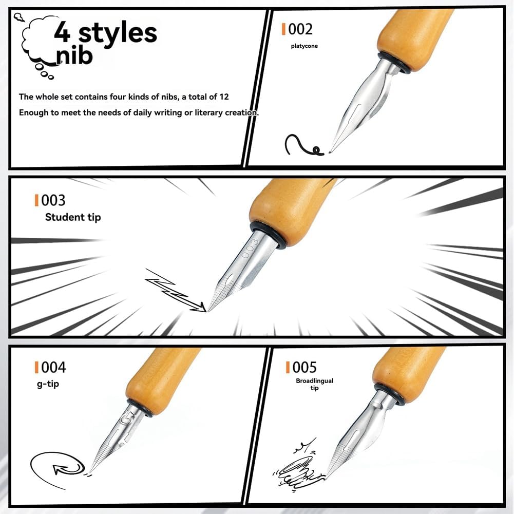 Facile da usare: 4 modelli di punte per penna a fumetti sono adatti alle tue esigenze in diverse situazioni e puoi utilizzarli con il supporto in legno incluso, che è pratico e può dare libero sfogo alla tua atmosfera artistica. Design pratico: il design con scanalatura del portapenne da disegno consente di disegnare o scrivere più comodamente. I portapenne universali sono compatibili con penne per fumetti, D-Pen e pennini per la scuola e offrono un'ampia gamma di applicazioni. Il pacchetto include: Riceverai 12 pezzi di pennini per fumetti e 2 pezzi di portapennini per fumetti. Una quantità sufficiente e 4 diversi modelli di molle possono soddisfare le tue esigenze quotidiane. Materiale affidabile: il portapenne per fumetti è realizzato in materiale di legno affidabile, atossico e con impugnatura confortevole. È realizzato in sottile acciaio inossidabile, non arrugginisce facilmente e scrive senza problemi, offrendoti una buona esperienza. Nota importante: la punta della penna a fumetti in acciaio inossidabile è protetta in fabbrica con olio antiruggine. Pertanto, prima di utilizzarlo per la prima volta, pulirlo più volte con acqua di dentifricio fino a quando l'inchiostro sulla superficie sarà uniforme.