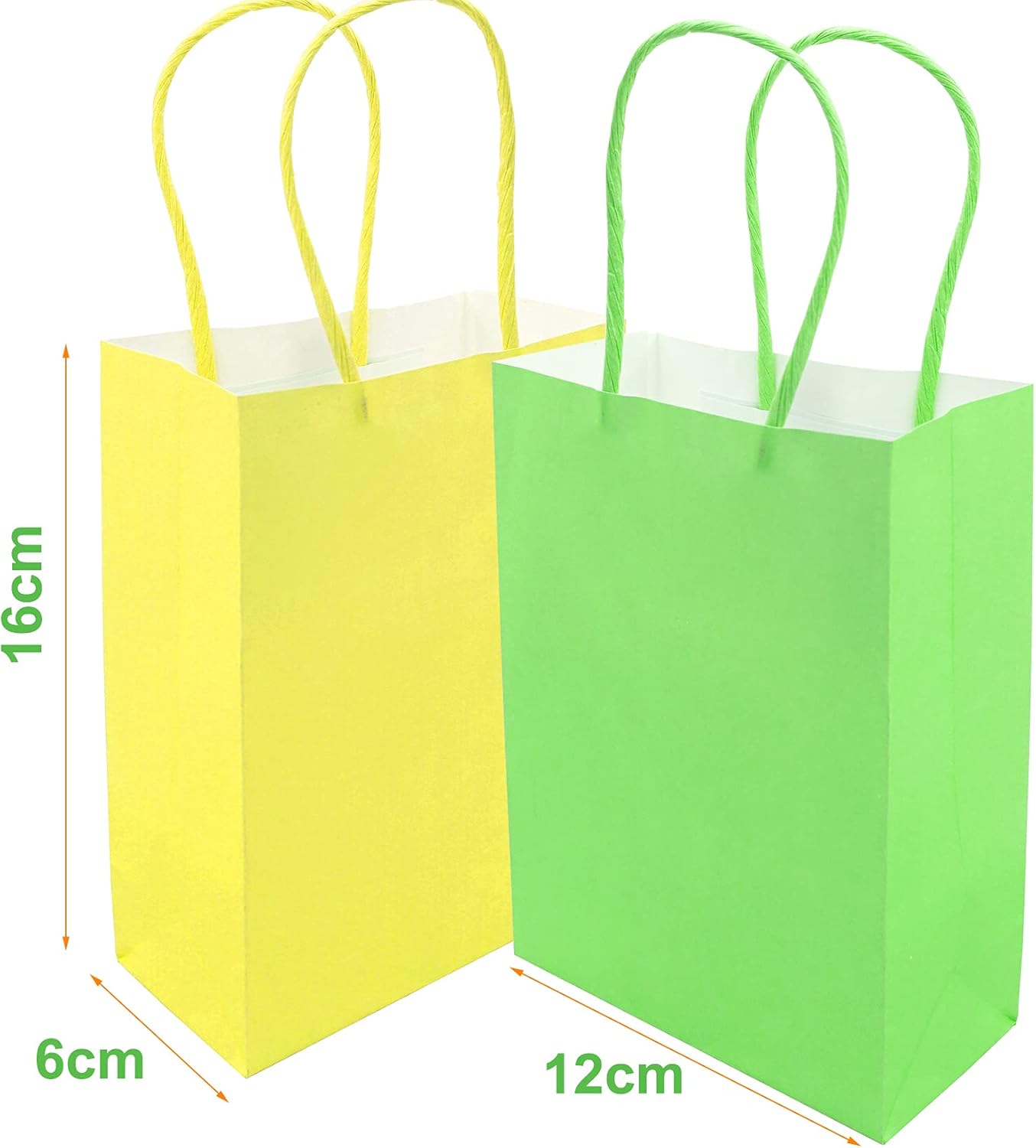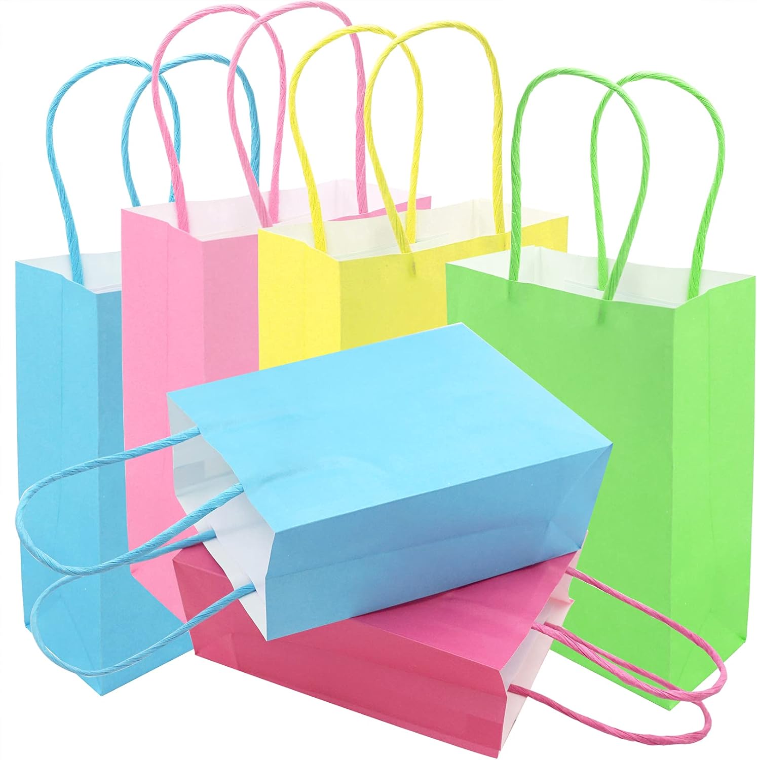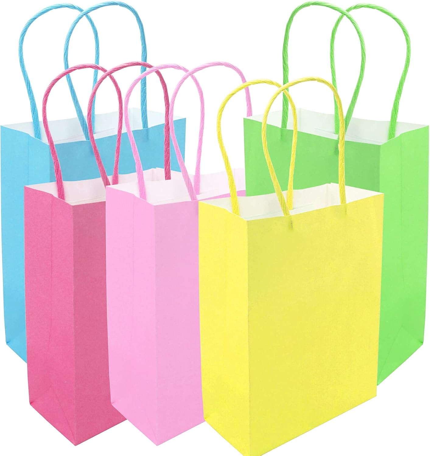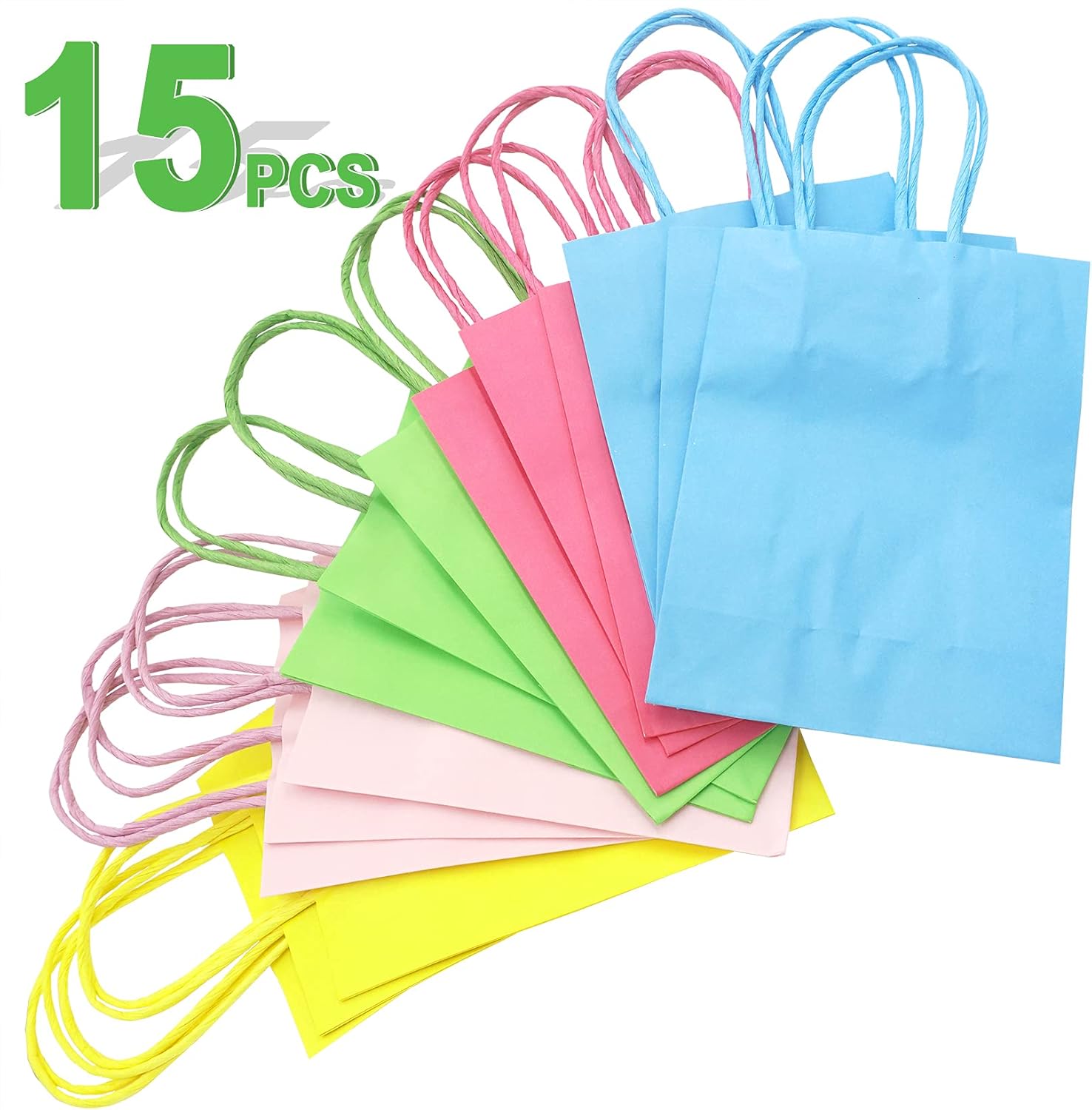 Confezione da 15 sacchetti regalo, sacchetti di carta, sacchetti di caramelle per regali, omaggi, compleanni, matrimoni, feste, ecc., 12x6x16 cm. Dimensioni borsa: 12 cm x 6 cm x 16 cm/4,7 x 2,3 x 6,2 pollici (lunghezza x larghezza x altezza), l'altezza 16 cm non include l'altezza del manico. Colore e quantità: 5 colori vivaci e 3 pezzi per ogni colore, per un totale di 15 sacchetti di carta. Si adatta a molti dolci e piccoli regali per compleanni, matrimoni, festival, ecc., 15 pezzi di sacchetti regalo colorati, sacchetti di carta, sacchetti di caramelle