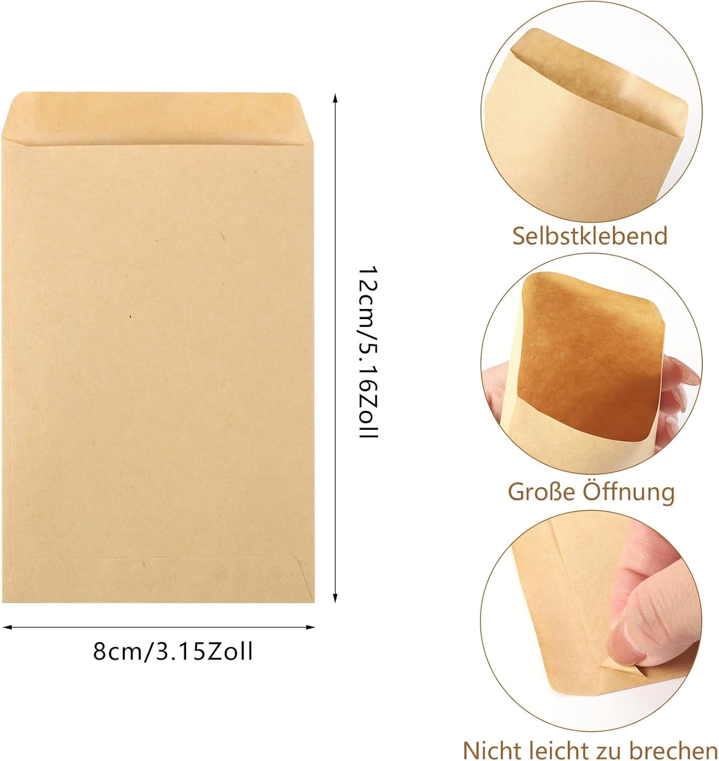 Nota: mini sacchetti di carta, assicurati al momento dell'acquisto se la dimensione della borsa è adatta al tuo scopo. 【Dimensioni e quantità】 Mini sacchetti di carta marrone da 150 pezzi, la dimensione è 8 x 12 cm/3,15 x 4,72 pollici, quantità sufficiente per Natale, Halloween, feste di compleanno, matrimoni e esigenze di riempimento quotidiano. 【Materiale】 Il sacchetto per semi è realizzato in carta kraft da 120 g/m², carta spessa, superficie liscia, senza sbavature sulla superficie di taglio, resistente e stabile, non facile da strappare e di lunga durata. 【Facile da Usare】L'area di chiusura del sacchetto di carta è dotata di adesivo che aderisce solo dopo il contatto con l'acqua. Si prega di applicare un po' d'acqua sulla superficie sigillante del sacchetto di carta prima di sigillarlo. 【Busta fai da te】 La superficie dei sacchetti di carta mini è vuota, puoi scriverci sopra, disegnare, fare graffiti, colla, ecc. Usa la tua creatività per creare buste belle e uniche! 【Versatile】 I sacchetti di carta kraft marrone possono essere utilizzati per riempire semi, fagioli, monete, dolci, dessert, accessori, adatti per giardinaggio, ufficio, conservazione domestica e altro ancora.