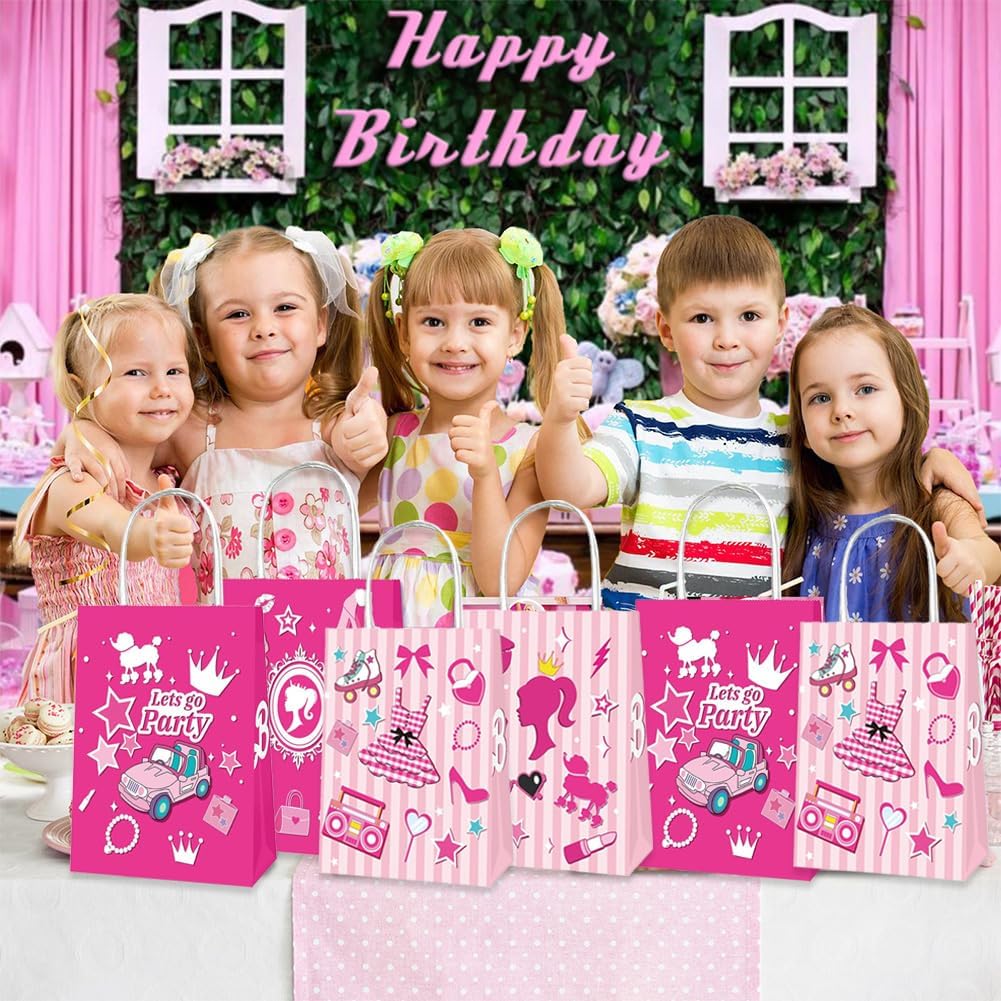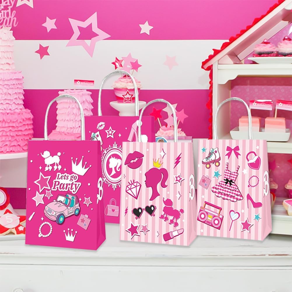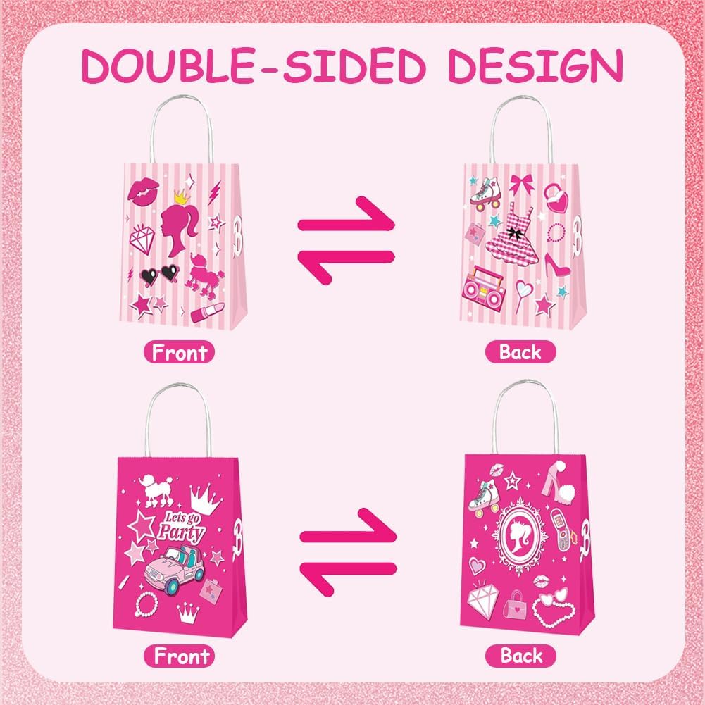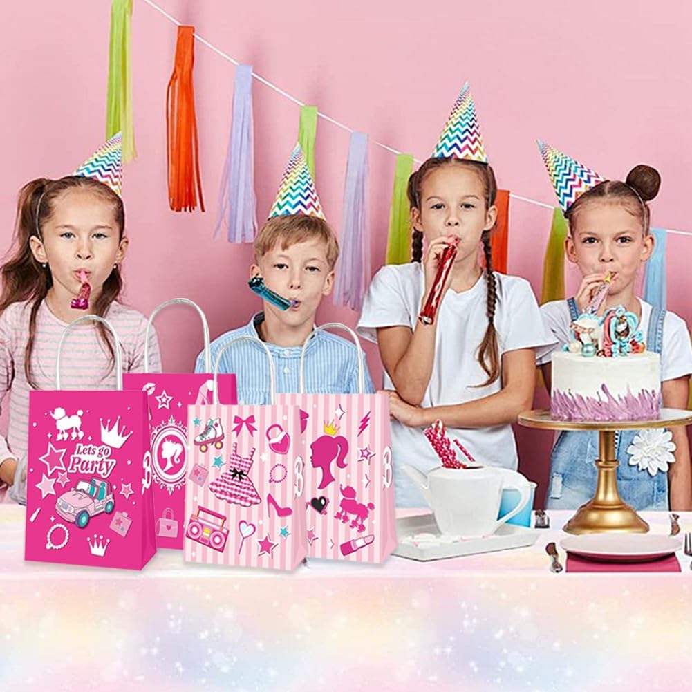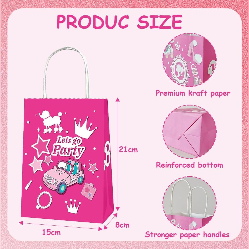 Set di sacchetti di carta per caramelle: riceverete 16 sacchetti regalo di carta in due diversi design, ogni sacchetto regalo di compleanno per bambini misura 21 x 15 x 8 cm ed è quindi abbastanza grande da poter essere utilizzato come sacchetto regalo e sacchetto regalo alle feste. Questi graziosi sacchetti di carta porteranno più gioia alla tua festa e aggiungeranno un'atmosfera vivace alla tua festa. Materiale di alta qualità: i nostri sacchetti di caramelle sono realizzati in carta kraft resistente, delicata e liscia, ecologica e durevole senza sbiadire o danneggiarsi. Le robuste borse con manici possono essere facilmente trasportate e sono ideali per conservare dolci, piccoli regali e altro ancora. Design unico: i sacchetti regalo principessa colpiscono per il loro design unico, rispetto ai normali sacchetti regalo i nostri sacchetti regalo hanno più carattere. Gli elementi del modello sui sacchetti per bomboniere rosa sono amati e desiderati dai bambini, che è la prima scelta per le feste a tema compleanno delle ragazze, è perfetto per varie occasioni come feste di compleanno, compleanni dei bambini o altri eventi festivi. Comodo e pratico: con i sacchetti di carta per il compleanno dei bambini da 21 x 15 x 8 cm i sacchetti regalo offrono spazio sufficiente. Questi sacchetti di carta hanno un fondo piatto in modo che possano essere posizionati in posizione verticale. Ideale per conservare torte, caramelle, biscotti e altri dolci. Le dimensioni compatte li rendono facili da maneggiare e allo stesso tempo abbastanza spaziosi per soddisfare tutte le esigenze delle feste. Applicazione versatile: questi sacchetti regalo per ragazze sono versatili e sono perfetti per compleanni di bambini, feste a tema, feste per bambini e altre occasioni festive. Possono essere utilizzati non solo come sacchetti regalo, ma anche come oggetti decorativi per migliorare l'atmosfera della festa e conservare piccoli giocattoli, torte, dolci e altro, perfetti per l'uso quotidiano