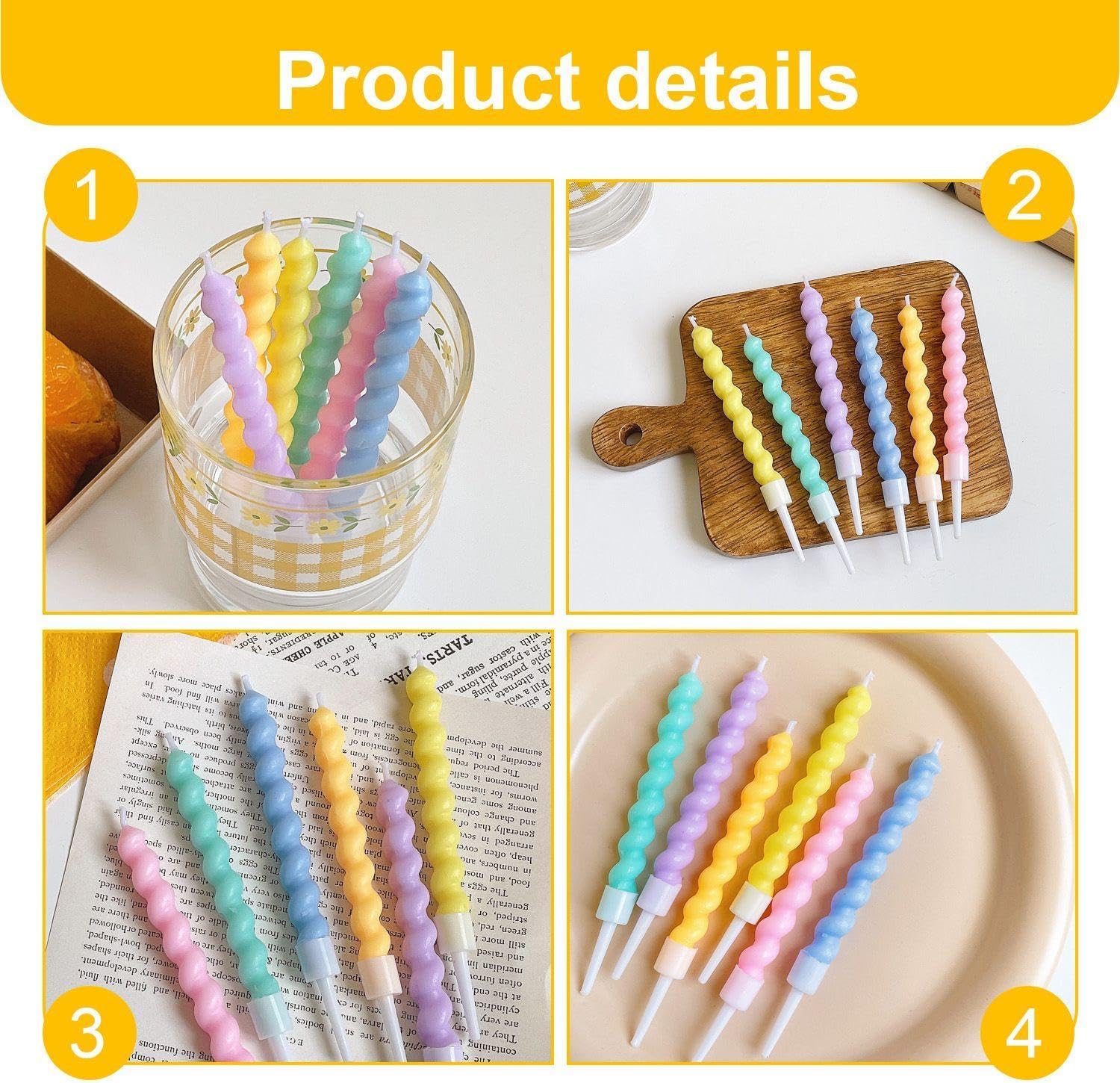 【Contenuto Del Prodotto】Riceverai 18 Pezzi Di Candele A Spirale Color Arcobaleno. La Dimensione Di Ogni Candela È Di Circa 11, 4 Cm Di Altezza E 1 Cm Di Diametro. Il Colore È Colorato Ed È Adatto Per Decorare Torte Di Compleanno E Altre Decorazioni Per Dessert. 【Materiale Del Prodotto】 Questo Prodotto È Realizzato In Cera Per Garantire Un Utilizzo Sicuro. Il Materiale Assicura Che Le Candele Brucino In Modo Uniforme E Duraturo, E Che I Colori Siano Brillanti E Non Sbiadiscano Facilmente, Donando Alla Tua Torta Un Bellissimo Effetto Decorativo. 【Design Creativo】Questo Prodotto Presenta Un Design Unico Con Una Forma A Spirale Color Arcobaleno, Che Aumenta Il Divertimento E La Bellezza Della Decorazione. Che Si Tratti Di Una Festa Di Compleanno O Di Un'Altra Celebrazione, È Una Scelta Molto Divertente. 【Facile Da Usare】 Questo Articolo È Facile Da Usare, Basta Mettere La Candela Sulla Torta O Sul Dessert. Quando Sono Accesi, Aggiungono Un'Atmosfera Calda E Festosa Alla Tua Festa E Sono Facili Da Pulire Dopo L'Uso. 【Ampia Applicazione】 Questo Prodotto Non È Adatto Solo Per Torte Di Compleanno, Ma Può Anche Essere Utilizzato Per La Decorazione Di Dessert In Altri Festival E Celebrazioni. Adatto A Riunioni Di Famiglia, Cene Con Amici E Feste Varie, Aggiungendo Colore E Divertimento Ai Vostri Dolci.
