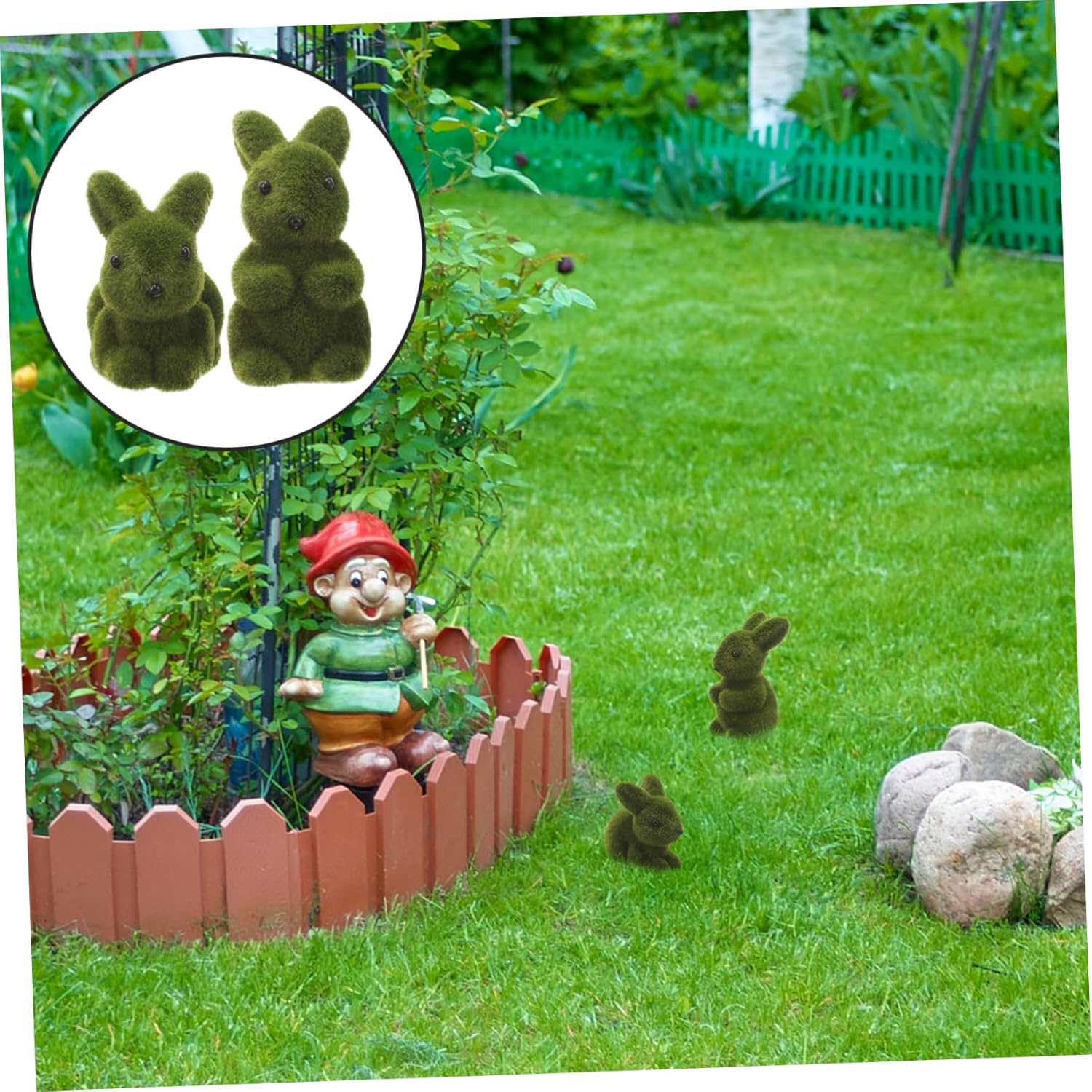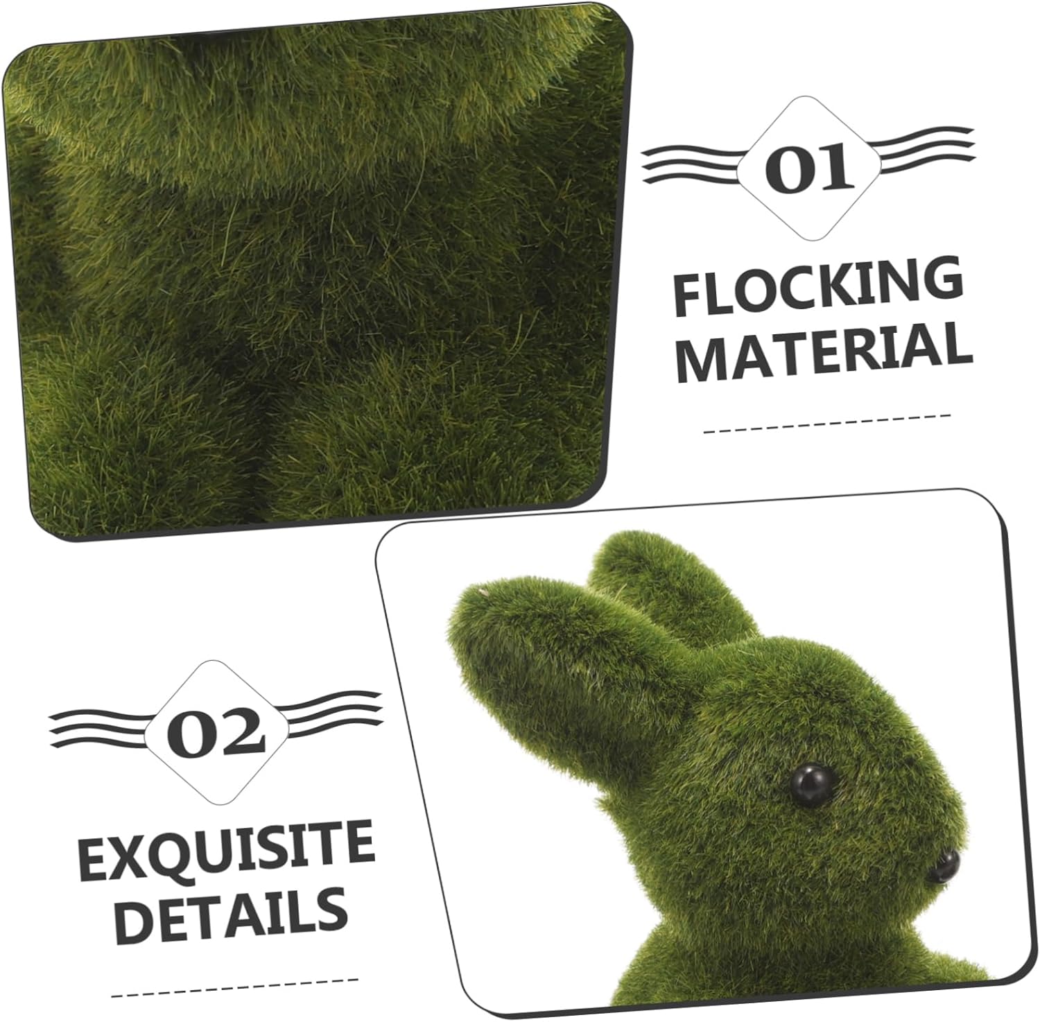 Figure di conigli floccati: molto adorabili e possono creare un'atmosfera festosa. può decorare la scrivania, lo scaffale, il giardino, ecc. come un coniglio paesaggistico Coniglietto pasquale artigianale: il modello del coniglio finto è un meraviglioso ornamento paesaggistico per il tuo giardino, aggiunge un paesaggio fresco alla decorazione della casa e del giardino Statuine da giardino pasquali: una graziosa decorazione a forma di coniglio può decorare la tua casa e portare un sorriso in una vita frenetica, statua di coniglio Coniglio simulato: il design dà una sensazione piacevole ed è la tua festa di Pasqua, la decorazione pasquale Figure di coniglietto floccato: realizzate in materiale floccato, leggero e resistente, coniglietto di Pasqua