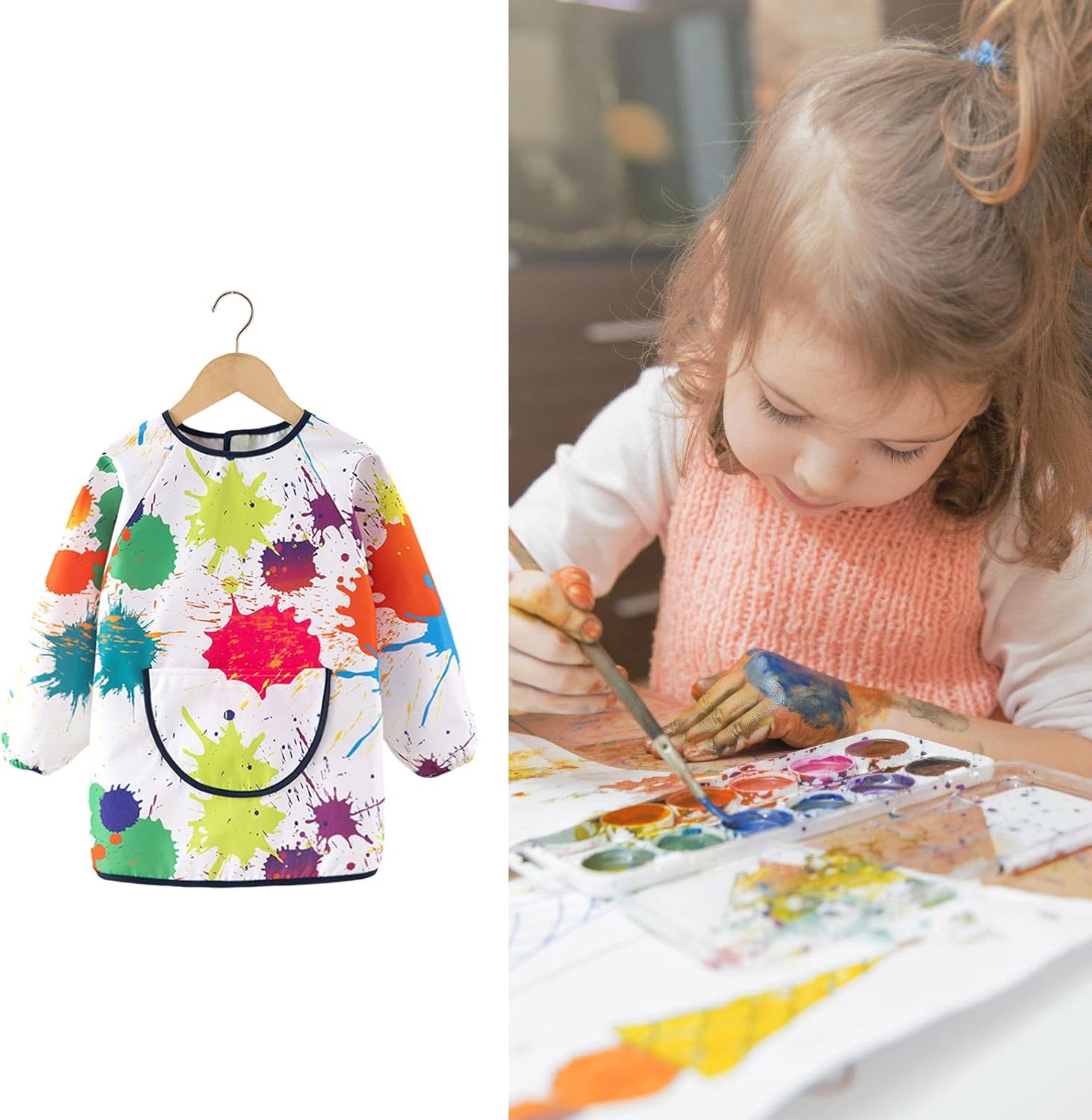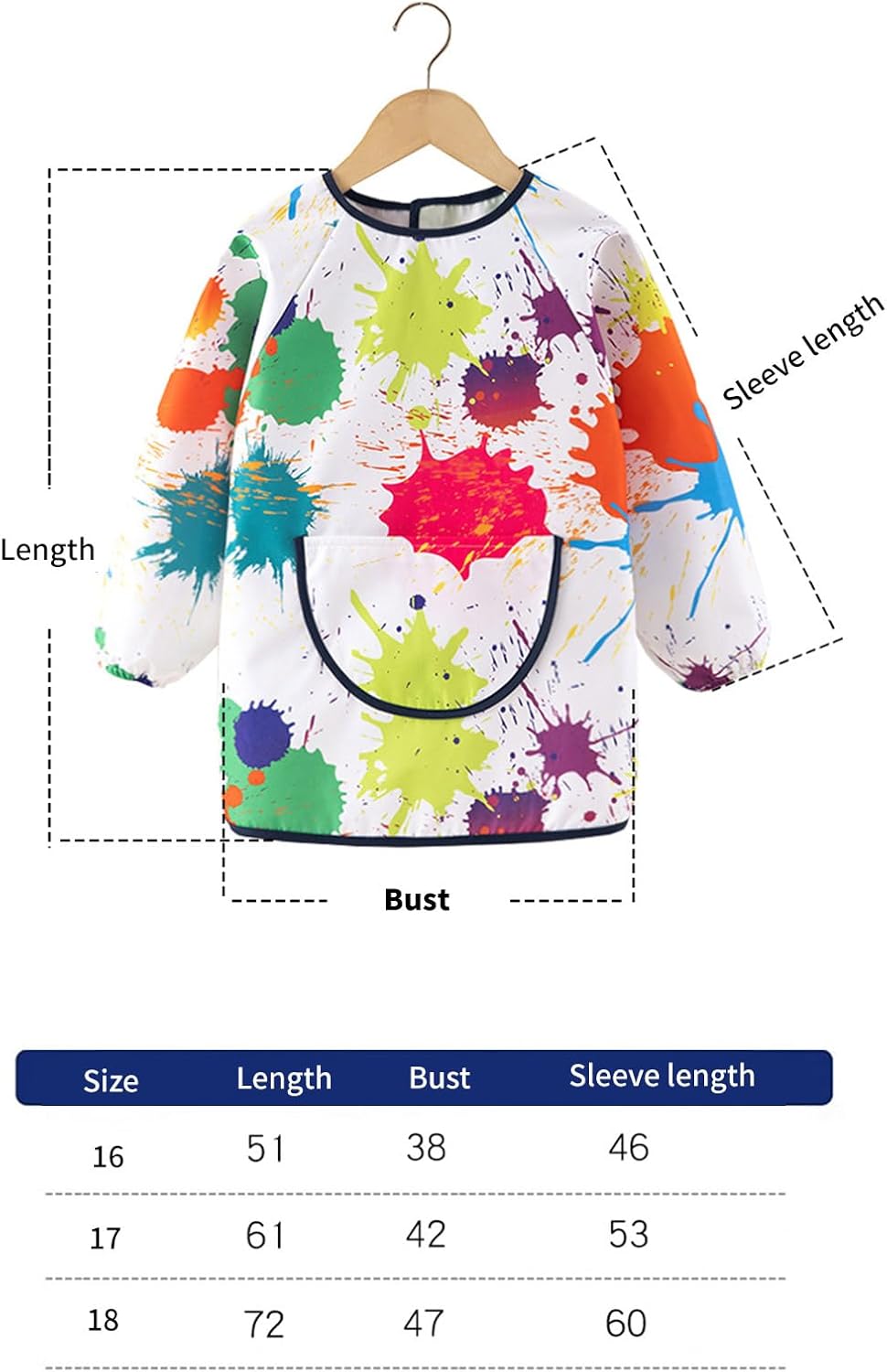 Confezione da 2 grembiuli artistici per bambini con maniche e tasche per dipingere età 3-6 anni Caratteristiche: Mantieni i vestiti dei tuoi bambini senza macchia con il grembiule per bambini resistente all'acqua, con maniche lunghe e 3 spaziose tasche per pennelli, pennelli in spugna e altri strumenti di pittura artistica. Realizzato in tessuto di poliestere per una rapida asciugatura, rinforzato con polsini elastici e strisce adesive posteriori per scivolare durante il progetto disordinato. Adatto per bambini, bambini, bambini in età prescolare e bambini dai 3 agli 8 anni, che amano dipingere, cucinare o praticare attività artistiche. Ampiamente usato per pittura artistica domestica, cucina, mangiare, lezioni di arte scolastica, feste di compleanno per bambini o qualsiasi attività che richieda una protezione completa del corpo da fuoriuscite e macchie. Grembiule lavabile in lavatrice per bambini, il tessuto traspirante garantisce comfort e facile pulizia dopo aver dipinto, mangiato, cucinato e giocato. Specifiche tecniche: Componente: poliestere. Colore: Color01, Color02, Color03, Color04 Dimensioni: vedere la tabella delle taglie. Peso: circa 100 g. La confezione include: 1 grembiule da pittura per bambini. Nota: Si prega di considerare un margine di errore di 0-1 cm a causa della misurazione manuale. Assicurati di non avere un problema prima di fare un'offerta. 2. L'immagine potrebbe non rispecchiare il colore reale a causa delle diverse impostazioni dei monitor