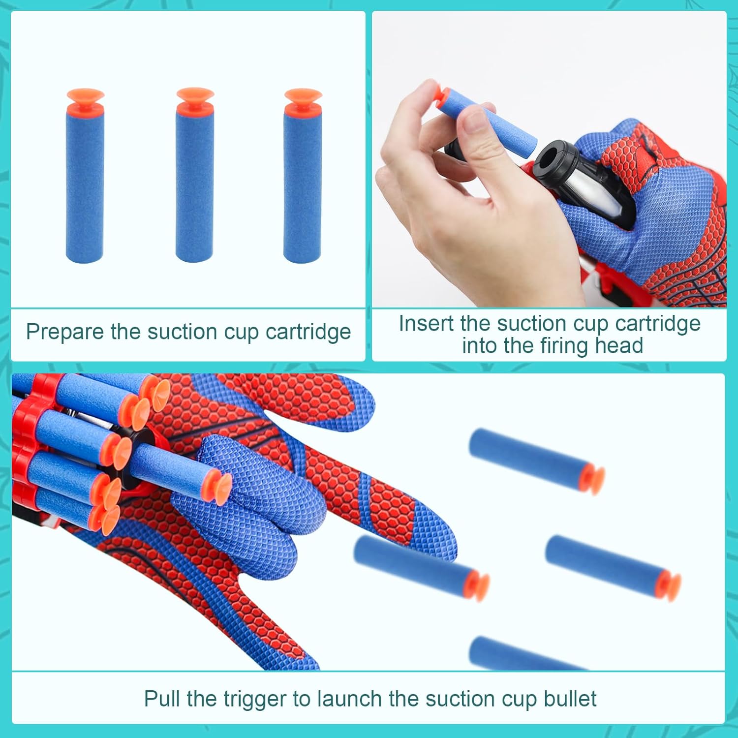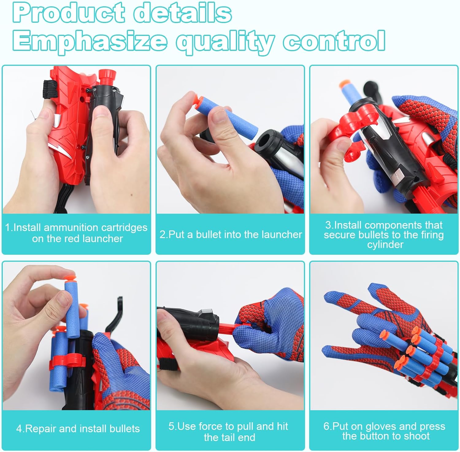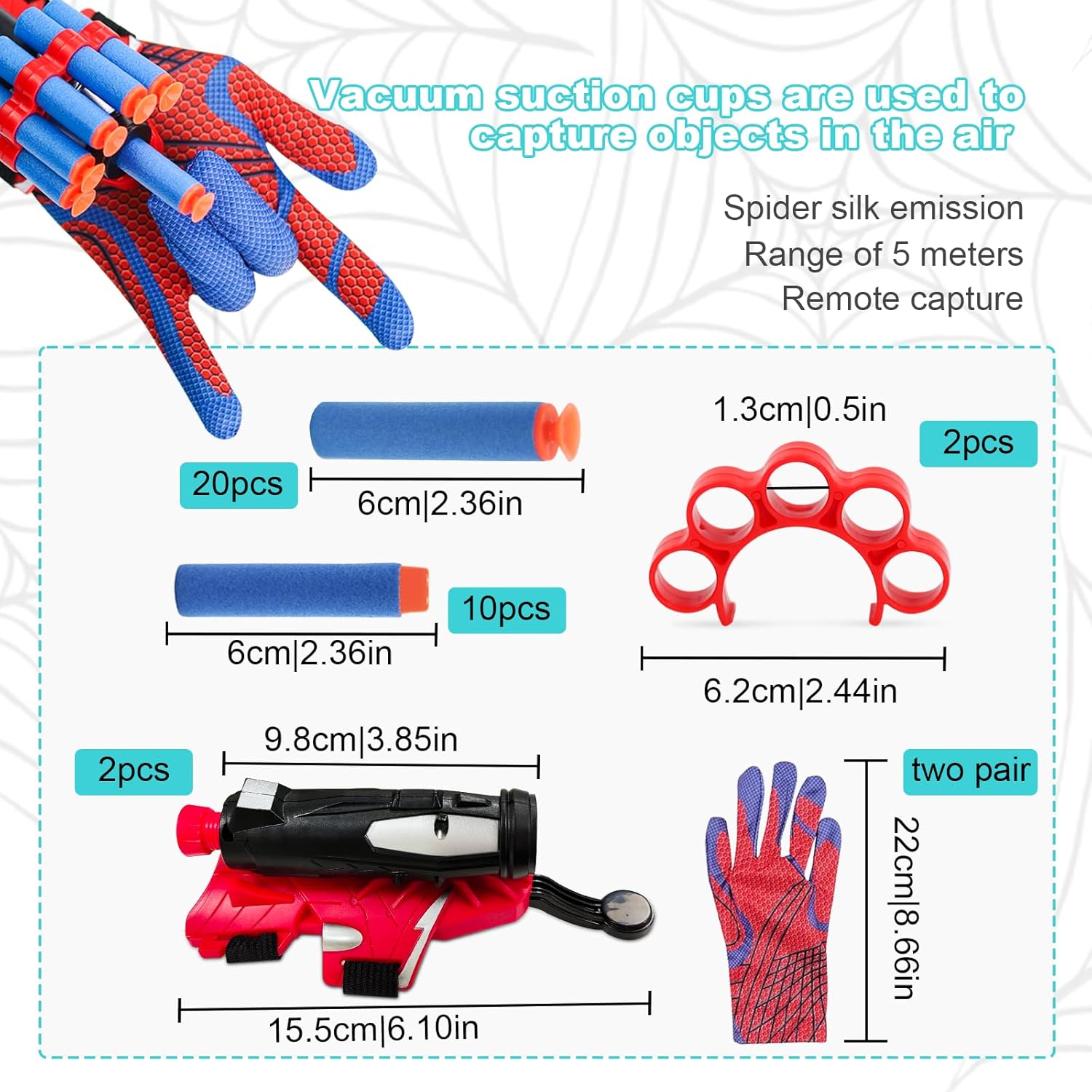 🎁Materiale di alta qualità: il nostro lanciatore di eroi è realizzato in plastica e tessuto di alta qualità e ha una ventosa sulla parte superiore del proiettile, quindi è molto sicuro e non causerà alcun danno. 🎁 Stimola l'immaginazione: con i nostri guanti e lanciatori Spider-Man, i bambini possono imitare liberamente la scena del film in cui Spider-Man spara attraverso la rete. E gioca a giochi di ruolo con gli amici per migliorare l'interazione con i bambini e farli crescere felici. 🎁Il pacchetto include: riceverai 2 guanti iniziali, 2 lanciatori di eroi e 10 frecce a ventosa. Lascia che i tuoi bambini godano appieno del piacere del gioco di ruolo. 🎁Miglior regalo: il nostro spara-ragnatela è un regalo a sorpresa per ragazzi e ragazze che amano i supereroi! Indossandolo potrai ricreare la scena del film in cui Spider-Man spara la seta di ragno. 🎁Ambito di applicazione: il set di giocattoli di lancio è adatto per Natale, Halloween, feste di compleanno, feste in maschera e giochi di ruolo e può essere utilizzato con altri eroi.