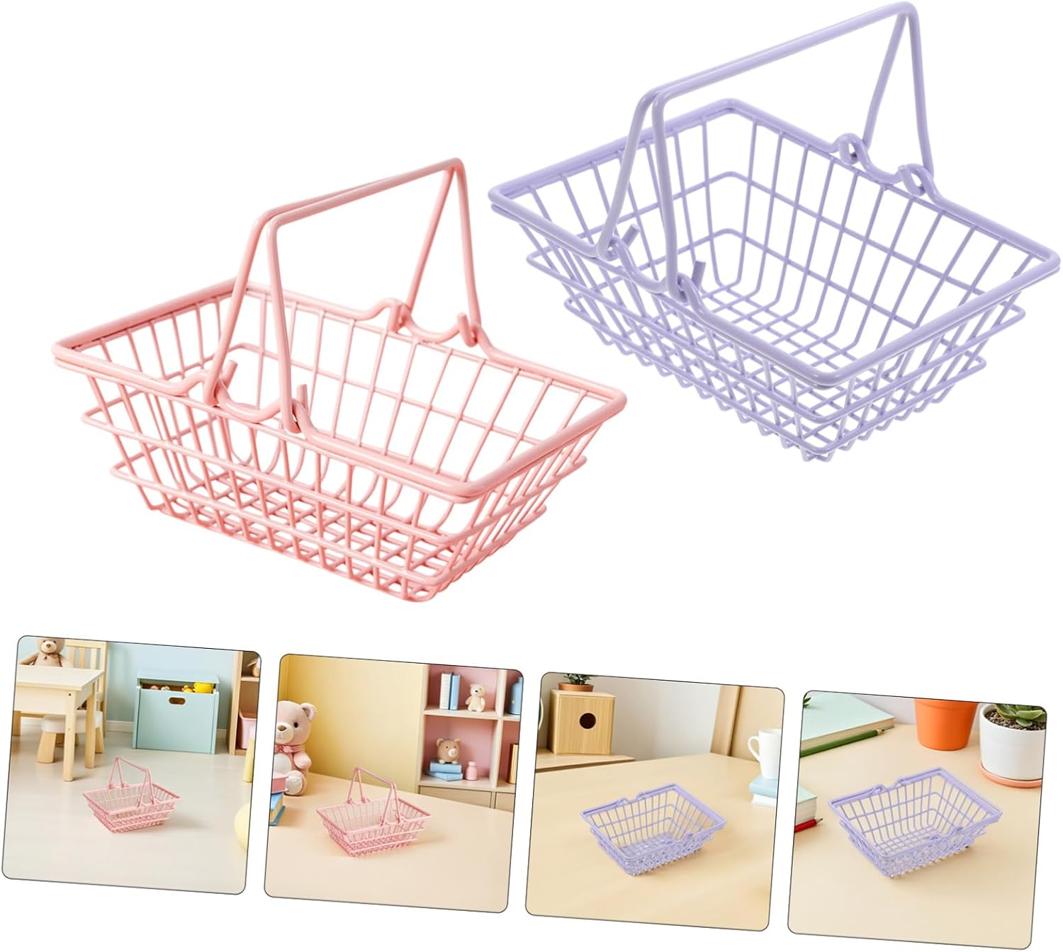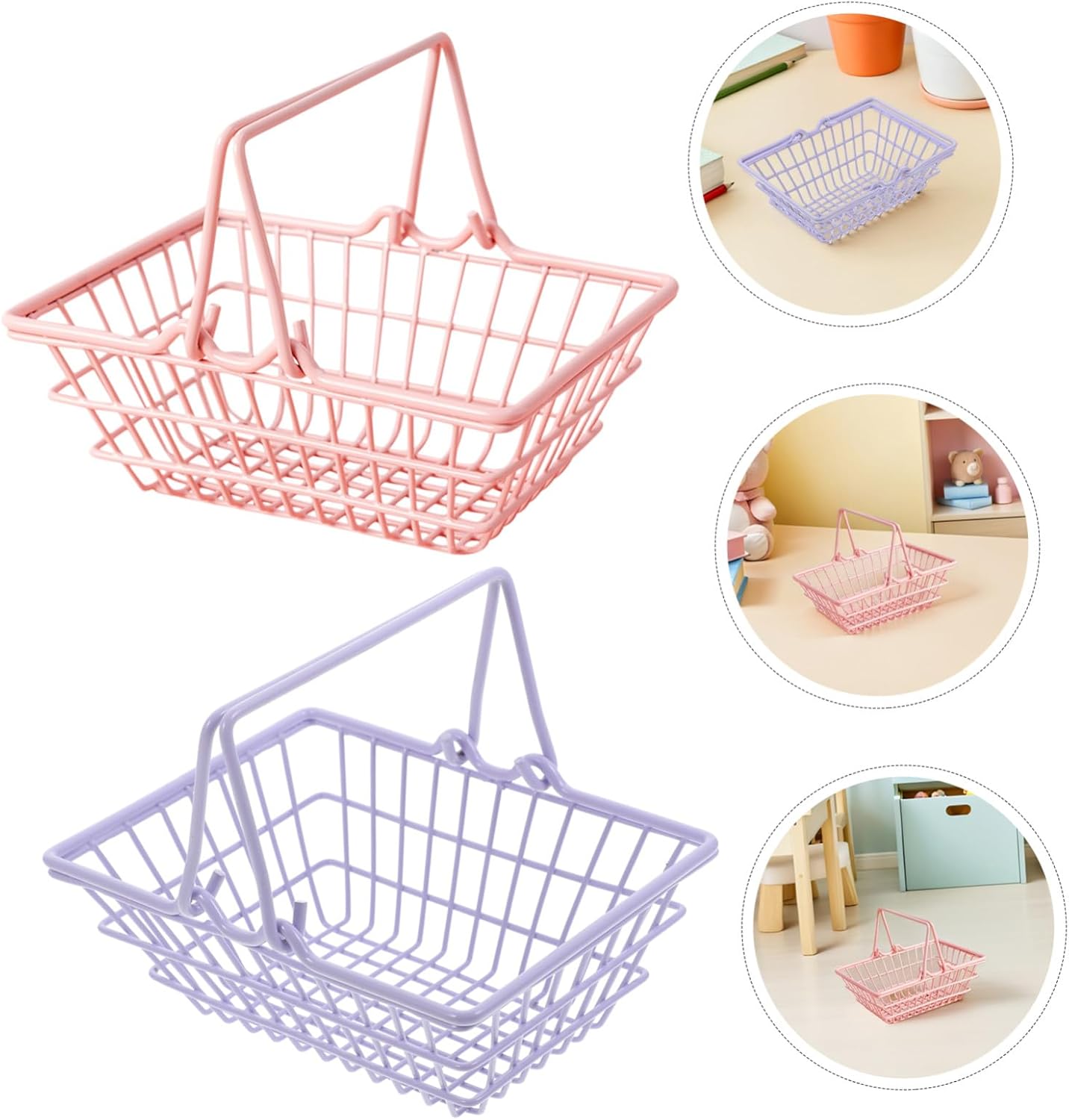 Portatile e facile da trasportare: il cestino della spesa è dotato di pratiche maniglie, così puoi trasportarlo facilmente e gli adulti possono usarlo come un piccolo cestino della spesa, un cestino per il cibo da gioco o un mini cestino della spesa in metallo. Affascinante e decorativo: il design carino del mini cestino per la spesa lo rende un'aggiunta elegante e funzionale a qualsiasi stanza, perfetto per organizzare o come regalo originale, mini cestino per la spesa in filo metallico, cestino per la spesa con pratici manici: il mini cestino per la spesa con manici è facile da trasportare, rendendolo una scelta pratica per il trasporto o come piccolo cestino per la spesa in filo per l'uso quotidiano. Mini cestini portaoggetti, mini cestino per la spesa con maniglie Piccolo cestino in filo metallico: realizzato in robusto metallo, questo mini cestino per la spesa in metallo è sicuro e abbastanza pratico da resistere all'uso quotidiano come cestino per la spesa per bambini piccoli, cestino per la spesa o piccolo cestino per la spesa Costruzione in metallo: il mini cestino per la spesa in metallo è realizzato con materiali pratici, che lo rendono sicuro, pratico e ideale come cestino per la spesa o soluzione di archiviazione, è possibile utilizzare un cestino per la spesa più portatile o un cestino per la spesa per giochi per bambini.