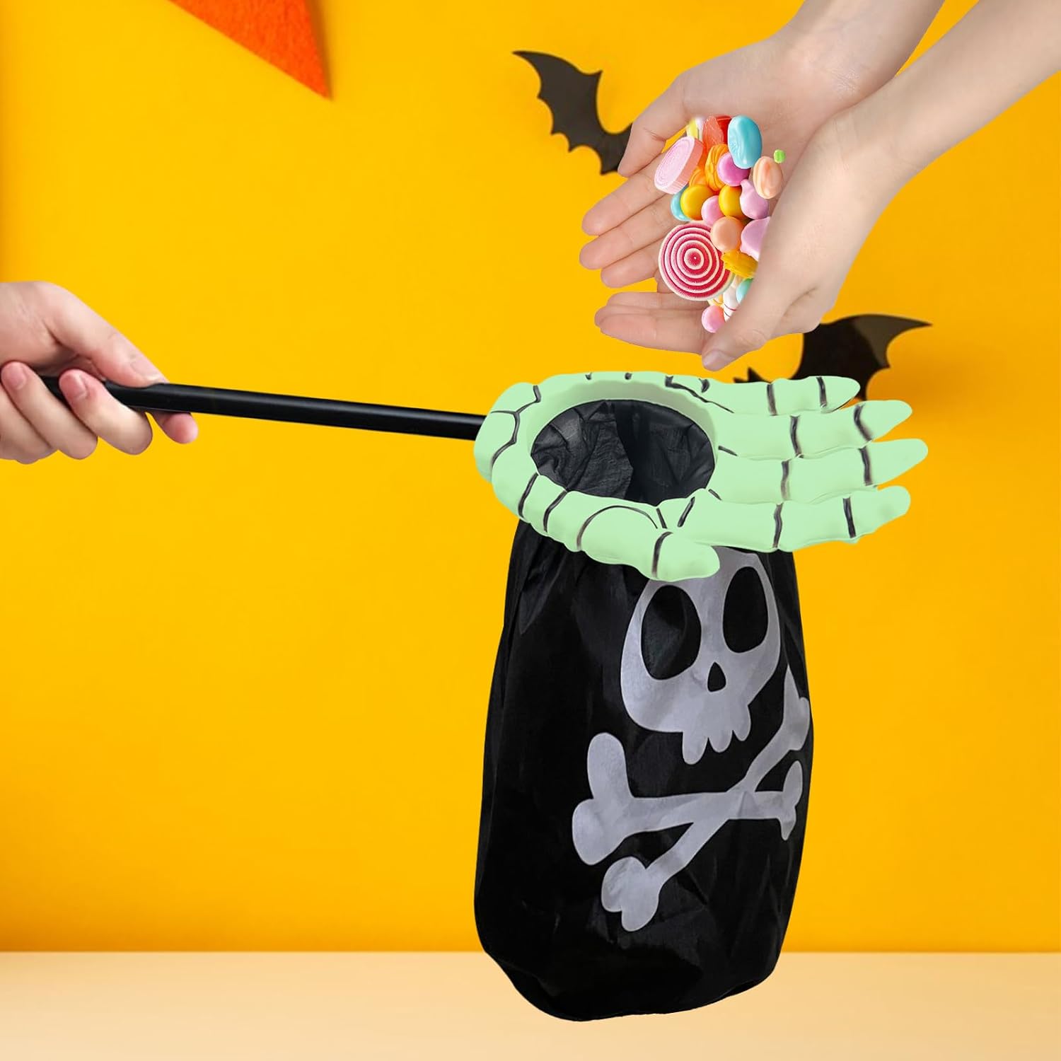 Sacchetto di caramelle di Halloween: questo set include due sacchetti di caramelle a forma di mano con motivi classici di Halloween come zucche e teschi che sono inquietanti e divertenti allo stesso tempo. L'innovativa forma della mano con motivi di zucca e teschio è pratica e portatile, aiutandoti a distinguerti dalla massa alle feste e a mettere in risalto il carattere della celebrazione. Materiali di alta qualità: la borsa da collezione di Halloween è realizzata in plastica e fibre di poliestere di alta qualità, è inodore, resistente e di lunga durata. L'asta di plastica è saldamente collegata alla borsa, durevole, non scolorisce e resistente ai danni e può essere riutilizzata. Design creativo: questo sacchetto di caramelle di Halloween con motivi di zucca e teschio e una forma unica della mano attira davvero l'attenzione. Che si tratti di collezionare dolci o come decorazione per una festa, attira immediatamente l'attenzione di tutti e rende la vostra festa di Halloween qualcosa di molto speciale. Creare un'atmosfera festosa: il design delle mani del teschio trasmette intrinsecamente un senso di orrore e, se combinato con gli elementi del teschio di zucca, si adatta perfettamente all'atmosfera di Halloween, dove "terrore e gioia coesistono". Dà ad attività come dolcetto o scherzetto e feste un'atmosfera intensamente festosa e aumenta il sentimento di partecipazione. L'idea regalo perfetta: non solo il regalo perfetto per Halloween, ma adatto anche per decorazioni a tema, decorazioni cimiteriali, eventi a tema teschi, feste di compleanno, giochi di ruolo e molto altro ancora. Può contenere snack, dolci, piccoli regali e persino celebrazioni del Ringraziamento ed è versatile.