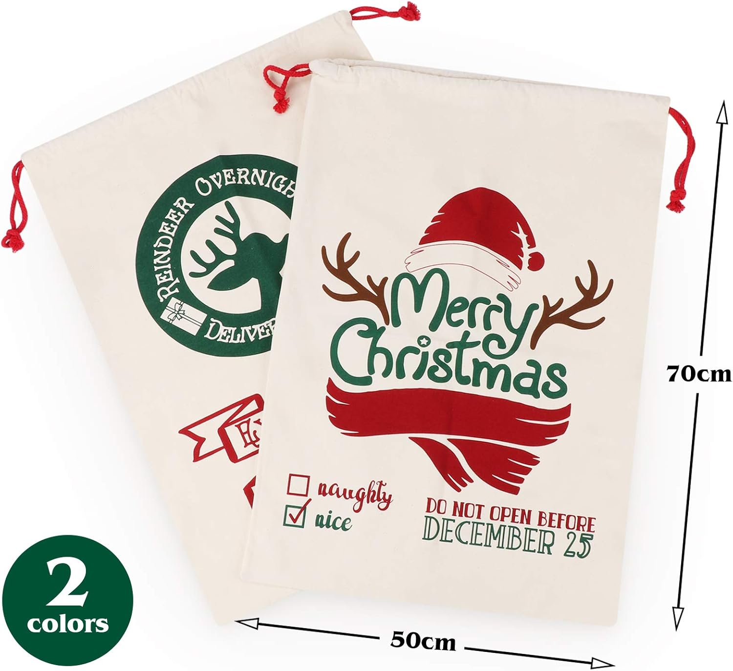 💖 Materiale: 100% cotone di alta qualità, morbido e confortevole. Dimensioni: 50 x 70 cm, tanto spazio per tanti regali. Può essere utilizzato per conservare regali di Natale, decorazioni natalizie, feste o alberi di Natale o come decorazioni in luoghi. 💖 Borsa regalo di Natale: nella confezione sono presenti 2 borse natalizie retrò. Modello colorato. Il design unico del tema natalizio lo rende molto popolare durante le festività natalizie e sicuramente porterà magia nella memoria personale di tuo figlio questo Natale. 💖 Forte coulisse: c'è una coulisse nella parte superiore e il regalo è nascosto all'interno per una facile apertura e chiusura. Puoi anche appendere facilmente decorazioni generose. Regala a tuo figlio un bellissimo pacco regalo pieno di piccole sorprese. 💖 Borsa in cotone con design natalizio: bellissimo motivo natalizio. La trama è molto confortevole. Aggiungi più atmosfera festosa alle tue vacanze. Molto adatto per conservare caramelle, gioielli, anelli, orecchini, regali, mele, biscotti, ecc. 💖Decorazione natalizia perfetta: puoi anche registrare il nome o le benedizioni di tuo figlio. I grandi sacchetti possono essere posizionati sul caminetto o attaccati allo zaino di Babbo Natale. La borsa è perfetta anche sotto l'albero di Natale. Quando un familiare o un amico riceve un pacco regalo così bello, quanto sarà felice.