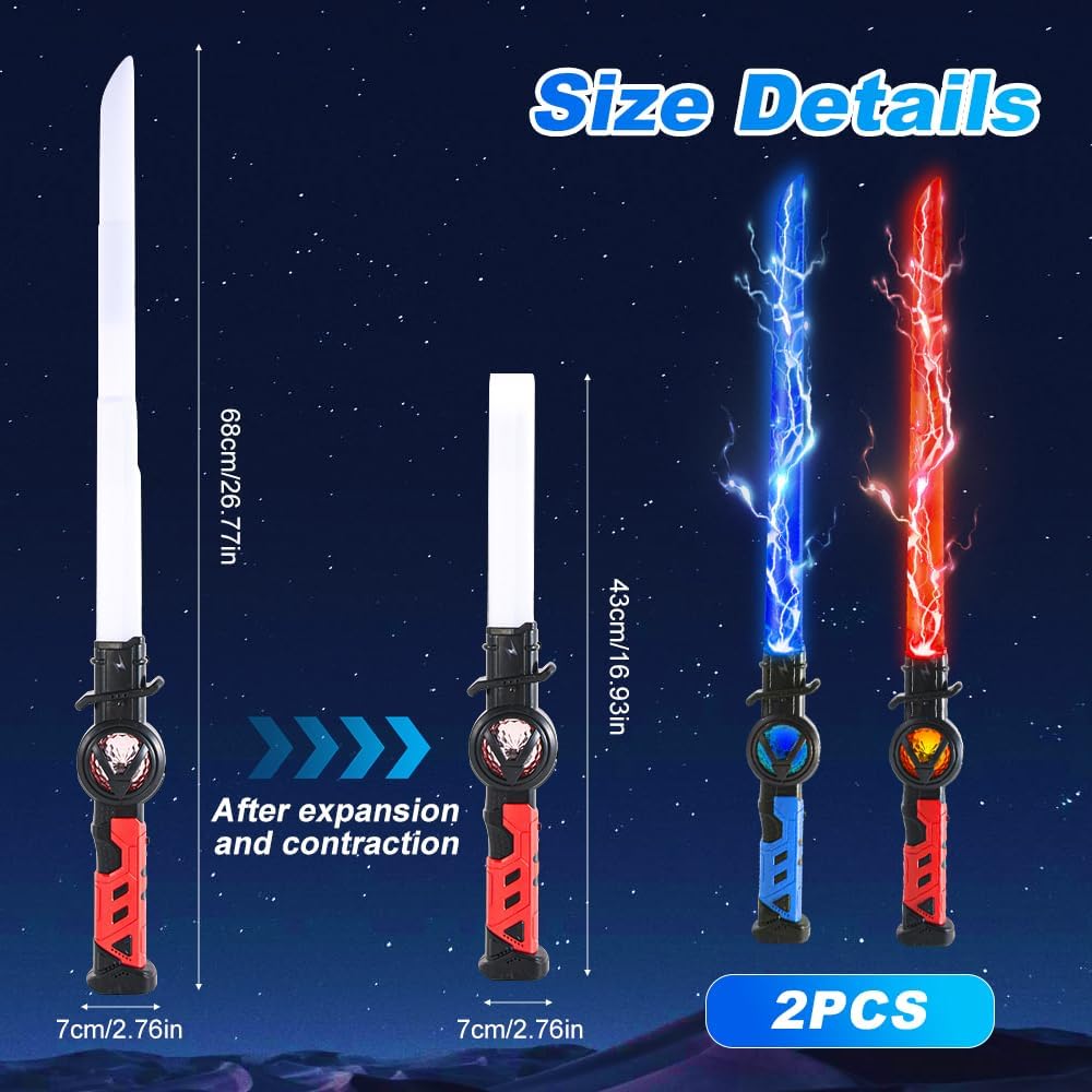 [Luci RGB colorate] La spada laser ricaricabile è dotata di 15 luci RGB regolabili. I bambini possono scegliere diversi colori secondo i loro desideri, il che aumenta il divertimento e il realismo del gioco di ruolo e rende ogni battaglia piena di varietà e sorprese. [Design retrattile 2 in 1] Il set contiene due spade laser RGB a 15 colori. Il Natale per bambini con spada laser ricaricabile presenta un design 2 in 1 che è facile da riporre e trasportare. La funzione di ritrazione consente ai bambini di simulare l'apertura e la ritrazione delle vere spade laser, migliorando l'esperienza di gioco e migliorando la sensazione. [Materiali sicuri e di alta qualità] La spada laser ricaricabile natalizia per bambini è realizzata in plastica ABS sicura e non tossica ed è quindi innocua. Gli angoli arrotondati aumentano la sicurezza. La maniglia è realizzata in lega di alluminio, resistente, sicura per i bambini e facile da usare. [Adatto a molte scene] Il giocattolo natalizio per bambini con spada laser a LED retrattile 2 in 1 è perfetto per giochi di ruolo, feste a tema samurai, balli in maschera di Halloween, regali di compleanno e festività. Puoi sentire il potere degli eroi nel gioco e incoraggiare la loro immaginazione e creatività. [Effetto luminoso realistico] La brillante sorgente luminosa a LED delle spade laser RGB a 15 colori, combinata con effetti di luce colorati, crea un'intensa scena di battaglia luminosa, migliorando il senso di interazione e migliorando l'esperienza di gioco coinvolgente. Quando fai oscillare la spada laser ricaricabile per bambini, si sente un suono emozionante che fa sentire i bambini come se fossero in un mondo di fantascienza.