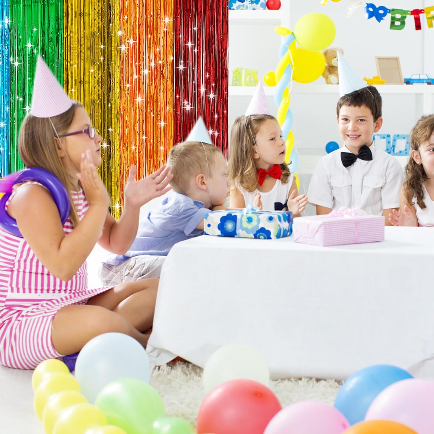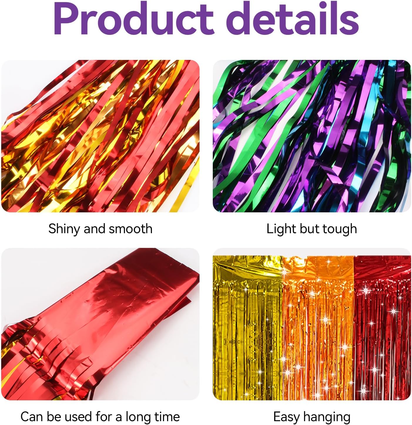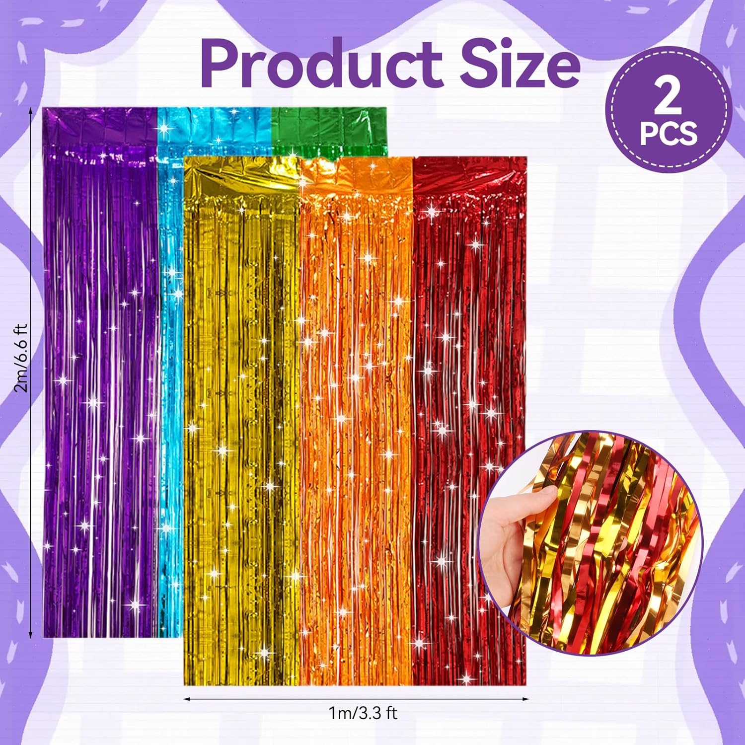 DESIGN INSOLITO A DUE COLORI: Ogni set contiene due tende glitterate in rosso-arancio-oro e verde-blu-viola. Ogni tenda con frange in lamina arcobaleno multicolore misura 1x2 metri e presenta colori vivaci che migliorano l'atmosfera della festa con un impatto visivo impressionante INSTALLAZIONE FACILE: la tenda luccicante può essere facilmente fissata a pareti, porte, finestre o tavoli con nastro adesivo per una rapida decorazione. La tenda con frange arcobaleno neon può essere facilmente tagliata e appesa a strati per migliorare l'effetto visivo. SICURA E DUREVOLE: la tenda con frange arcobaleno è priva di BPA e sostanze nocive e ha bordi lisci per proteggerla dai graffi. Leggera ma robusta, ogni tenda in orpello con glitter iridescenti può resistere a un uso frequente e offre un eccellente rapporto qualità-prezzo. EFFETTI DI RIFLESSIONE AFFASCINANTI: la tenda in tinsel rivestita in metallo a colori crea riflessi brillanti sotto l'illuminazione. Ideale come sfondo fotografico, la tenda in tinsel color arcobaleno si armonizza perfettamente con palloncini e striscioni per un'attrazione mozzafiato. USI VERSATILI: La versatile tenda in orpello colorato è ideale per compleanni, celebrazioni, palcoscenici e decorazioni nuziali. La tenda in tinsel arcobaleno si abbina particolarmente bene alle feste retrò anni '80 e agli eventi per adolescenti, creando un'esperienza visiva coinvolgente