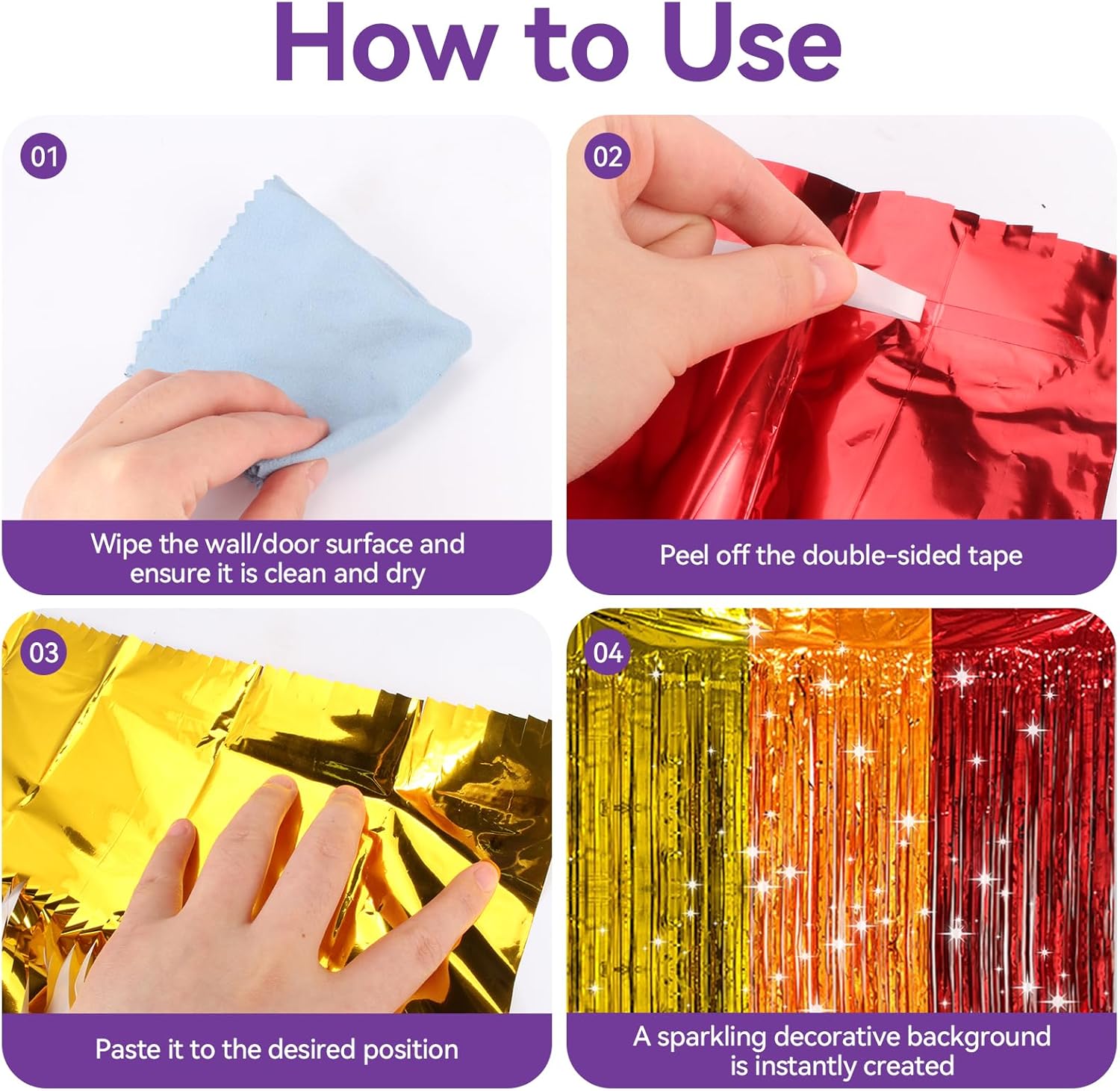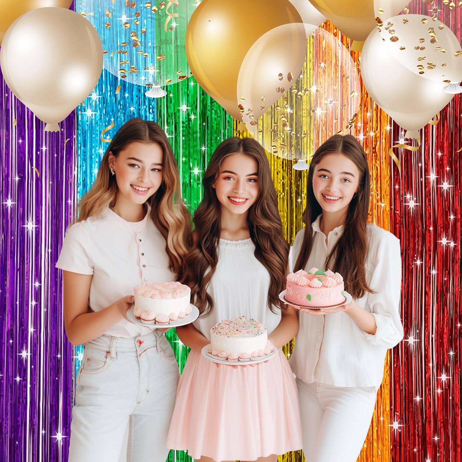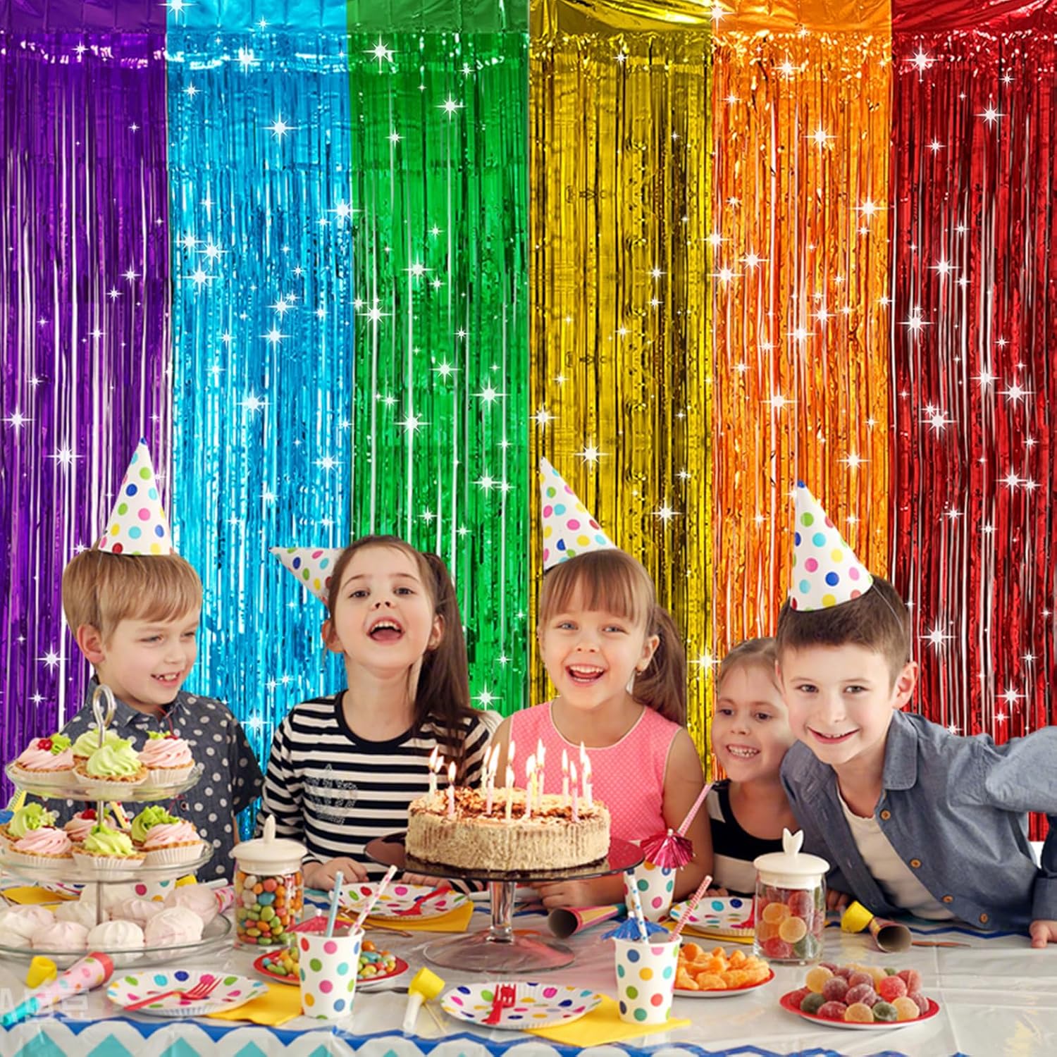 DESIGN INSOLITO A DUE COLORI: Ogni set contiene due tende glitterate in rosso-arancio-oro e verde-blu-viola. Ogni tenda con frange in lamina arcobaleno multicolore misura 1x2 metri e presenta colori vivaci che migliorano l'atmosfera della festa con un impatto visivo impressionante INSTALLAZIONE FACILE: la tenda luccicante può essere facilmente fissata a pareti, porte, finestre o tavoli con nastro adesivo per una rapida decorazione. La tenda con frange arcobaleno neon può essere facilmente tagliata e appesa a strati per migliorare l'effetto visivo. SICURA E DUREVOLE: la tenda con frange arcobaleno è priva di BPA e sostanze nocive e ha bordi lisci per proteggerla dai graffi. Leggera ma robusta, ogni tenda in orpello con glitter iridescenti può resistere a un uso frequente e offre un eccellente rapporto qualità-prezzo. EFFETTI DI RIFLESSIONE AFFASCINANTI: la tenda in tinsel rivestita in metallo a colori crea riflessi brillanti sotto l'illuminazione. Ideale come sfondo fotografico, la tenda in tinsel color arcobaleno si armonizza perfettamente con palloncini e striscioni per un'attrazione mozzafiato. USI VERSATILI: La versatile tenda in orpello colorato è ideale per compleanni, celebrazioni, palcoscenici e decorazioni nuziali. La tenda in tinsel arcobaleno si abbina particolarmente bene alle feste retrò anni '80 e agli eventi per adolescenti, creando un'esperienza visiva coinvolgente