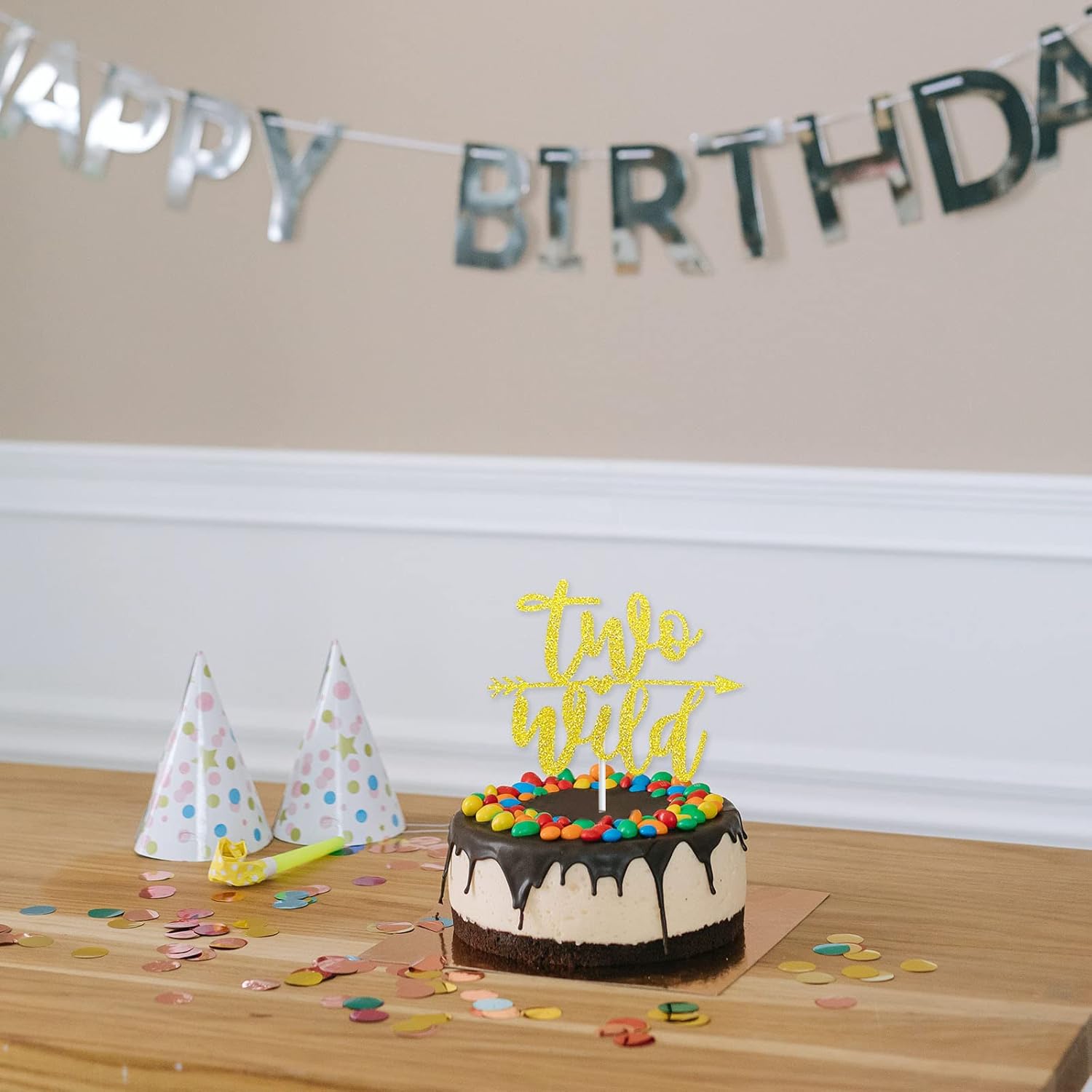 La dimensione del topper per torta selvatica è di circa 15 x 15 cm. Questa dimensione si adatta alla maggior parte delle torte e può essere inserita in sicurezza nella torta. Il cake topper è realizzato in cartone glitterato fronte-retro di alta qualità con carta per alimenti ed è durevole. Perfetto per feste Wild Two, feste di compleanno, eventi o come decorazione quotidiana in camera da letto, sala giochi, aula, ecc. Con la nostra simpatica decorazione per torta ti divertirai moltissimo alla festa di compleanno di tuo figlio. Incluso: un topper per torta glitterato a doppia faccia "Two Wild".