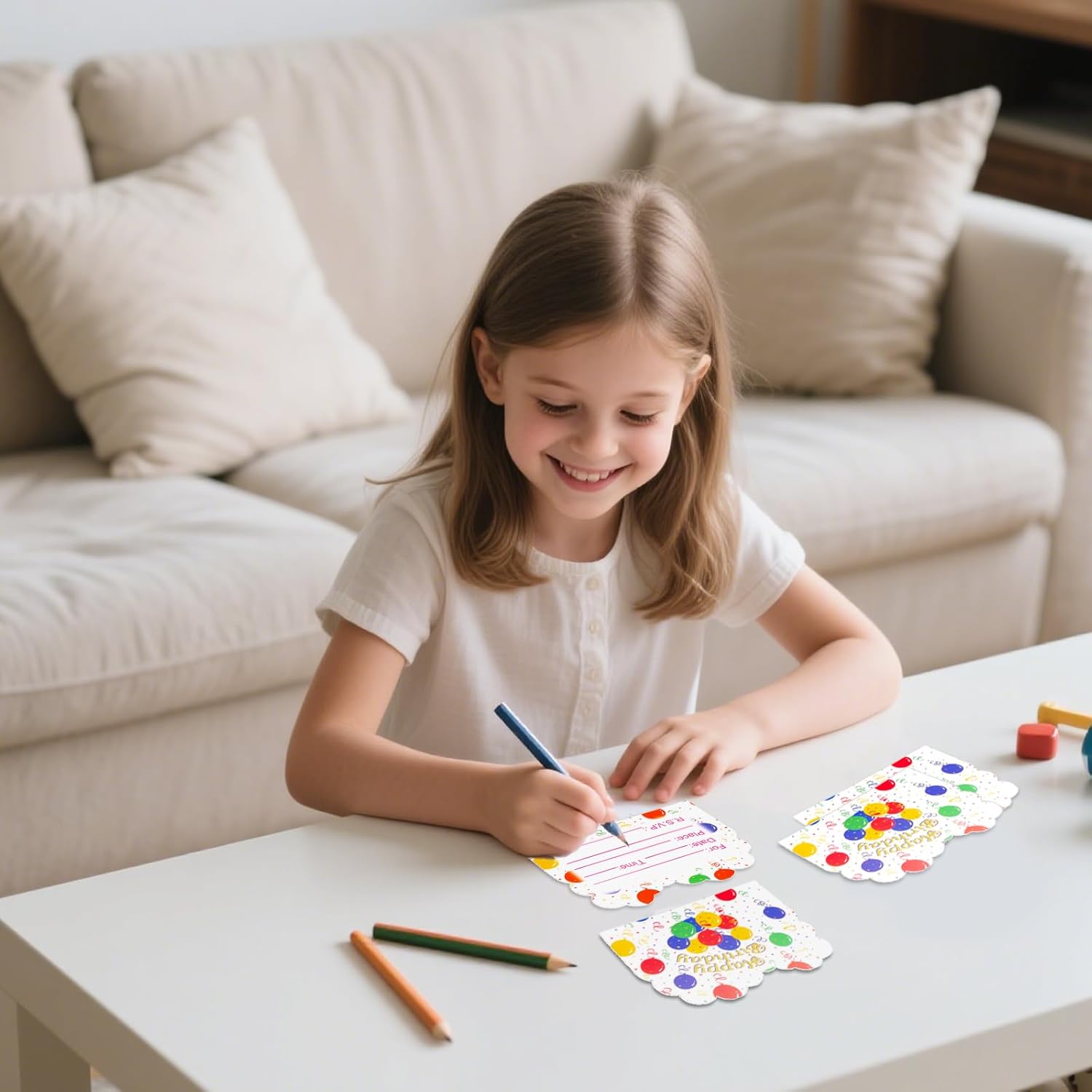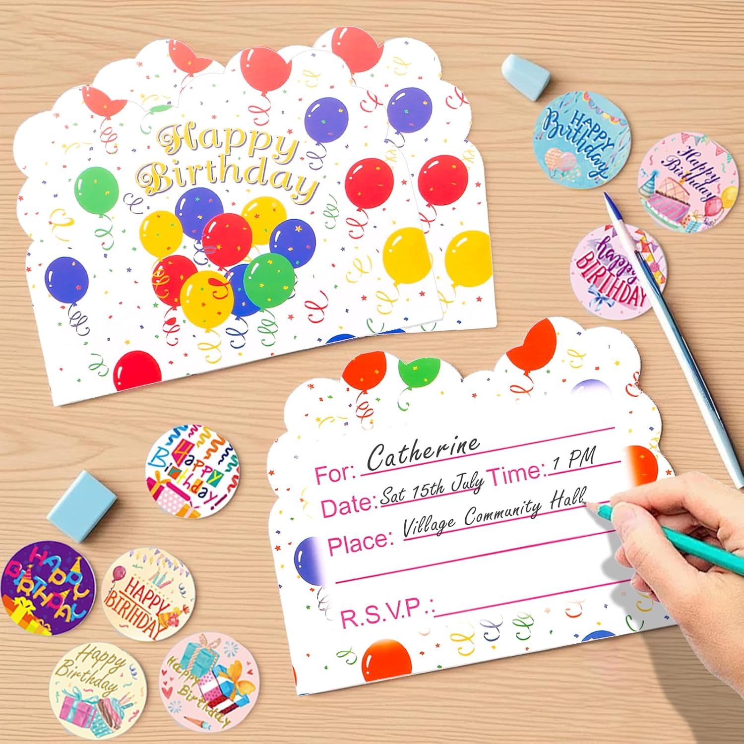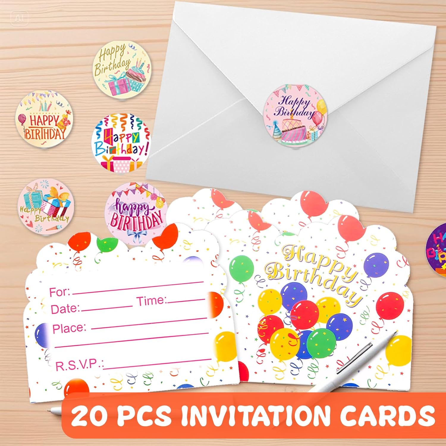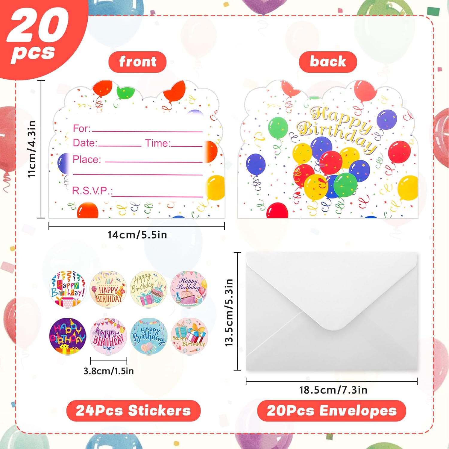 Design colorato: un invito a palloncino con coriandoli si adatta perfettamente alle feste a tema. I colori vivaci e il simpatico motivo esclusivo attirano bambini sia ragazze che ragazzi. Vai e invita i tuoi amici alla tua festa da sogno! Biglietto di invito di alta qualità: il biglietto stampato su entrambi i lati è realizzato in carta ecologica di alta qualità e il motivo è chiaro e vivace. Facile da scrivere con qualsiasi penna. Dimensioni adatte: confezione da 20 inviti per feste stampati su entrambi i lati (140 x 110 mm) con 20 buste (183 x 133 mm) e 24 adesivi (38 mm). Spazio sufficiente per scrivere i dettagli della festa, tra cui data, indirizzo e informazioni di risposta. Contenuto della confezione: la confezione contiene 20 biglietti di invito per feste a palloncino e 20 buste, insieme a 24 adesivi. Quantità sufficiente per invitare gli amici e organizzare una festa speciale. Molteplici occasioni: questo biglietto di invito può essere utilizzato in una varietà di occasioni come feste a tema, feste di compleanno, matrimoni, feste di scambio di regali, feste di laurea, feste a sorpresa ed eventi festivi.