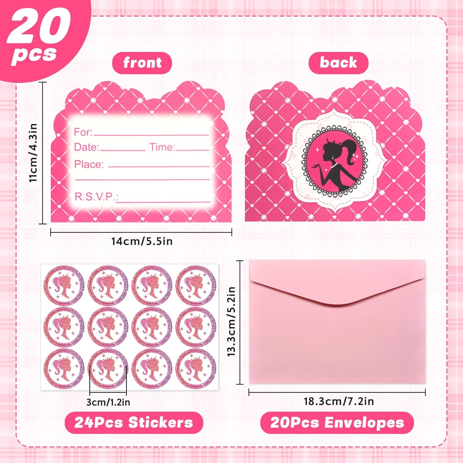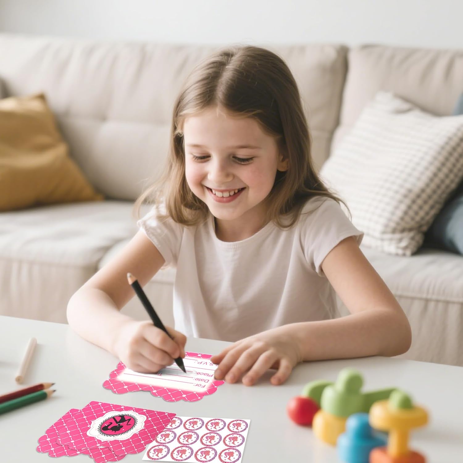 Design principessa per bambini: un invito per feste a tema principessa si adatta perfettamente alle feste a tema. I colori vivaci e il simpatico motivo esclusivo attirano bambini e ragazze. Vai e invita i tuoi amici alla tua festa da sogno! Biglietto di invito di alta qualità: il biglietto stampato su entrambi i lati è realizzato in carta ecologica di alta qualità e il motivo è chiaro e vivace. Facile da scrivere con qualsiasi penna. Inviti di dimensioni adatte: confezione da 20 inviti per feste stampati su entrambi i lati (140 x 110 mm) con 20 buste rosa (183 x 133 mm) e 24 adesivi (30 mm). Spazio sufficiente per scrivere i dettagli della festa, tra cui data, indirizzo e informazioni di risposta. Contenuto della confezione: la confezione contiene 20 biglietti di invito per feste a tema principessa e 20 buste, insieme a 24 adesivi principessa. Quantità sufficiente per invitare gli amici e organizzare una festa speciale. Molteplici occasioni: questo biglietto di invito può essere utilizzato in una varietà di occasioni come feste a tema, feste di compleanno, matrimoni, feste di scambio di regali, feste di laurea, feste a sorpresa ed eventi festivi.