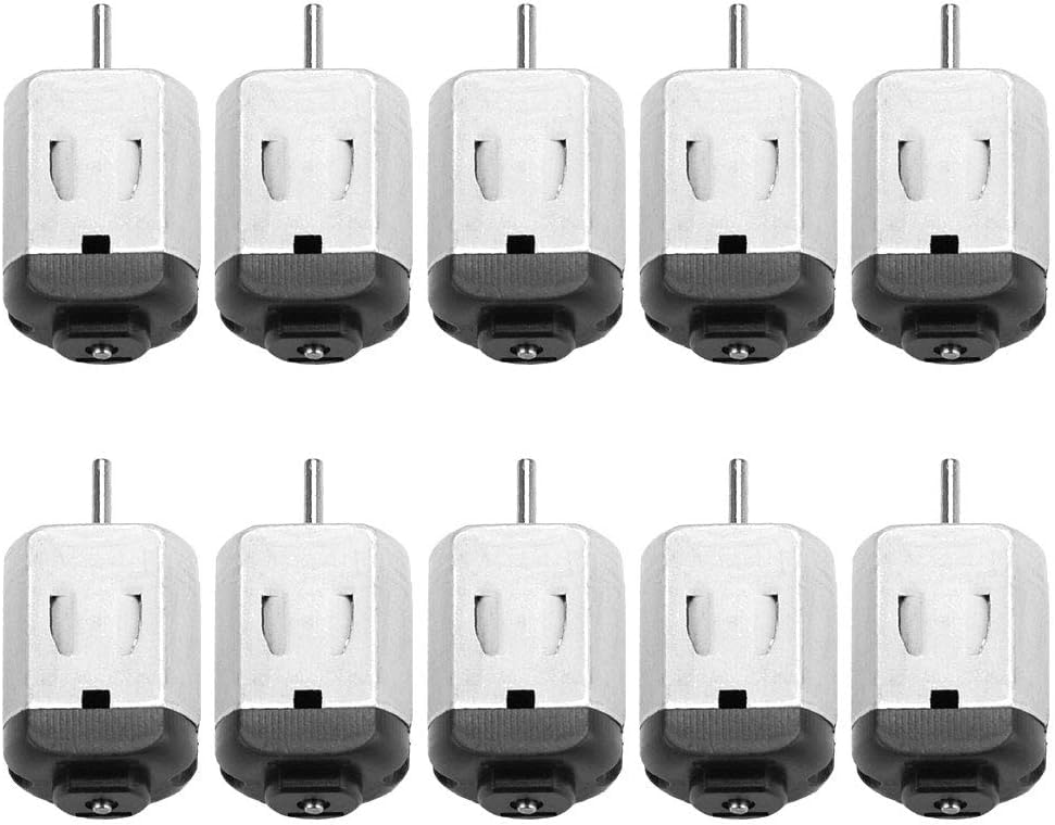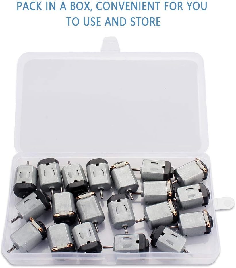 Potenza del giocattolo telecomandato: utilizza il motore micro DC per sostituire i vecchi motori nei giocattoli telecomandati. Riempi i tuoi giocattoli di energia. Invece di spendere più soldi per comprare un altro giocattolo. Mini motore elettrico con ampia applicazione: con il piccolo motore puoi realizzare giocattoli fai-da-te, automobili telecomandate, piccoli ventilatori ed esperimenti scientifici. Ha molti usi. Parametri del motore CC: la tensione nominale è 3 V. Velocità: 15000. Lunghezza 2,5 cm, diametro 2 cm, diametro asta 0,2 cm, lunghezza asta 0,9 cm. Alta qualità: i piccoli motori sono realizzati in rame e ferro di alta qualità. Robusto e durevole, lunga durata. alta efficienza lavorativa. Rapporto qualità-prezzo: puoi ottenere 20 pezzi di mini motori. Puoi sostituire il motore rotto o assemblare un nuovo giocattolo elettrico. La quantità è sufficiente per l'uso quotidiano.