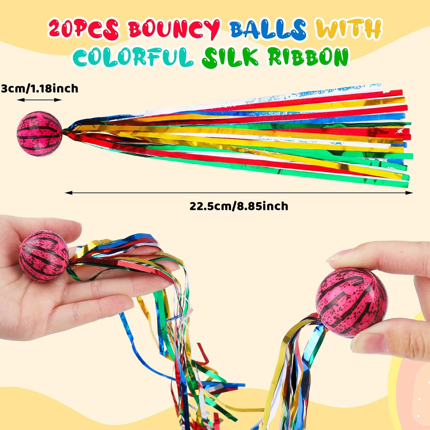【Contenuto della confezione】 Riceverai 20 palline rimbalzanti con motivi e colori casuali, la quantità è sufficiente per soddisfare le tue esigenze e potrai anche condividerle con la tua famiglia o i tuoi amici. 【Materiali di alta qualità】 Le palline di gomma per bambini sono realizzate in gomma dura di alta qualità, ecologica, sicura e non tossica. I bambini possono giocare con sicurezza. 【Palle cometa】 Queste palline rimbalzanti per bambini hanno stelle filanti colorate attaccate. Fai loro un bel rimbalzo e guardali mentre si sollevano in aria con una traiettoria simile a una cometa per catturare l'immaginazione dei bambini e attirare la loro attenzione. 【Regali interessanti】 Le palline colorate di cometa con coda possono essere usate come regalo per i bambini il giorno dei bambini o il compleanno dei bambini e possono anche essere usate come articoli per feste, che sono molto apprezzati dai bambini. 【Servizio clienti】 Il nostro obiettivo è fornirti prodotti di alta qualità e un servizio personalizzato. Se hai domande o dubbi, ti risponderemo il prima possibile.