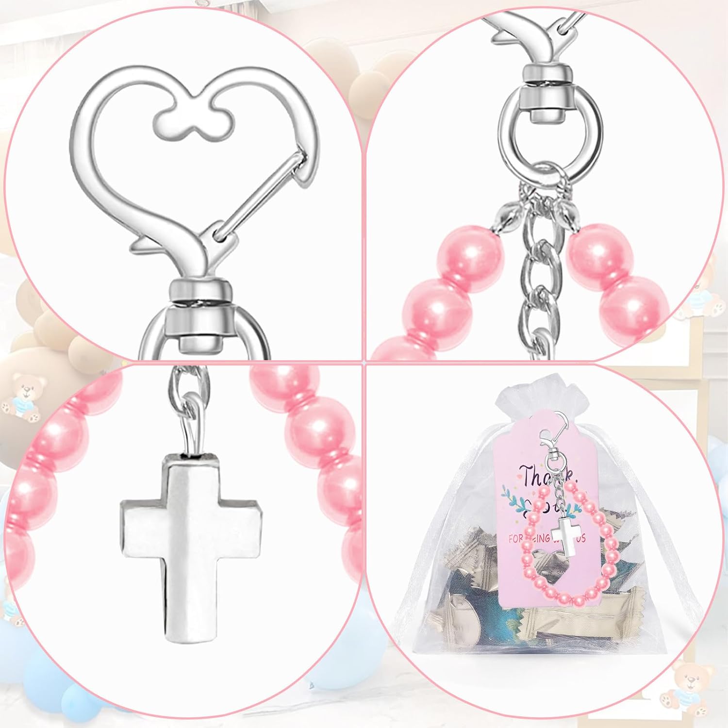 Ideali per organizzatori di eventi, organizzatori di feste e persone che cercano regali significativi, questi regali per battesimi incontrano coloro che apprezzano i gesti simbolici Con il suo design delicato e i materiali robusti, questo set di bomboniere non solo simboleggia fede e benedizione, ma funge anche da prezioso accessorio per i tuoi ospiti Ogni set di bomboniere è meticolosamente realizzato, tra cui croci perline e biglietti personalizzati, tutti elegantemente confezionati in sacchetti di organza per una presentazione lussuosa Migliora il tuo evento con il nostro set di 20 regali con perline a forma di croci, presenta un bellissimo ciondolo a croce e una catena di perline, per aggiungere un tocco di eleganza a qualsiasi celebrazione religiosa Per baby shower, battesimi, prime comunioni e altre cerimonie religiose, questi regali offrono un ottimo modo per ringraziare gli ospiti e commemorare eventi speciali