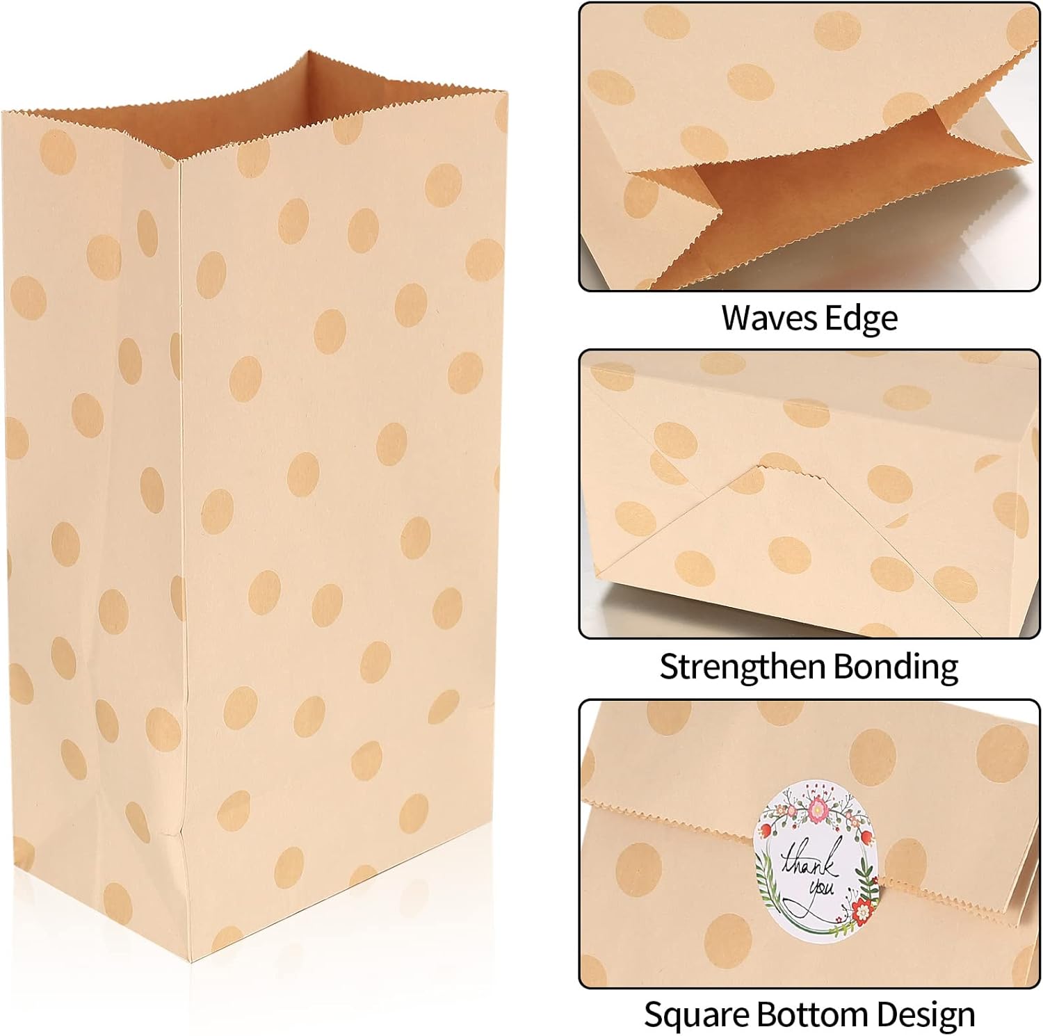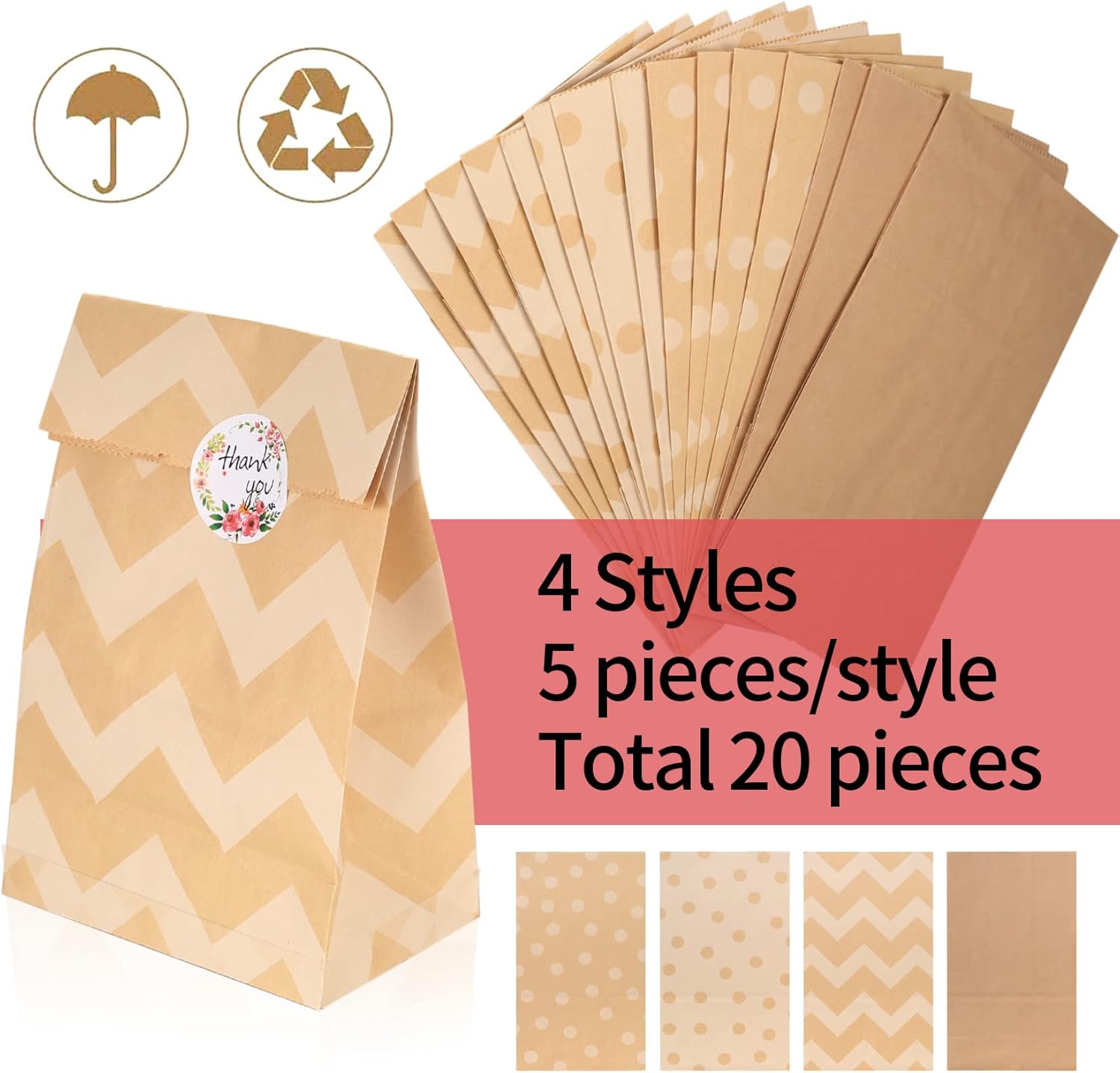 【Quantità e dimensioni】: 20 sacchetti di carta Kraft in 4 stili (5 pezzi per stile) e 24 adesivi; La dimensione dei sacchetti regalo è di 13 x 8 x 24 cm e il diametro dell'adesivo è di 3,8 cm. 【Materiale di qualità】 I nostri sacchetti di carta marrone sono realizzati in carta kraft di alta qualità, leggera ma resistente, riutilizzabile ed ecologica e può essere utilizzata con sicurezza. 【Design con fondo quadrato】: il fondo dei sacchetti di carta marrone è quadrato, può essere piegato liberamente, è facile da posizionare e offre una capacità maggiore, adatta all'uso. 【Sacchetti di carta multiuso】: I nostri sacchetti di carta sono atossici e inodore e sono ideali per conservare alimenti come mais, grano, riso, sorgo, tabacco, girasole e altri. 【Scene ampiamente applicative】: ideale per confezionare regali per compleanni, matrimoni e gli adesivi di ringraziamento rendono il tuo regalo più significativo. Ampiamente usato a Natale, Pasqua, Ringraziamento, Capodanno, ecc.