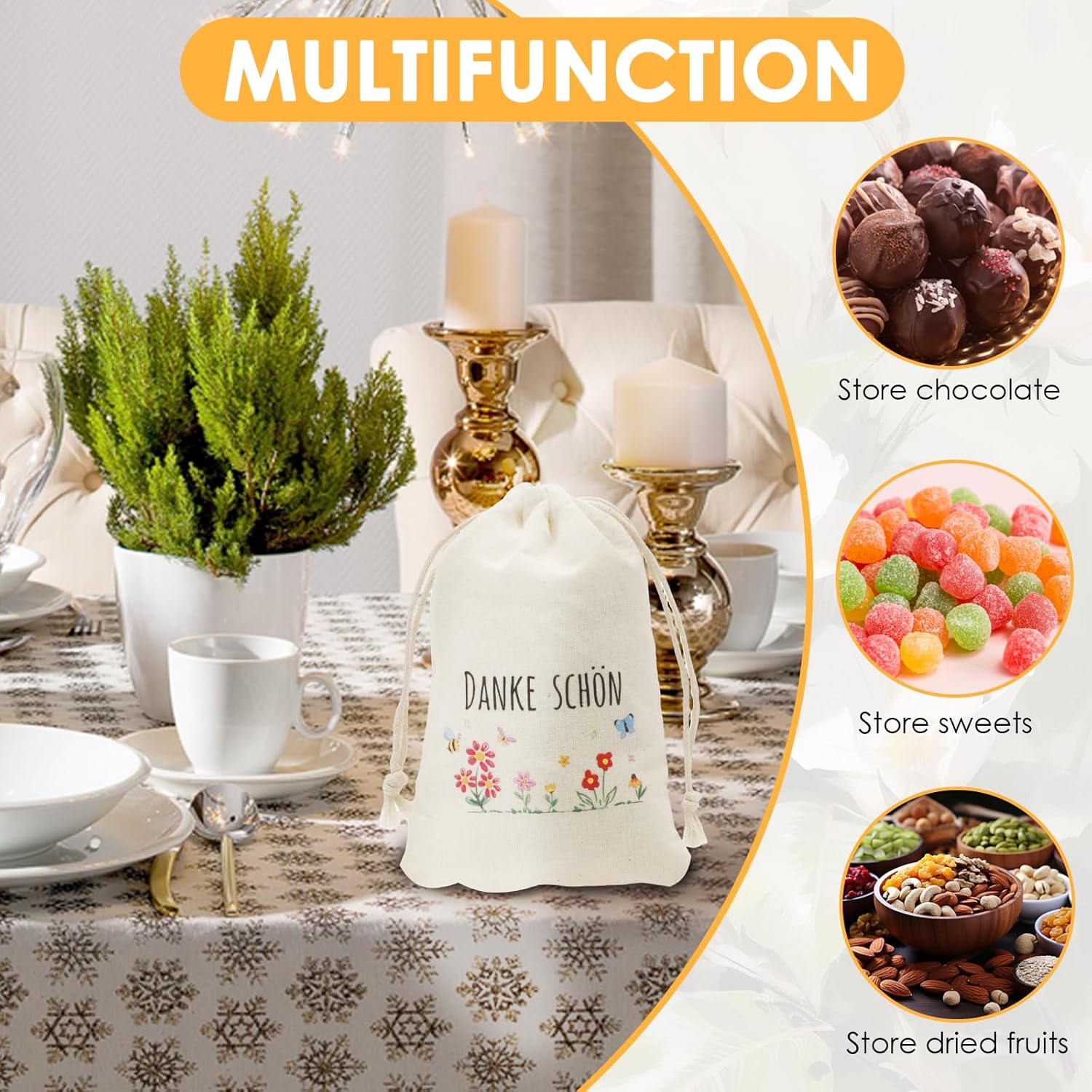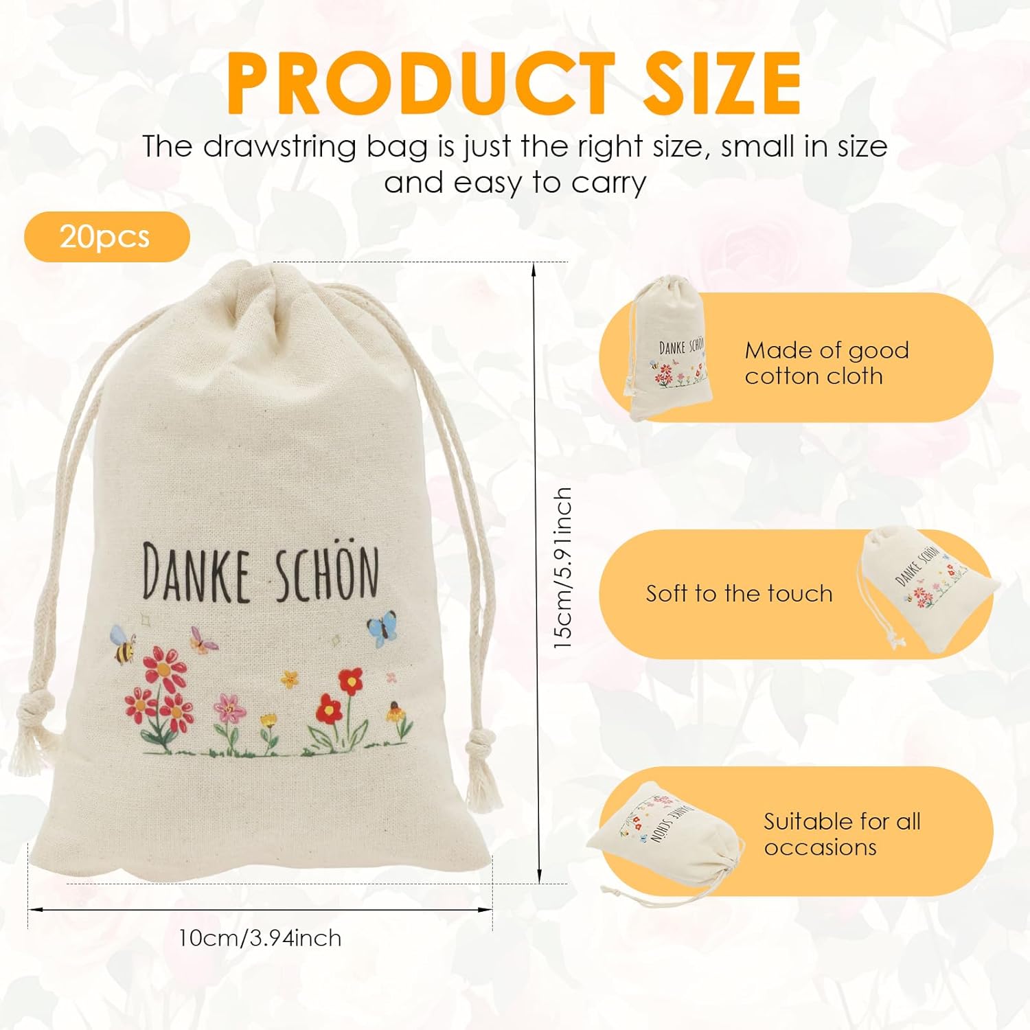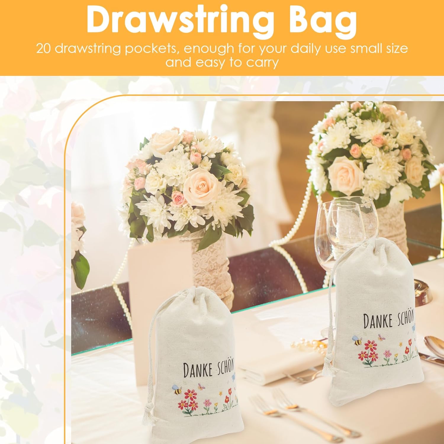 Tessuto di alta qualità: questa borsa regalo è realizzata in tessuto di alta qualità, morbido e resistente. Resistente e riutilizzabile, ideale per riporre e proteggere piccoli oggetti. Contenuto della confezione: riceverete 20 sacchetti in tessuto con chiusura a cordoncino – sufficienti per l'uso quotidiano. La dimensione delle bomboniere da battesimo è di 10 x 15 cm, che soddisfa le esigenze di conservazione della maggior parte degli oggetti di piccole dimensioni senza essere troppo grandi e ingombranti. Deco in stile floreale: ogni sacchetto regalo in cotone è accuratamente stampato con la scritta "È bello che tu sia qui", con motivi floreali che trasmettono uno stile pastorale europeo caldo e romantico. Regalo per gli ospiti: queste borse in tessuto sono perfette per matrimoni, battesimi, cresime, compleanni e altre celebrazioni. Possono essere riempiti con semi di fiori, caramelle o piccoli regali così che ogni invitato possa portare con sé un bellissimo ricordo. Multiuso: questo sacchetto regalo può essere utilizzato come sacchetto regalo, sacchetto di caramelle, sacchetto di incenso, sacchetto di frutta secca, sacchetto di gioielli, ecc. Puoi riporre tutte le piccole cose di cui hai bisogno.