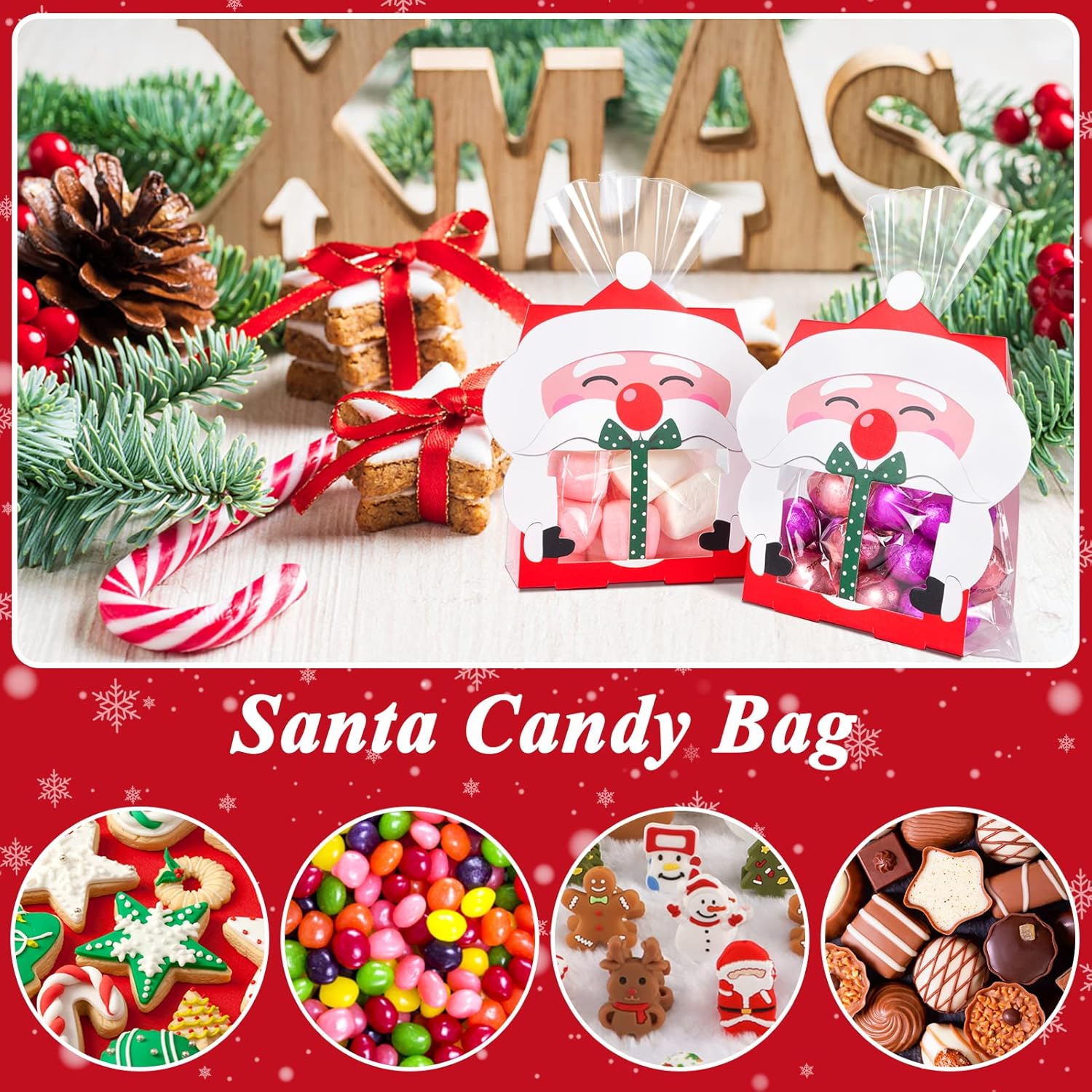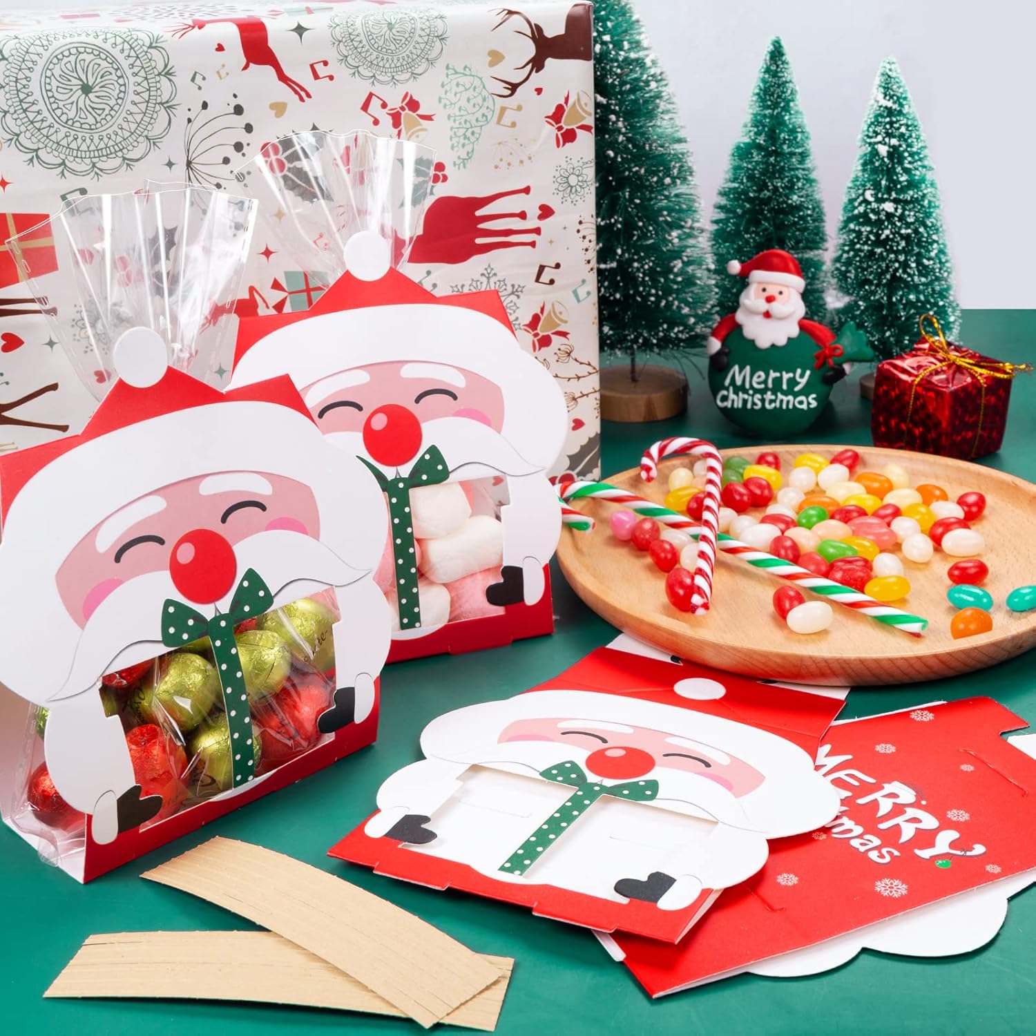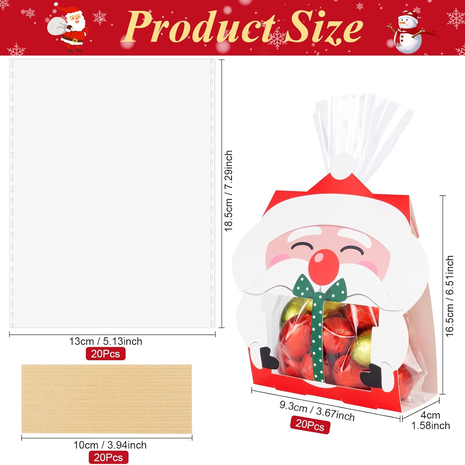 🎁【Cofanetto di Natale】Il set contiene 20 sacchetti regalo di carta, 20 sacchetti di cellophane e 20 pezzi di twist. Hanno la classica forma di Babbo Natale e sono la scelta perfetta per le feste di Natale. 🎅【Materiale sicuro】I nostri sacchetti regalo di Natale sono realizzati in carta per alimenti e plastica OPP, sono atossici e inodore, ecologici e riutilizzabili. Design robusto che manterrà intatti i tuoi prodotti da forno in modo sicuro. 🎅【Dimensione Ideale】Le dimensioni di ogni confezione regalo di Natale sono 16,5 x 9,3 cm / 6,51 x 3,67 pollici e le buste trasparenti trasparenti sono 18,5 x 13 cm / 7,29 x 5,13 pollici. Puoi contenere dolci, dolcetti, cioccolatini e biscotti di diverse dimensioni. 🎅 【Facile da montare】 Basta piegare queste scatole lungo la piega e quindi inserire i sacchetti di biscotti natalizi nella tacca corrispondente utilizzando i lacci. Mantieni il cibo fresco e non cade facilmente. ✨【Ampiamente usato】Questi sacchetti di caramelle natalizie sono adatti per confezionare caramelle fai-da-te, cupcakes con biscotti e piccoli regali. Le scatole natalizie sono ideali per feste di Natale, negozi al dettaglio, decorazioni per feste scolastiche, feste di compleanno, ecc.