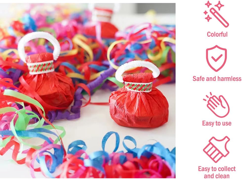 🎉 Materiale: le bombe streamer da lancio realizzate in carta di alta qualità, sono colorate, compatte e portatili, possono essere messe in borsa in anticipo, attendere fino al momento della celebrazione per estrarle per usarle, molto conveniente. 🎉 Facile da usare: gli streamer da lancio sono facili da usare, devi solo allungare le dita attraverso la maniglia, quindi aprire la carta di supporto della bomba streamer da lancio, che può creare un bellissimo e sorprendente effetto dal vivo. 🎉 Facile da pulire: le bombe streamer da lancio sono collegate e non sono sparse ovunque. Dopo l'uso, può essere pulito rapidamente, tenendoti lontano dai problemi di pulizia e risparmiando tempo. 🎉 Ampiamente usato: i nostri streamer da lancio possono essere utilizzati in feste, matrimoni, compleanni, lauree, carnevali, anniversari e altre occasioni. 🎉 Bomba streamer: riceverai 20 pezzi di bombe streamer da lancio, ciascuno degli streamer da lanciare è composto da 30 nastri di carta colorata lunghi 5 m. I colori colorati possono creare un'atmosfera di festa attiva.