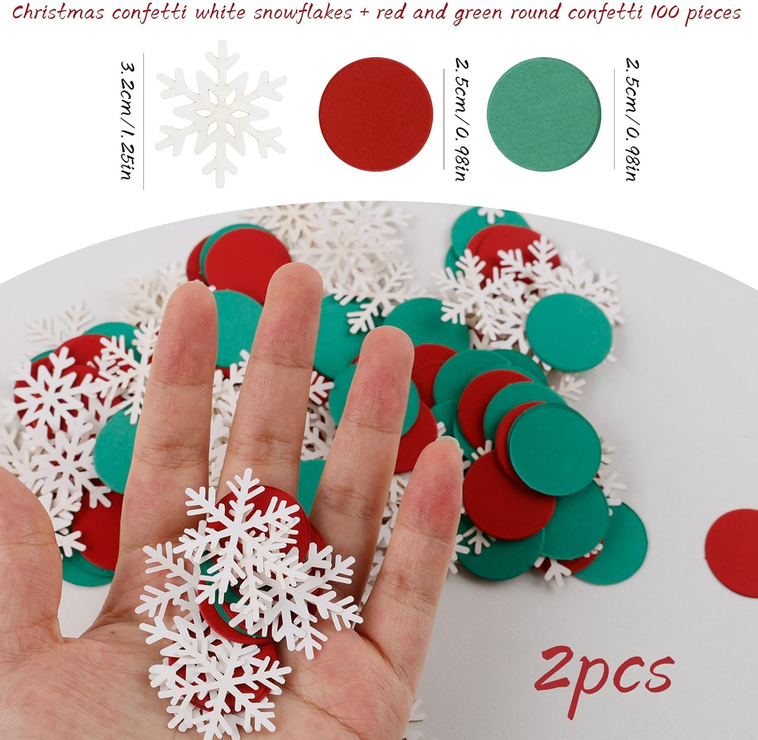 Set decorazione coriandoli sparsi: coriandoli rosso verde Contiene 200 pezzi di coriandoli natalizi. Contiene 2 confezioni di coriandoli natalizi, da 100 pezzi ciascuna. Fiocchi di neve bianchi + pezzi di carta rotondi rossi e verdi. Coriandoli decorativi per feste al neon confezionati in sacchetti sigillati per riporli facilmente. Materiale robusto: decorazioni natalizie in carta resistente e di alta qualità. I coriandoli dei fiocchi di neve di Natale possono applicare questi coriandoli per decorare qualsiasi luogo, ad esempio stenderli sul pavimento, sul tavolo, sul letto o metterli nei palloncini. Dimensioni versatili: l'altezza delle decorazioni natalizie dei coriandoli varia da 0,69 cm a 2,54 cm e la larghezza da 0,69 cm a 4,19 cm. I fiocchi di neve hanno un diametro di 6,35 cm. Utilizzo universale: coriandoli natalizi colorati. Decora con i tavolini per coriandoli e le scatole regalo, decorazioni di compleanno, decorazioni di nozze, forniture natalizie o usalo per realizzare cartoline e ornamenti di Natale. coriandoli matrimonio Ideale per qualsiasi lavoro artigianale! Design natalizio: realizza decorazioni natalizie sparse. Con i colori natalizi come fiocchi di neve bianchi, coriandoli rossi e verdi, questa decorazione è il modo perfetto per decorare la tua tavola di Natale. I vivaci colori natalizi creano un'atmosfera festosa. La decorazione perfetta per creare lo spirito natalizio.