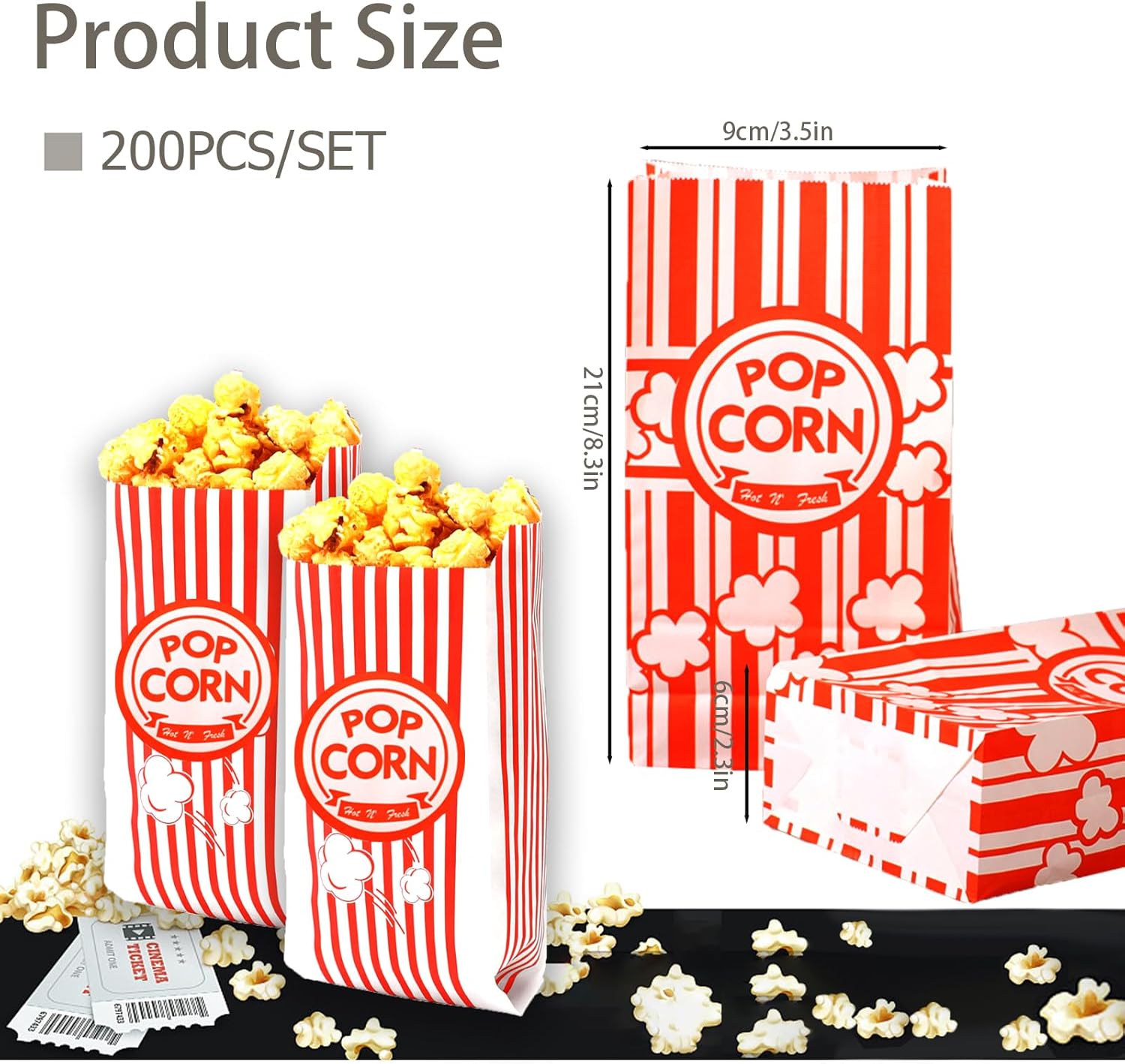 Materiale di alta qualità: i sacchetti per popcorn sono realizzati in carta di alta qualità e sono leggeri. I sacchetti di popcorn hanno anche un rivestimento resistente all'olio, il materiale è spesso e l'olio non penetra facilmente; I sacchetti per popcorn in carta kraft non contengono additivi fluorescenti e sono innocui per il corpo umano. Posizionamento stabile: i bordi dei sacchetti di popcorn sono arricciati per evitare graffi; Il fondo della scatola per popcorn è quadrato, progettato per essere posizionato stabilmente su qualsiasi tavolo e consentire un facile accesso. Dimensioni perfette: le scatole di popcorn sono larghe 9 cm e alte 21 cm. 200 pezzi sono abbastanza grandi da contenere una varietà di popcorn, dolci, noci, pasticcini e snack vari per soddisfare le diverse esigenze. Modello classico: i sacchetti di popcorn a strisce rosse e bianche hanno un classico design a strisce rosse e bianche con un aspetto alla moda ed elegante che mostra il tuo gusto e la tua personalità unici e puoi aggiungere un senso della moda alle attività della festa. VARIE APPLICAZIONI: Sacchetti per popcorn in carta kraft. Oltre ai popcorn, nel sacchetto dei popcorn possono essere inseriti anche dolci, cioccolata, biscotti, crocchette di pollo e patatine fritte o altri snack. Che si tratti di un picnic all'aperto, di una festa o di un film, questi sacchetti di popcorn possono soddisfare le tue esigenze e diventare un must-have essenziale.