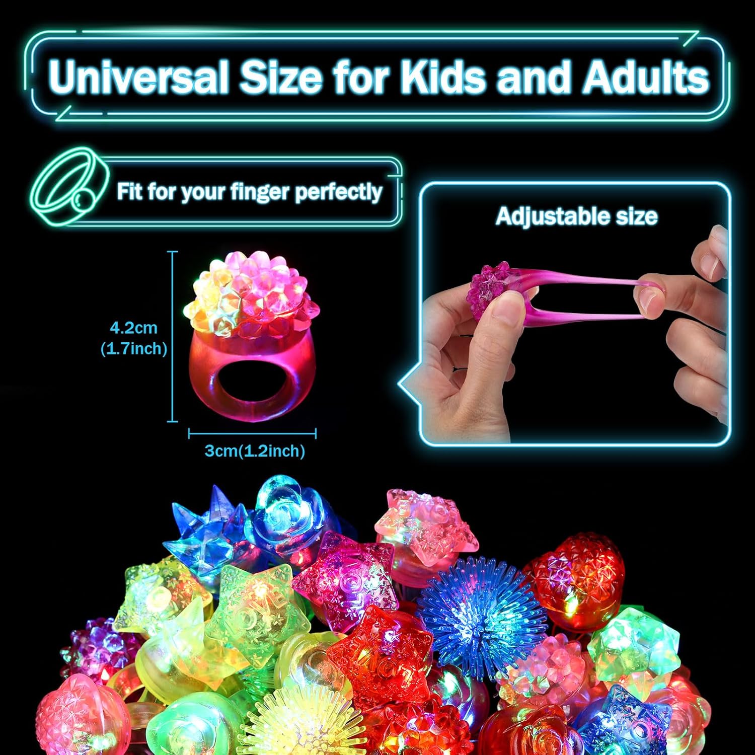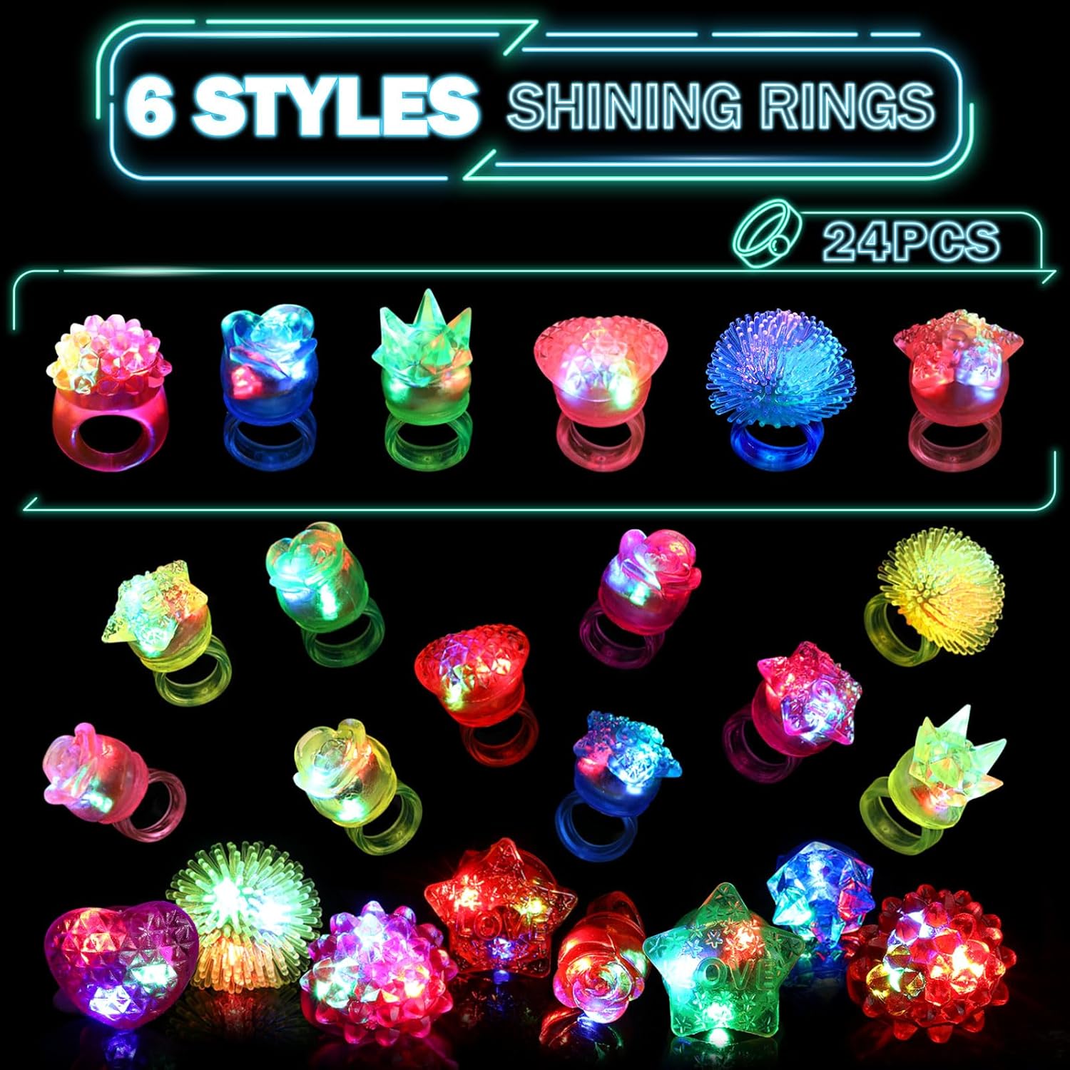Confezione da 24 anelli lampeggianti per ragazze, anelli luminosi colorati, anello luminoso a LED, giocattolo per dita, anelli in gomma a LED, decorazione per feste