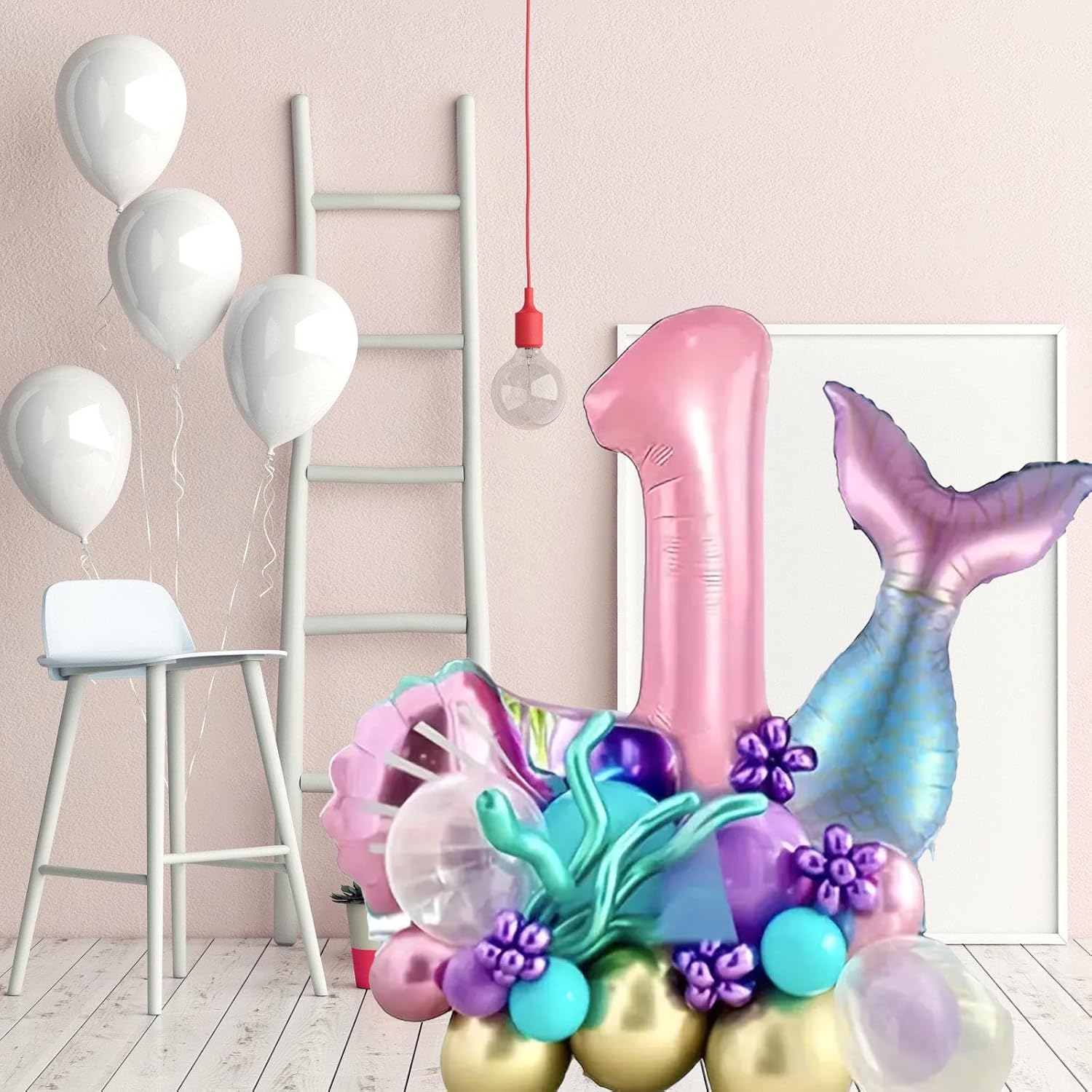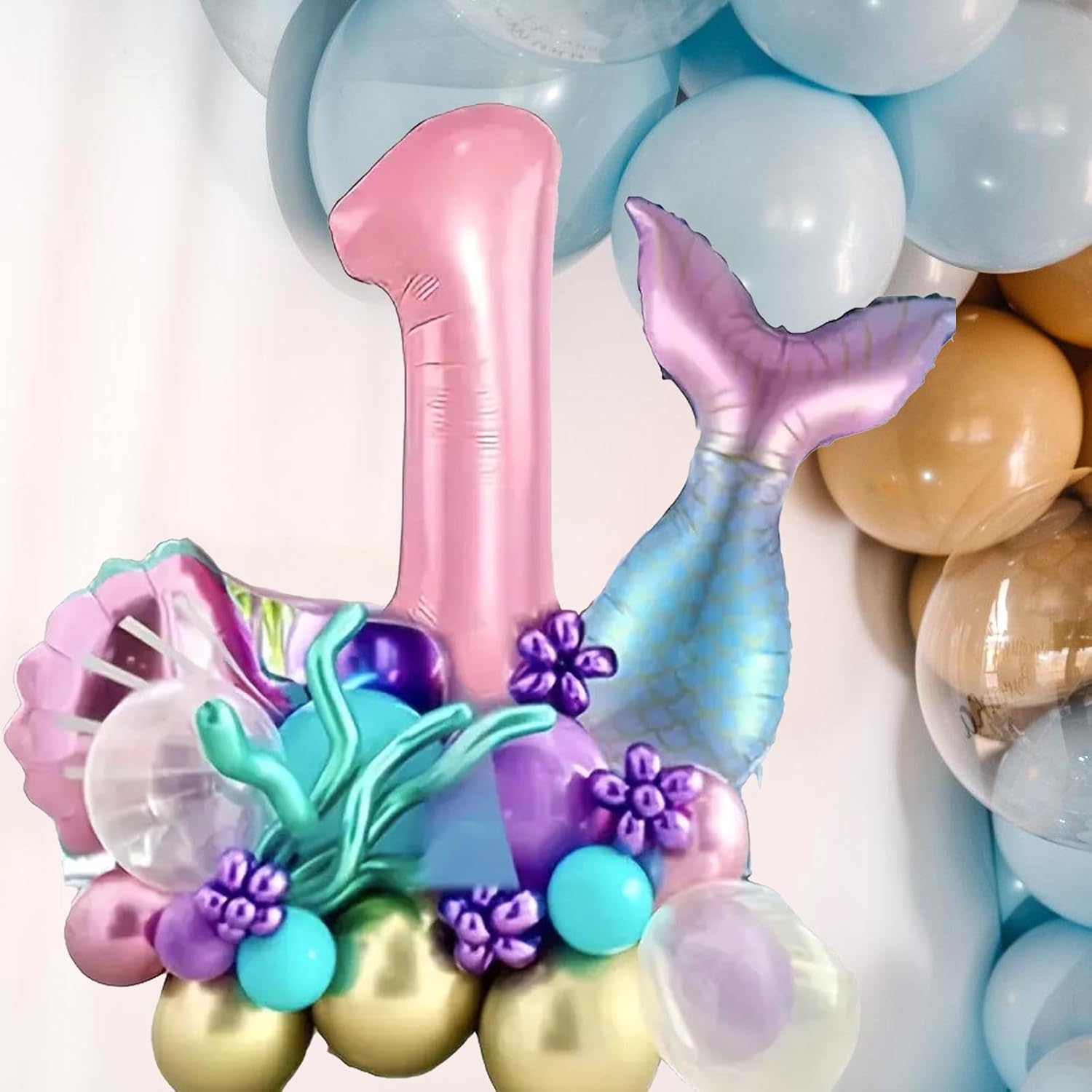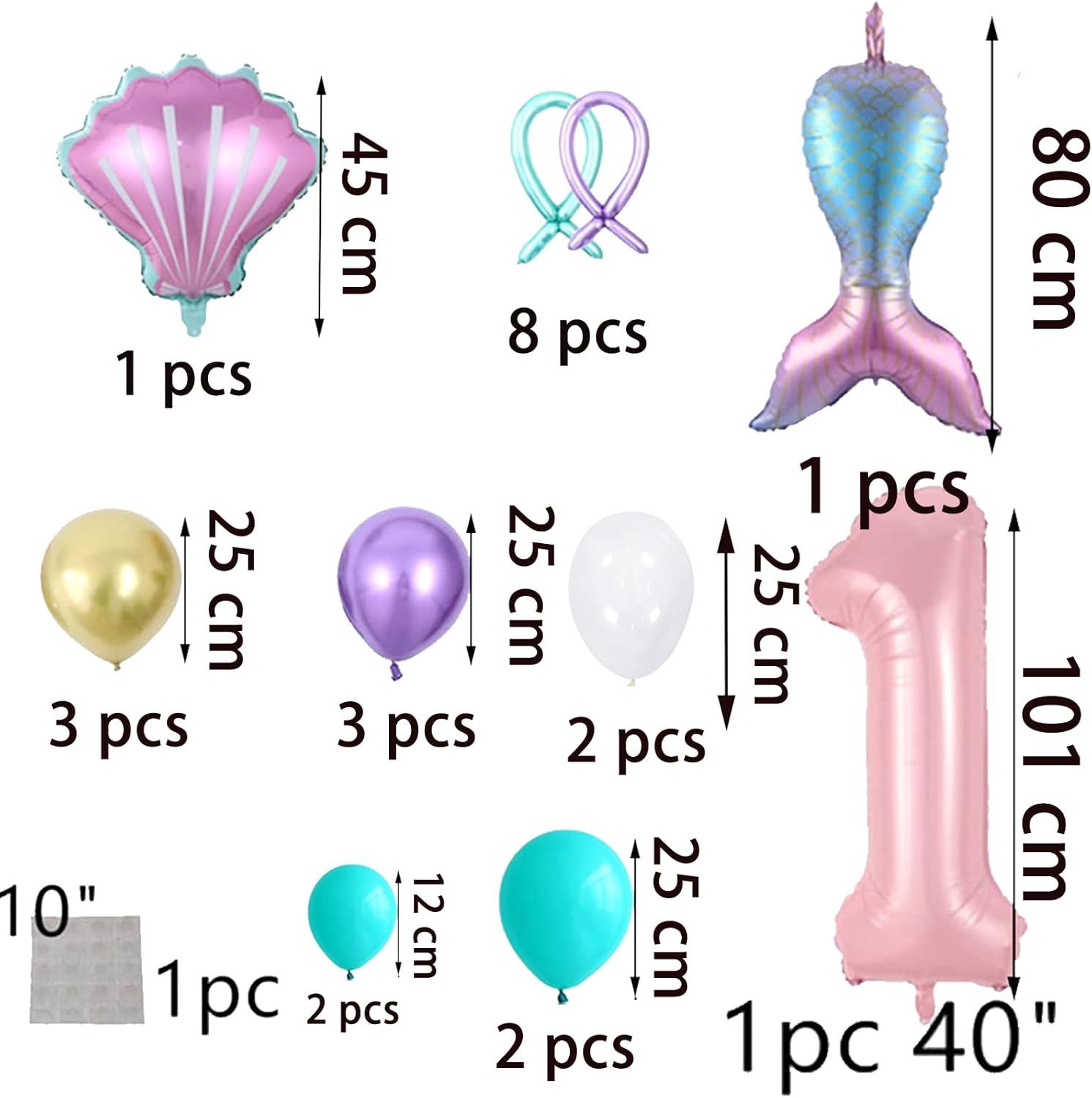 Kit completo di decorazioni per sirene (24 pezzi): il nostro kit contiene un bellissimo mix di palloncini con sirene marine, palloncini in foil, palloncini con conchiglie, palloncini in lattice ed elementi decorativi lucidi. Perfetto come decorazione di compleanno a forma di sirena per le piccole principesse che festeggiano il loro primo compleanno. Con questa decorazione di compleanno a forma di sirena marina trasformerai ogni stanza in un magico mondo sottomarino che farà brillare gli occhi dei bambini e garantirà momenti indimenticabili. Magico mondo sottomarino per il 1° compleanno: questi palloncini a forma di sirena combinano colori pastello colorati, glitter e graziosi disegni a sirena, perfetti come decorazione di compleanno per una bambina di 1 anno. Il grande palloncino di 1 anno in combinazione con conchiglie, fiori ed elementi marini attira davvero l'attenzione. La combinazione di palloncini a forma di sirena rende ogni decorazione di compleanno di Arielle particolarmente festosa e crea una magica atmosfera di compleanno. Materiali di alta qualità - durevoli e sicuri: il mix di robusti palloncini in lattice e palloncini in pellicola lucida rende questo set particolarmente stabile e versatile. Il palloncino compleanno grande (palloncino foil 1) è facile da gonfiare, resistente e non passerà inosservato. Tutti i palloncini di compleanno sono realizzati con materiali di alta qualità per garantire che la decorazione della tua sirena sia bella e sicura per i bambini. Sfondo fotografico perfetto e decorazione da tavolo: con il palloncino grande 1, le conchiglie e il palloncino con la sirena del mare, questo set è ideale come decorazione per le foto, la barretta di cioccolato o il tavolo del compleanno. Che si tratti di un palloncino per il 1° compleanno o di una decorazione di compleanno a forma di sirena, questa decorazione renderà la vostra festa indimenticabile. Anche come sorpresa per i piccoli fan di Ariel, questo set è una scelta meravigliosa per una decorazione di compleanno di 1 anno. Utilizzo versatile e facile da combinare: questo set da 24 pezzi non è solo una decorazione a forma di sirena, ma anche un'ottima base per altre idee per le feste. Il grande palloncino a forma di sirena in foil si adatta perfettamente a qualsiasi decorazione di compleanno di Arielle. Che si tratti del compleanno di un bambino, di una festa per ragazze o di un tema del mondo sottomarino, con questo set di 1 palloncini creerete un'esperienza di festa unica che sarà ricordata a lungo.