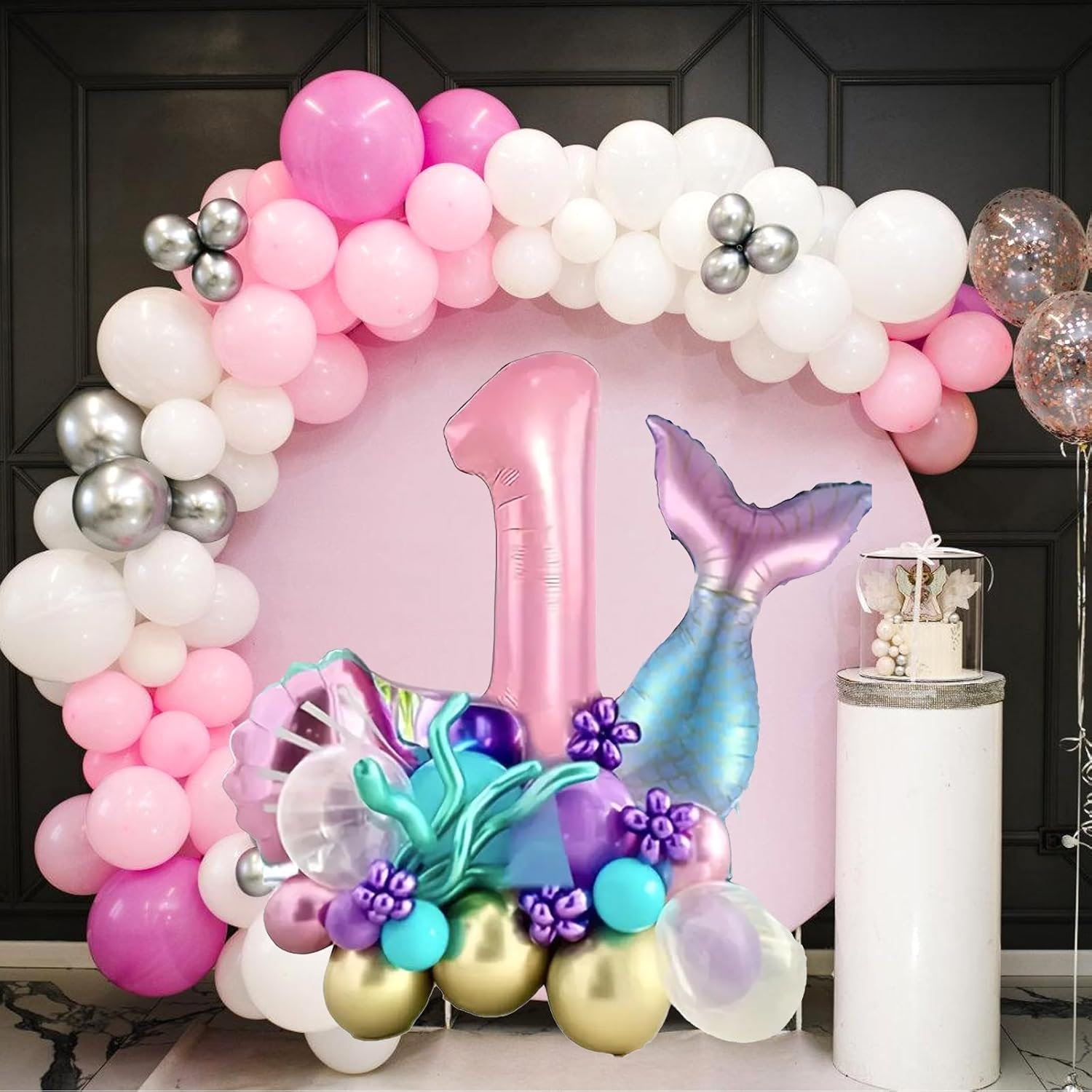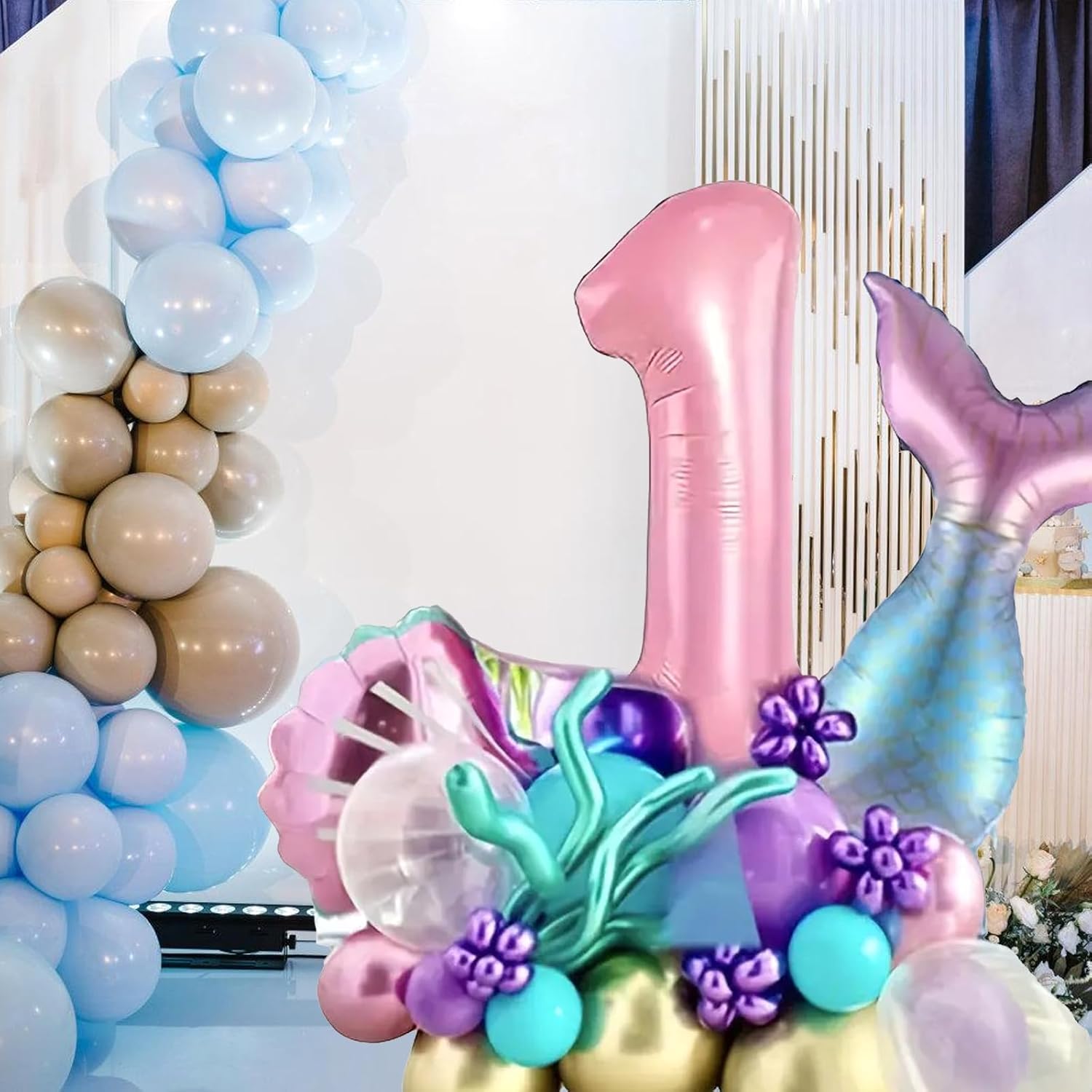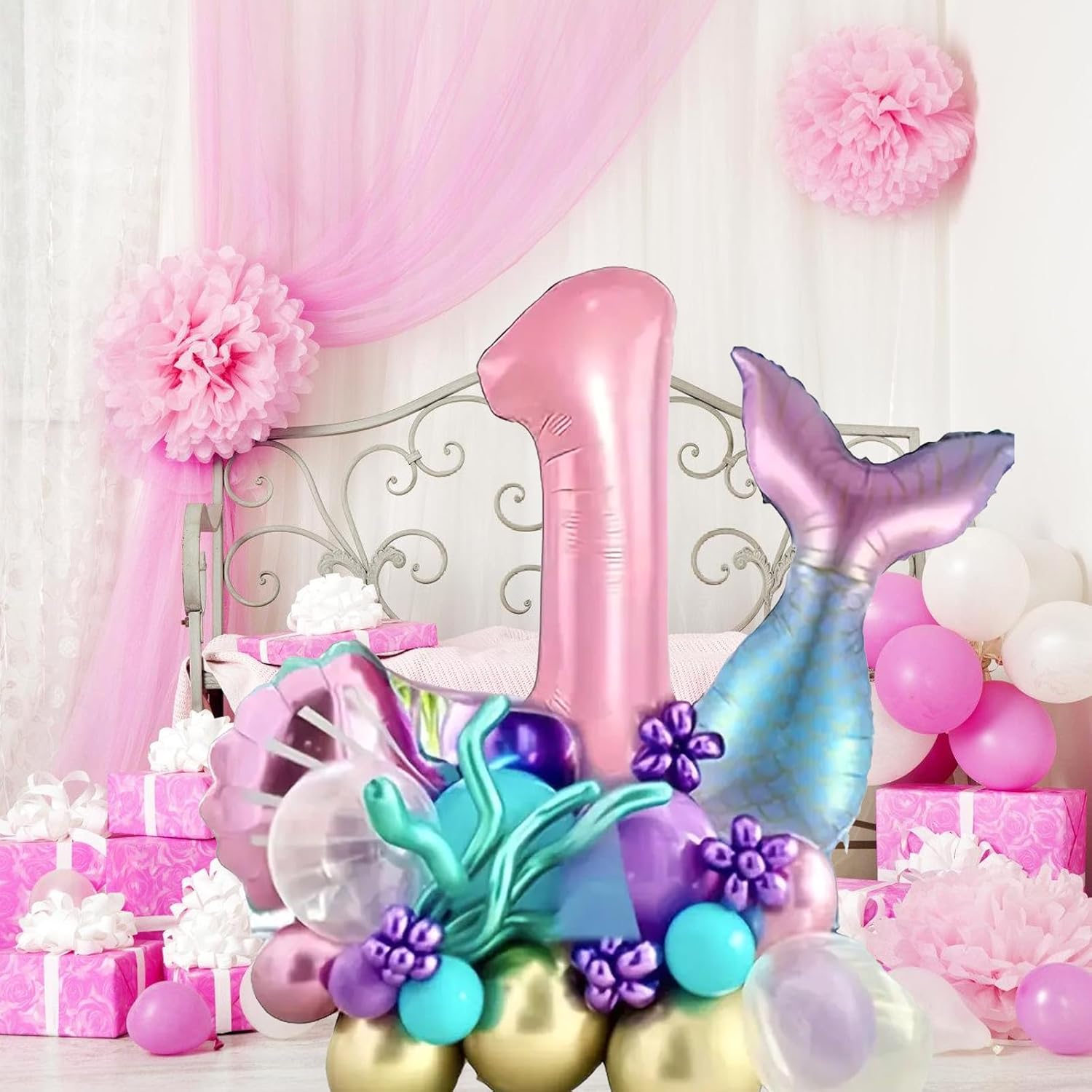 Kit completo di decorazioni per sirene (24 pezzi): il nostro kit contiene un bellissimo mix di palloncini con sirene marine, palloncini in foil, palloncini con conchiglie, palloncini in lattice ed elementi decorativi lucidi. Perfetto come decorazione di compleanno a forma di sirena per le piccole principesse che festeggiano il loro primo compleanno. Con questa decorazione di compleanno a forma di sirena marina trasformerai ogni stanza in un magico mondo sottomarino che farà brillare gli occhi dei bambini e garantirà momenti indimenticabili. Magico mondo sottomarino per il 1° compleanno: questi palloncini a forma di sirena combinano colori pastello colorati, glitter e graziosi disegni a sirena, perfetti come decorazione di compleanno per una bambina di 1 anno. Il grande palloncino di 1 anno in combinazione con conchiglie, fiori ed elementi marini attira davvero l'attenzione. La combinazione di palloncini a forma di sirena rende ogni decorazione di compleanno di Arielle particolarmente festosa e crea una magica atmosfera di compleanno. Materiali di alta qualità - durevoli e sicuri: il mix di robusti palloncini in lattice e palloncini in pellicola lucida rende questo set particolarmente stabile e versatile. Il palloncino compleanno grande (palloncino foil 1) è facile da gonfiare, resistente e non passerà inosservato. Tutti i palloncini di compleanno sono realizzati con materiali di alta qualità per garantire che la decorazione della tua sirena sia bella e sicura per i bambini. Sfondo fotografico perfetto e decorazione da tavolo: con il palloncino grande 1, le conchiglie e il palloncino con la sirena del mare, questo set è ideale come decorazione per le foto, la barretta di cioccolato o il tavolo del compleanno. Che si tratti di un palloncino per il 1° compleanno o di una decorazione di compleanno a forma di sirena, questa decorazione renderà la vostra festa indimenticabile. Anche come sorpresa per i piccoli fan di Ariel, questo set è una scelta meravigliosa per una decorazione di compleanno di 1 anno. Utilizzo versatile e facile da combinare: questo set da 24 pezzi non è solo una decorazione a forma di sirena, ma anche un'ottima base per altre idee per le feste. Il grande palloncino a forma di sirena in foil si adatta perfettamente a qualsiasi decorazione di compleanno di Arielle. Che si tratti del compleanno di un bambino, di una festa per ragazze o di un tema del mondo sottomarino, con questo set di 1 palloncini creerete un'esperienza di festa unica che sarà ricordata a lungo.