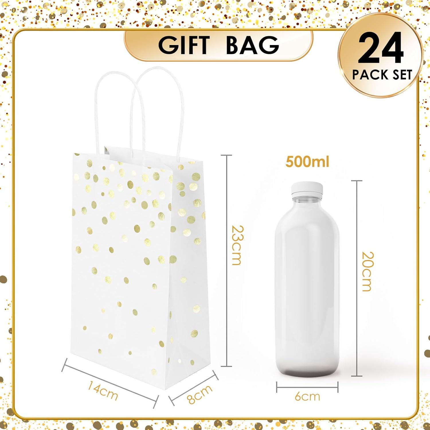 ✅️ 24 sacs en papiers de bonne qualité ✅️ Ils ont de bonnes finitions ✅️ Les imprimés ronds dorés n'ont pas de défaut ✅️ Parfait pour faire de petits cadeaux tout au long de l'année ✅️ 16.99€ est le prix affiché au 01/02/2024, ce qui revient à 70 centimes le sac. C'est un bon rapport qualité-prix ????????