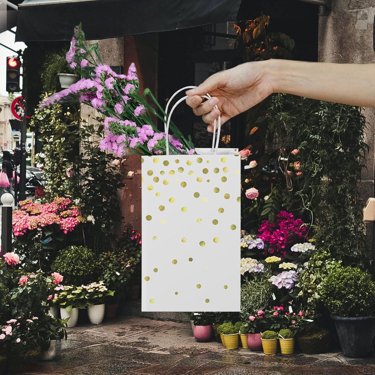 Set di 24 sacchetti di carta con pois in lamina d'oro - larghezza: 14 cm, soffietto: 8 cm, altezza: 23 cm